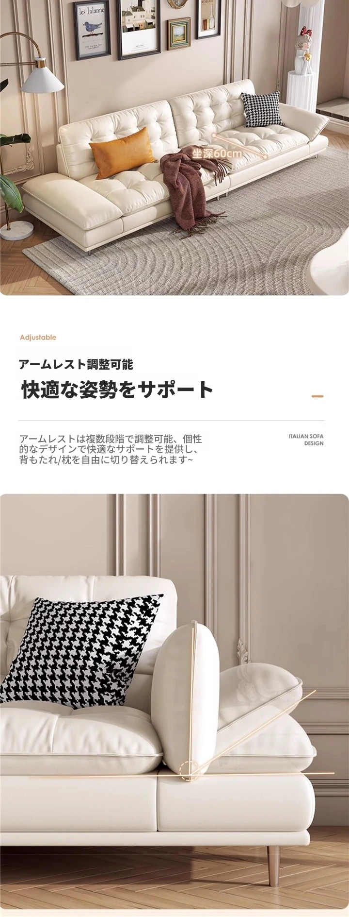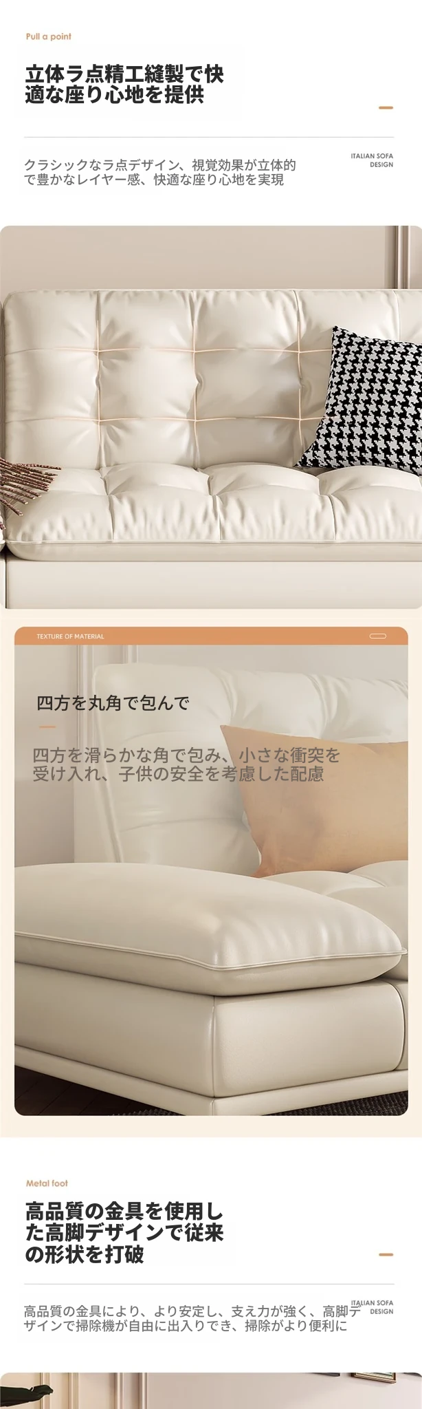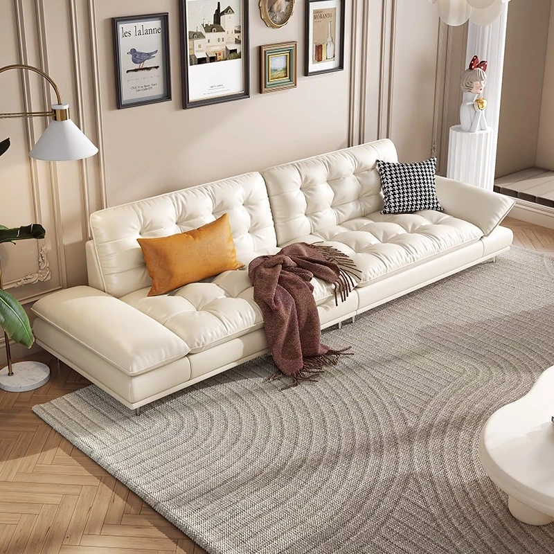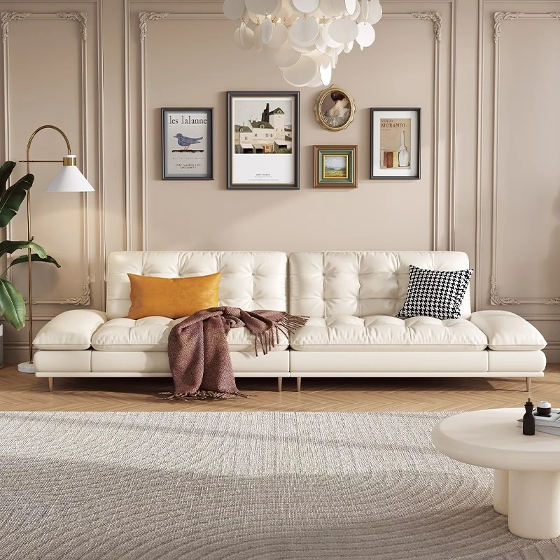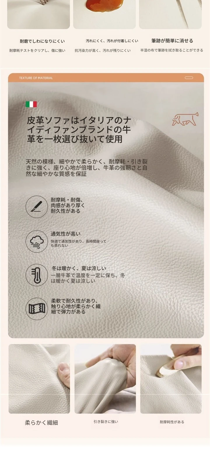 極簡デザインの高級本革クラウドソファ|イタリアンスタイルの小型リビングに最適!3人掛けのモダンでシンプルな本革ソファで、心地よいひとときを提供します。おしゃれな空間を演出し、あなたの生活を豊かにします!