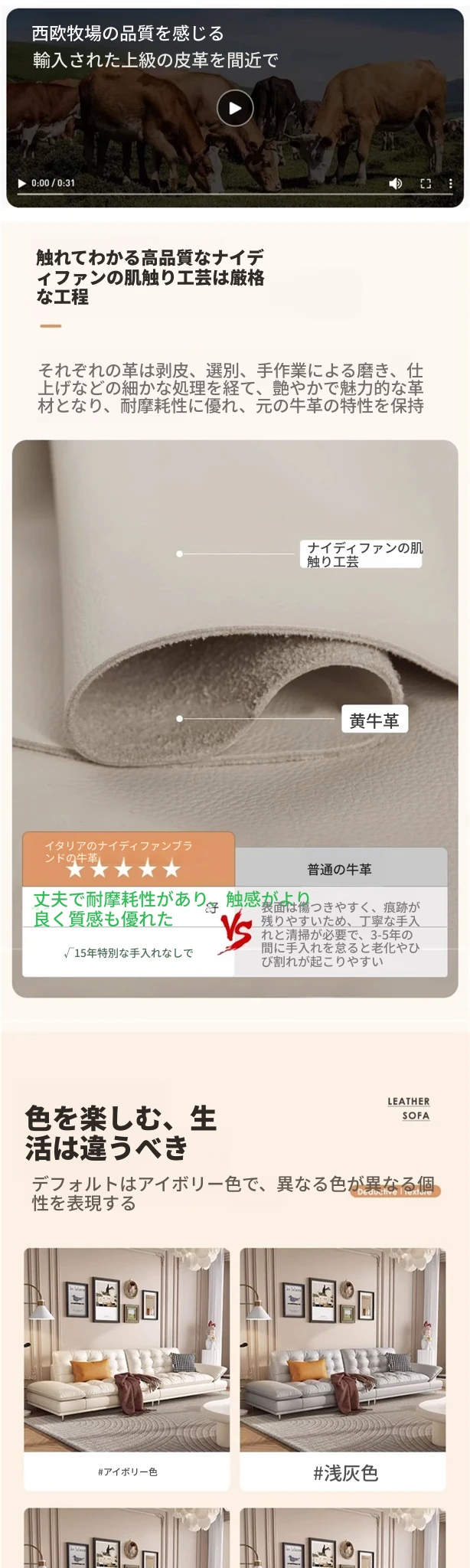 【イタリアナディファン一層牛革+ダウン】3.1メートル多人用.
