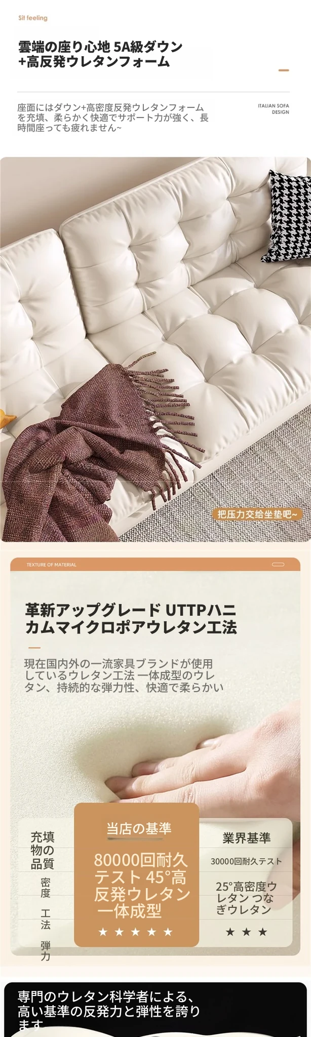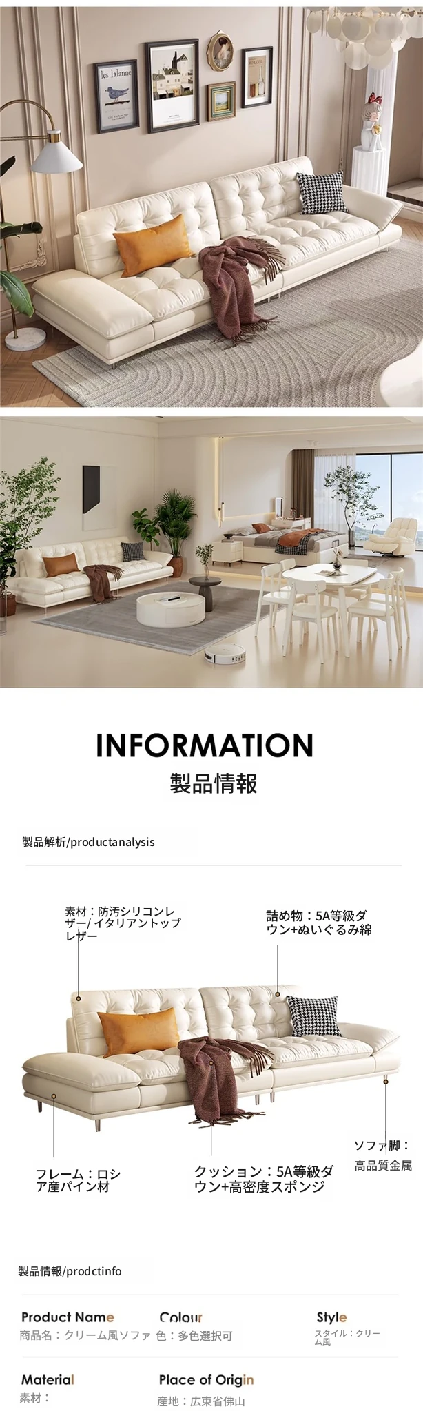 【イタリアナディファン一層牛革+ダウン】3.4メートル多人用.