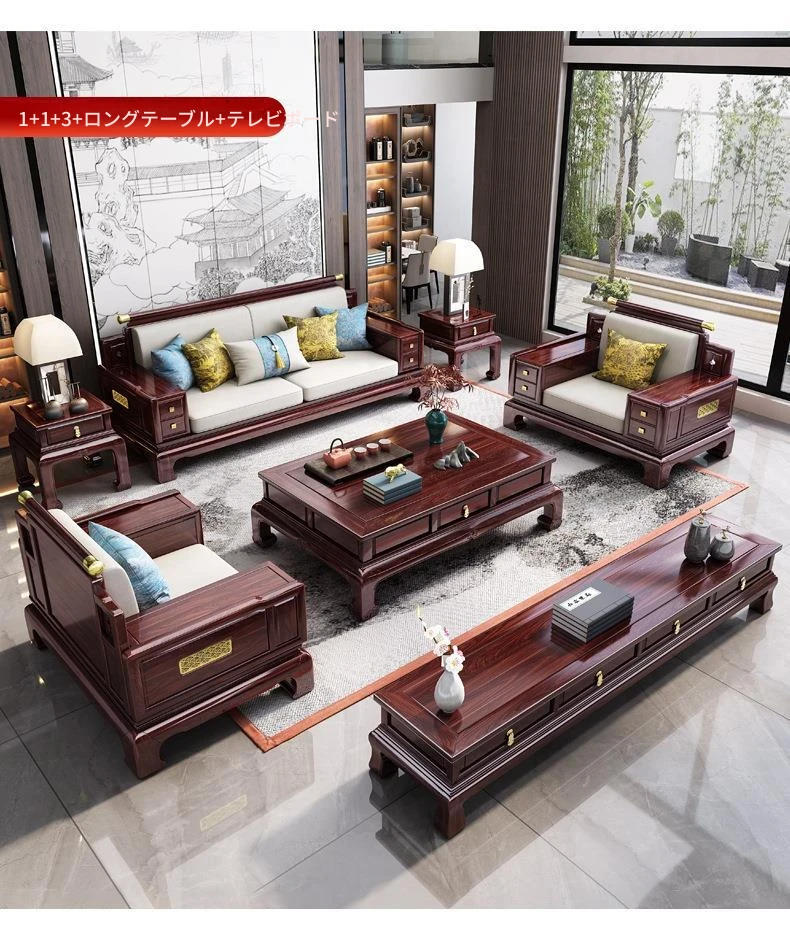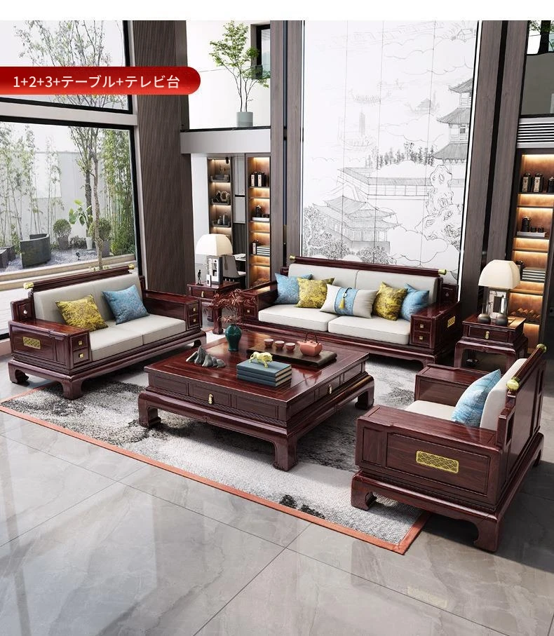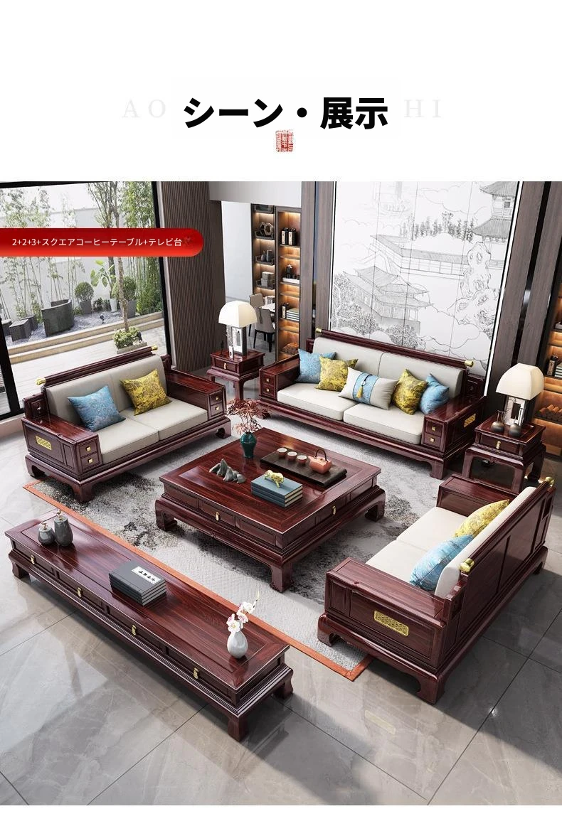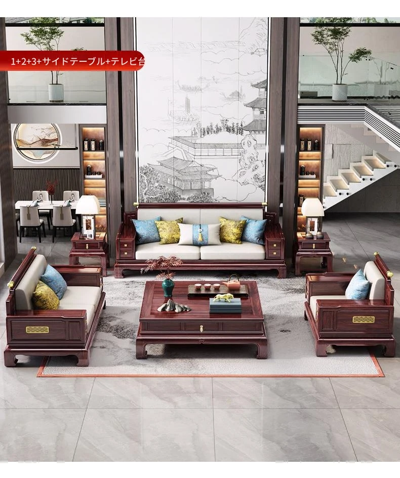 現代的中式金木沙発見!新古典スタイルの015#別荘向け大容量リビングに最適。冬夏両用の高品質無垢材使用で、快適な空間を提供します。おしゃれで機能的なデザインで、あなたの家にぴったり!
