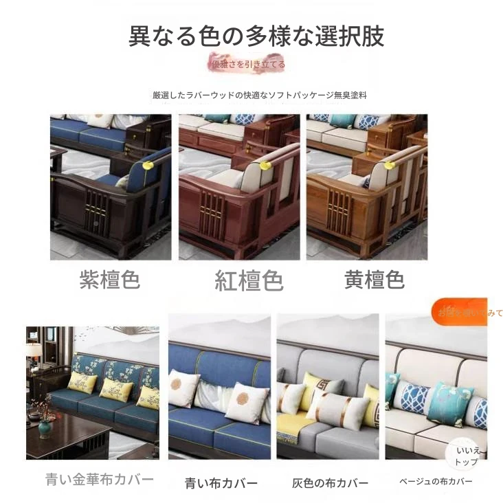 中式軽奢全木ソファ新組合!現代的なおしゃれリビングにぴったりな木製&布製9906ソファセット。快適な座り心地で、あなたのリビングを特別な空間に変えます!