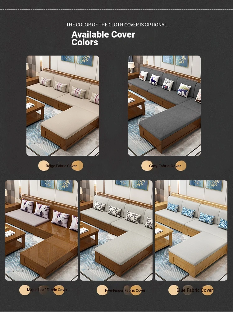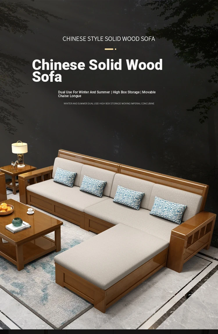 Modern Chinese Solid Wood Sofa Set for Small and Large Spaces - Versatile Upholstered Furniture for All Seasons - Stylish and Minimalist Design for Your Living Room