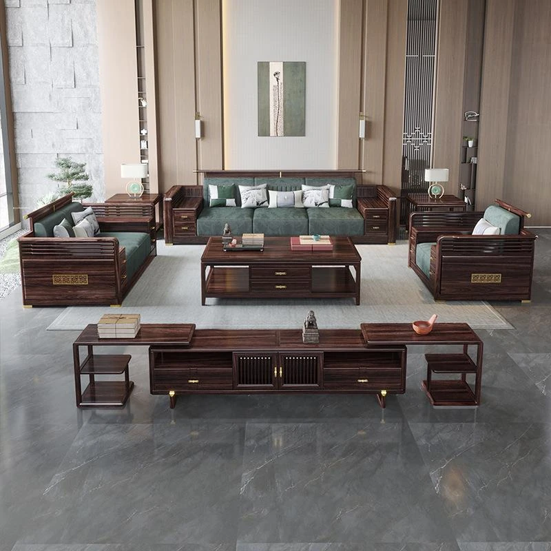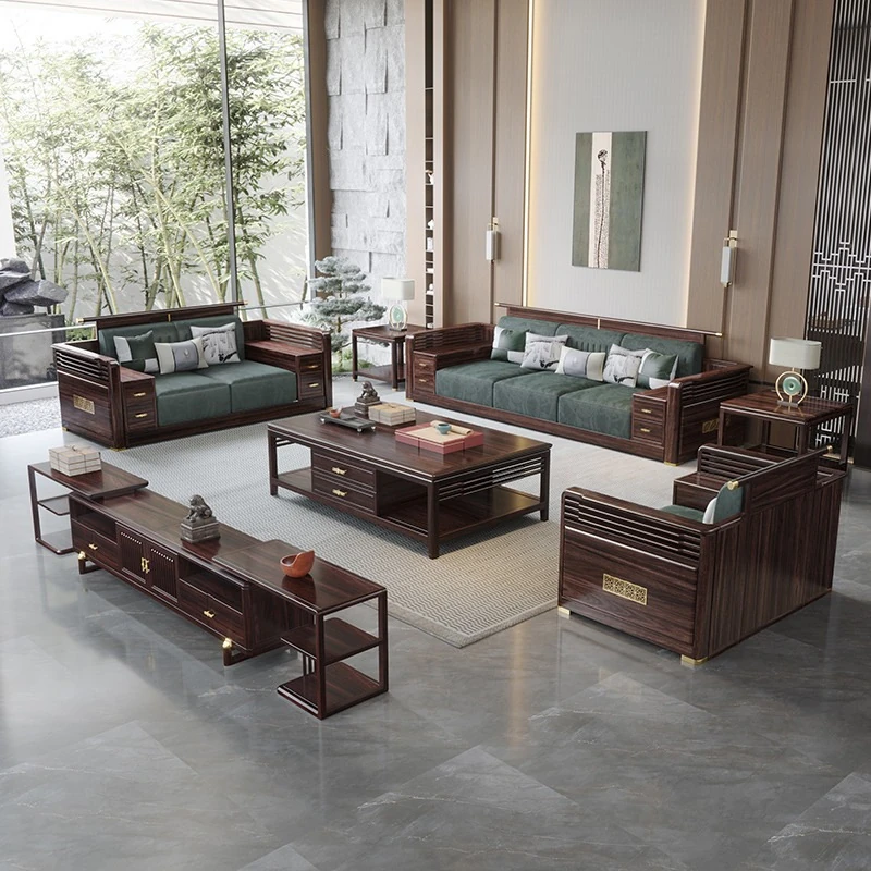 新中式ウッドウッド家具 H8803 - ヴィラや広々としたリビングに最適な全実木製ソファ。高級感溢れるデザインで、快適な座り心地を提供します。上品なインテリアを演出し、あなたの空間を格上げします!