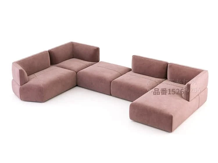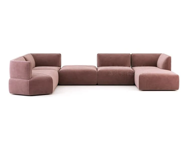 イタリアンラグジュアリー現代別荘リビングU字型コンビネーションピンクテクスチャー布ソファ ホテルラウンジ用ユニークシェイプカウンター席で、洗練された空間を演出しませんか?