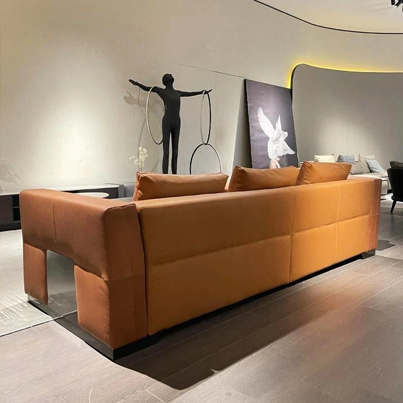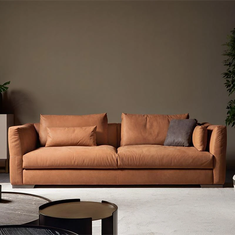 Modern Italian Minimalist Leather Sofa for Small Living Rooms - High-End Three-Seat Design, Perfect for Home Use