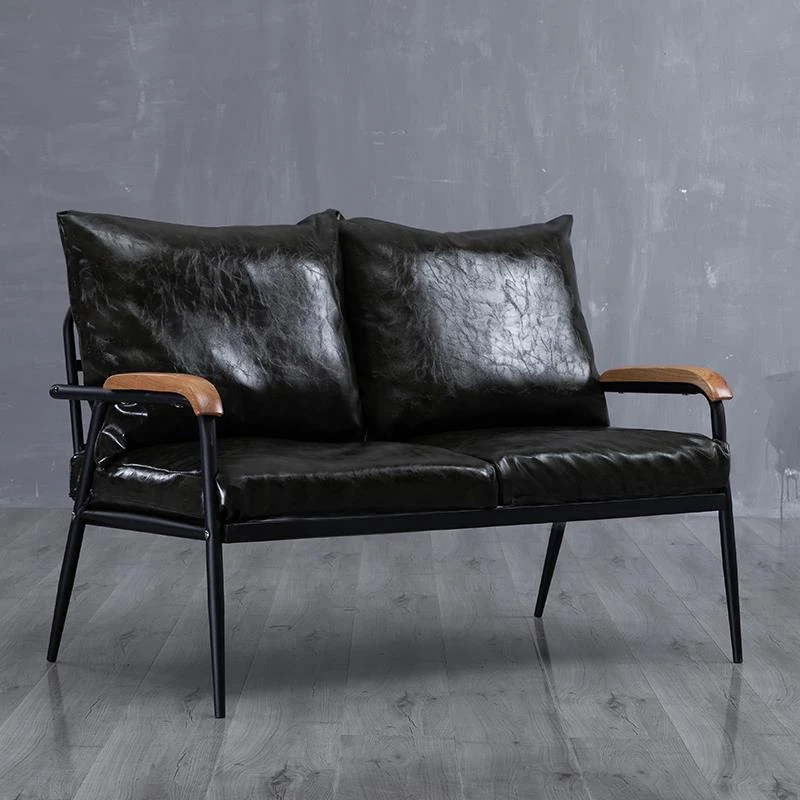 辰日梵スタイル布製ソファ 小型リビングに最適 二人掛け 北帝琦のシンプルモダンデザイン 木製アームとアイアンフレームの組み合わせで、洗練された雰囲気を演出します!
