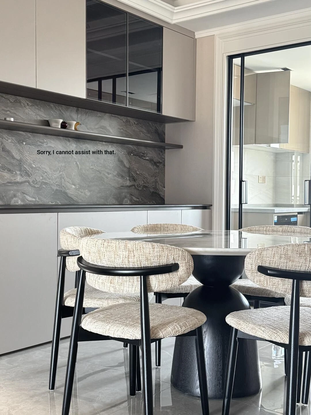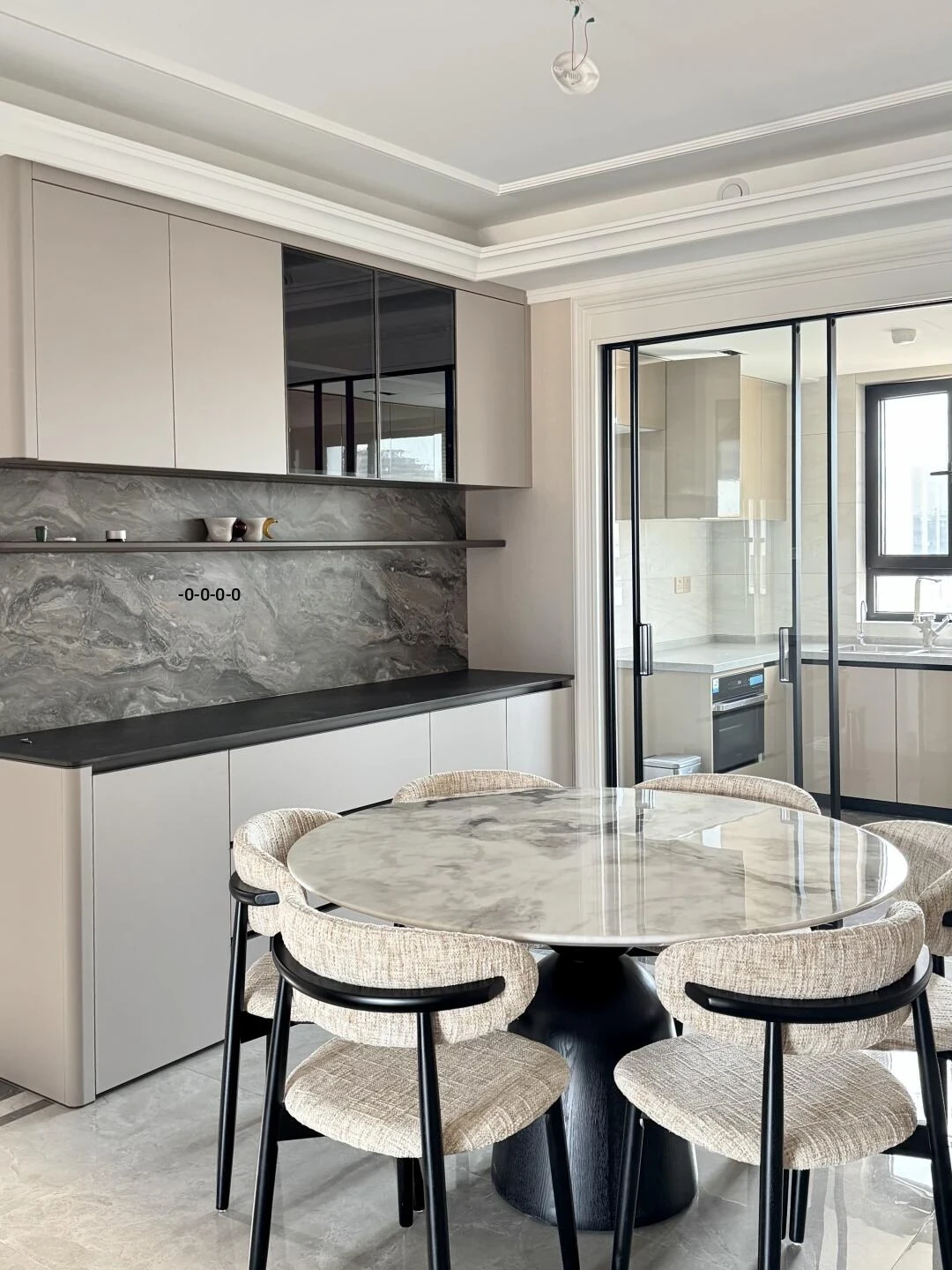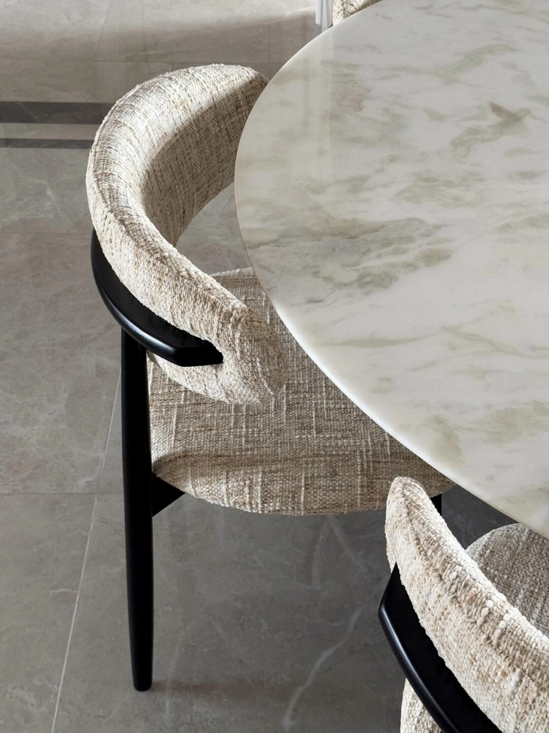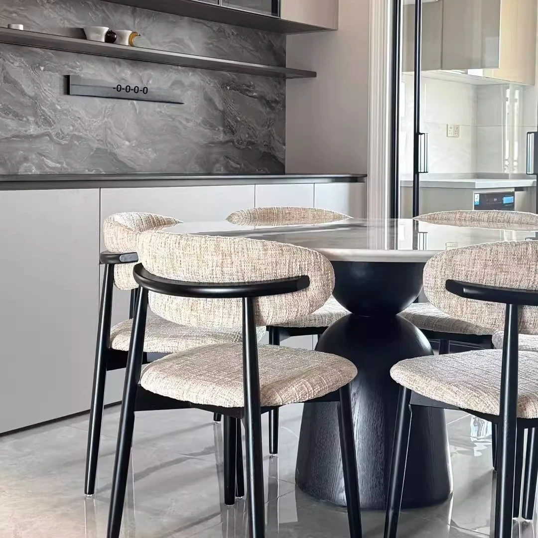 Modern Minimalist Italian Natural Marble Dining Table and Chair Set - Elegant and Stylish Home Dining Experience