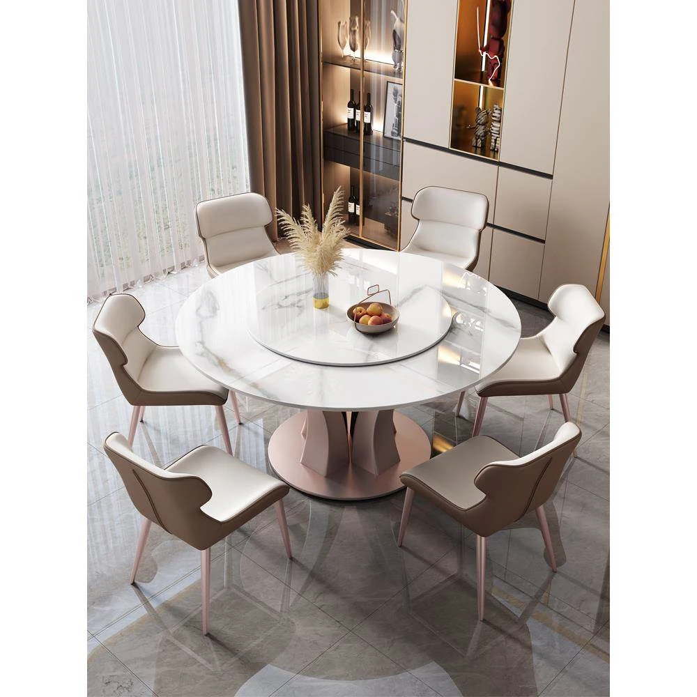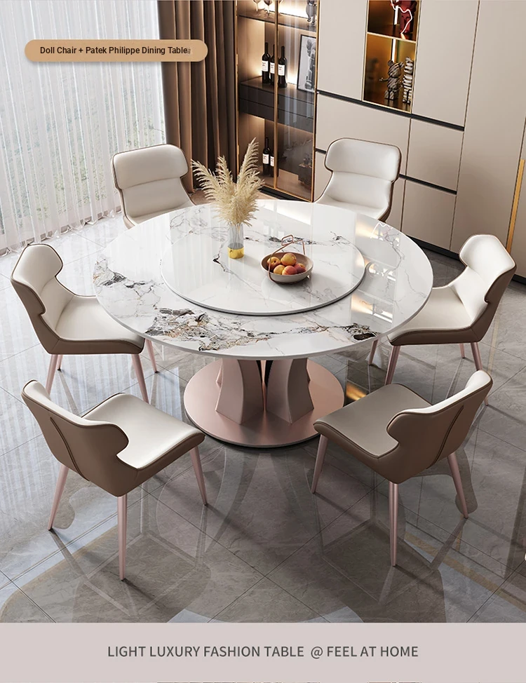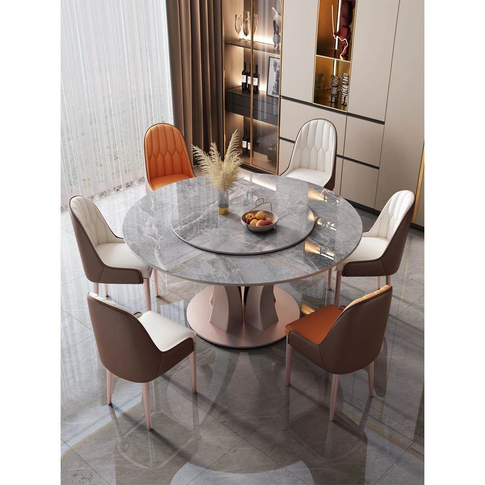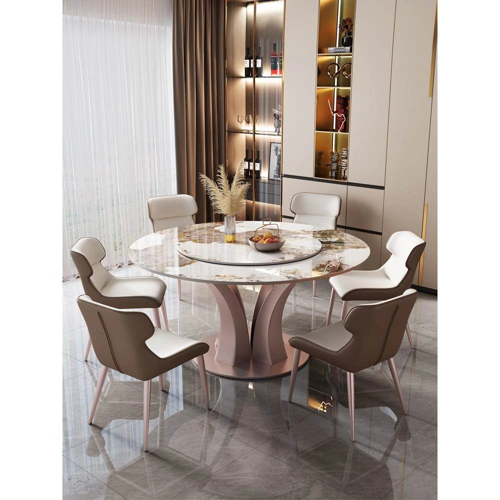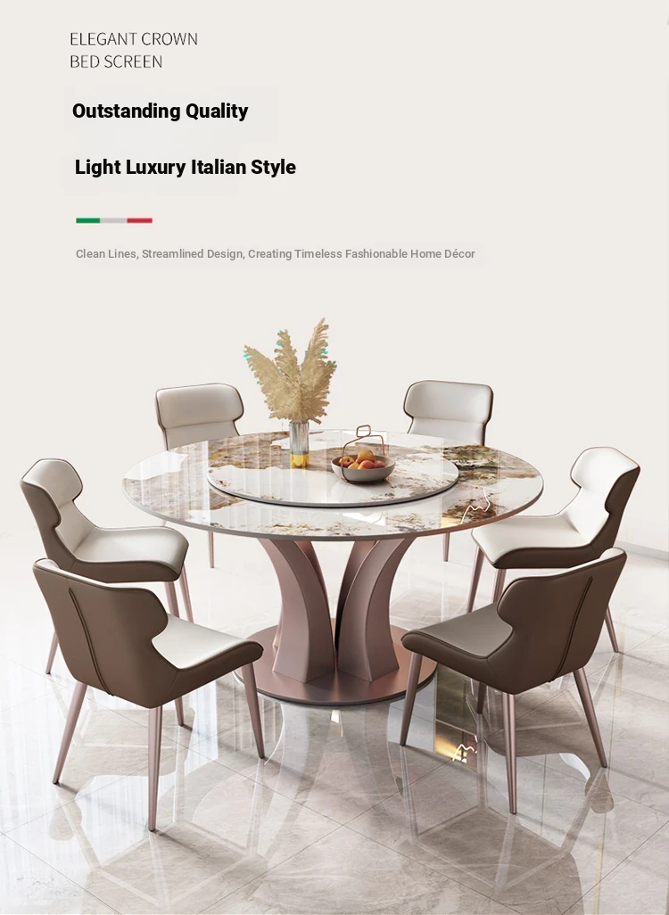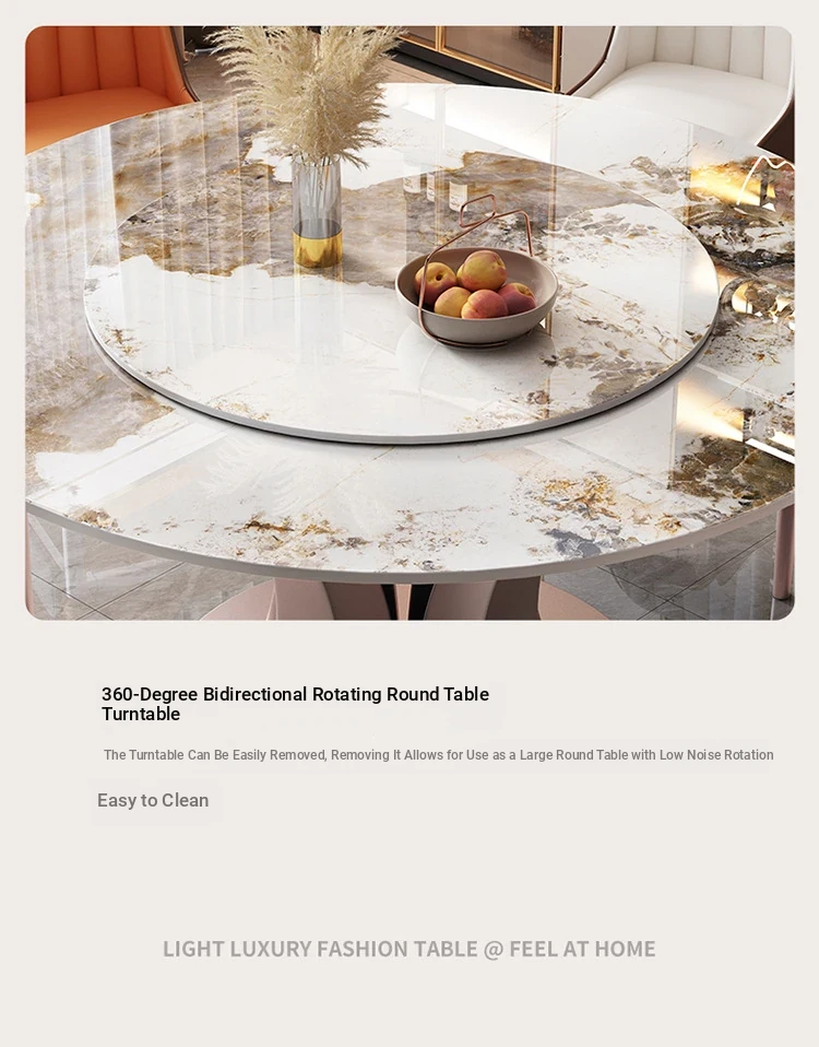 Modern Minimalist Italian Style Round Dining Table and Chair Set with Rotating Tray - Luxurious Glossy Stone Design for Small Spaces, Perfect for Home Dining