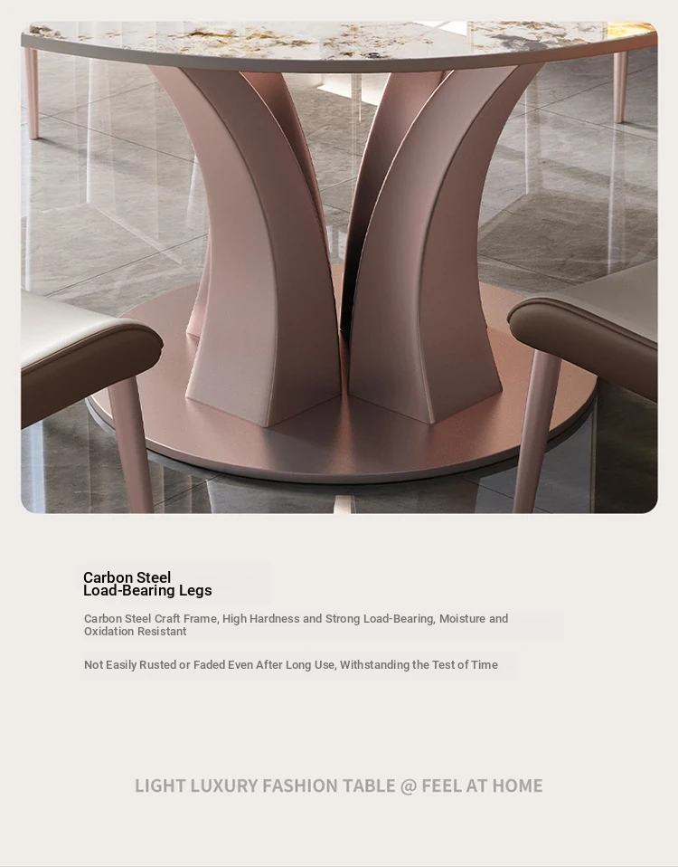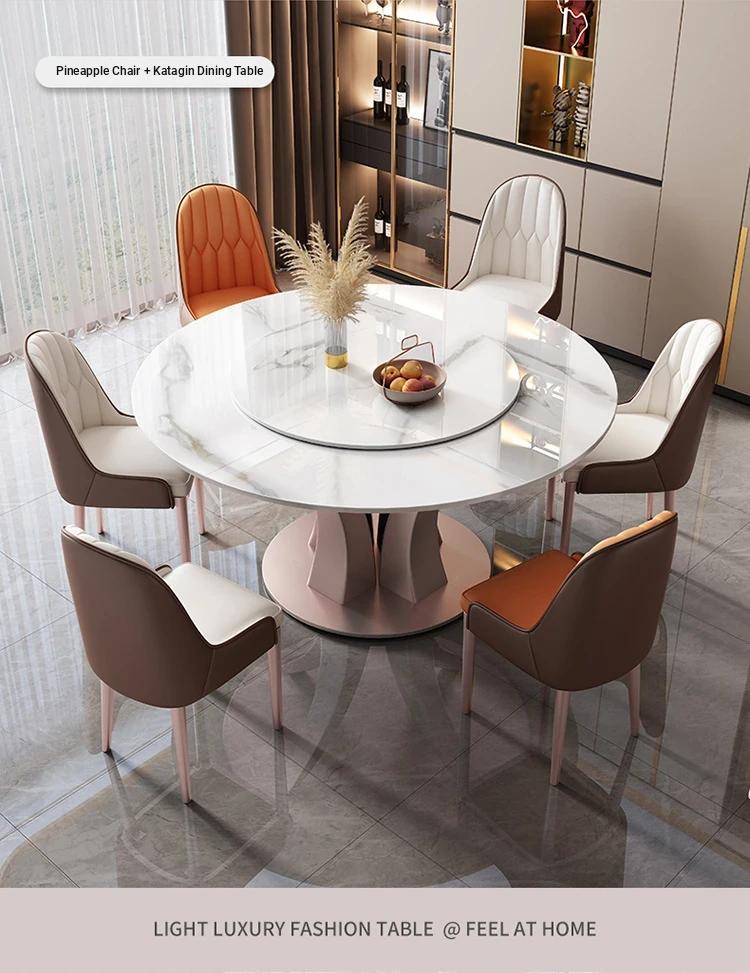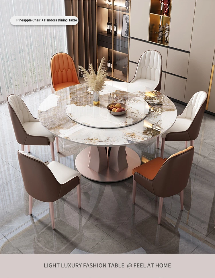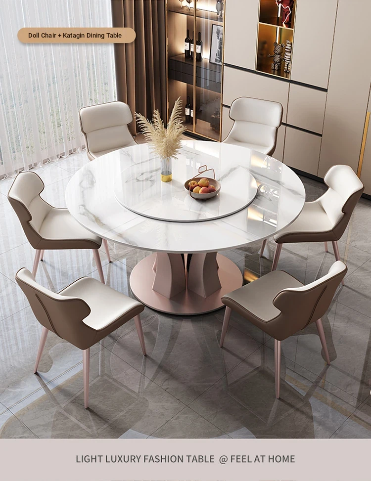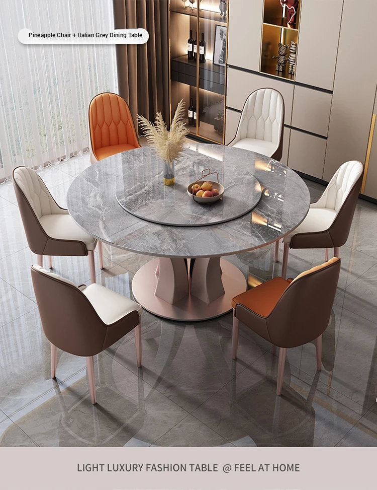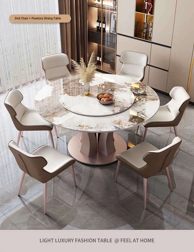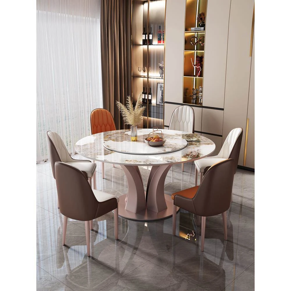 Modern Minimalist Italian Style Round Dining Table and Chair Set with Rotating Tray - Luxurious Glossy Stone Design for Small Spaces, Perfect for Home Dining