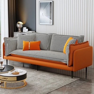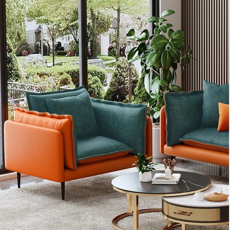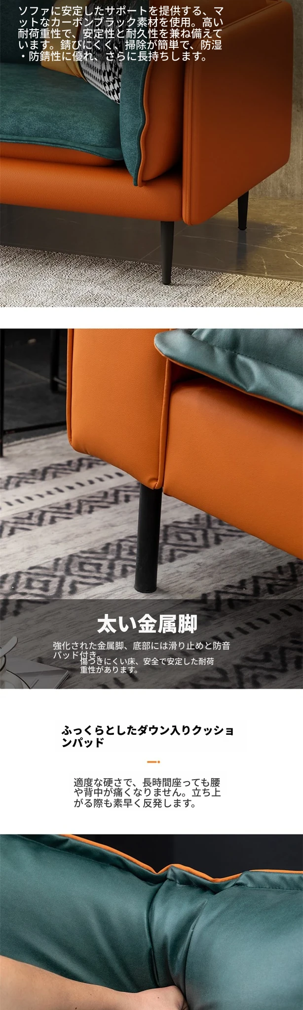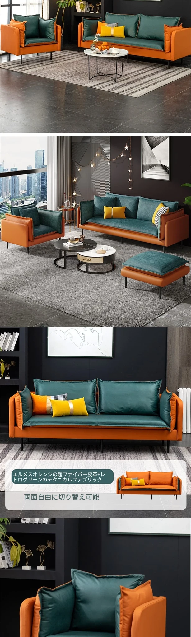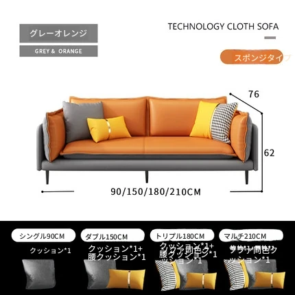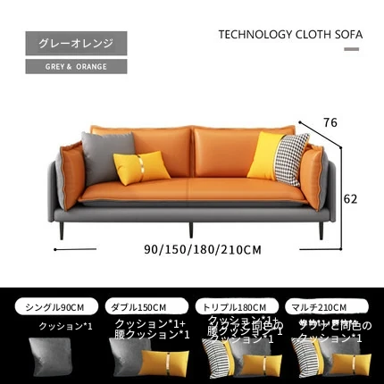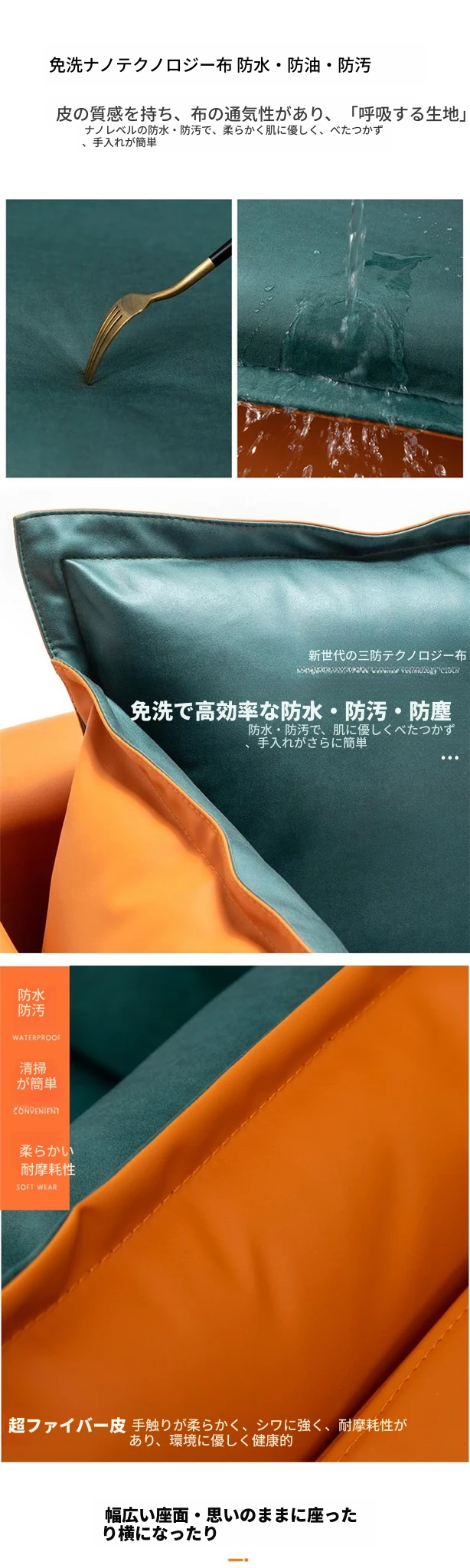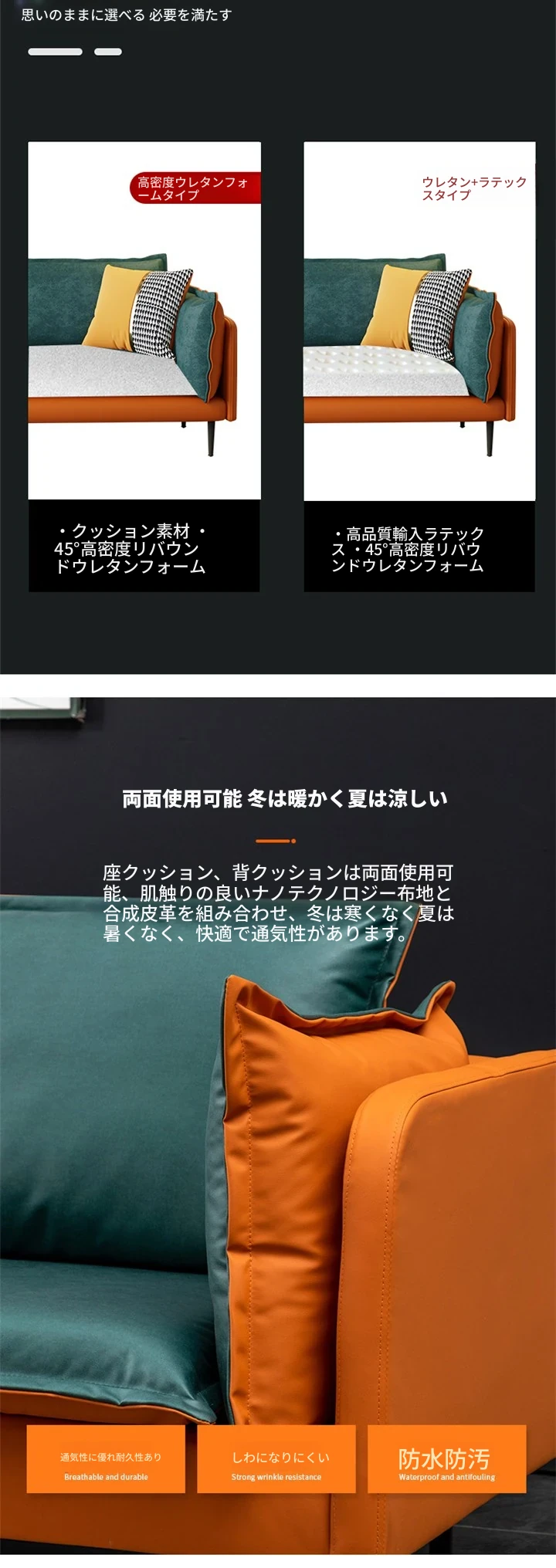 オレンジの超ファイバー皮+グレーのテクノロジー布 ラテックスモデル 座り心地は柔らかめ