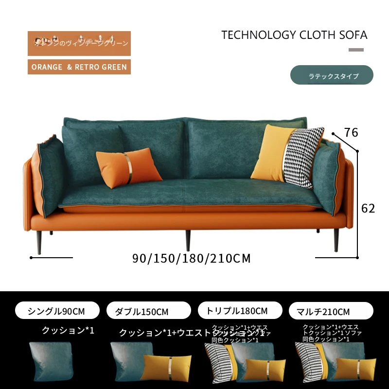 暖かいオレンジとレトログリーン(ラテックスモデル) 座り心地は柔らかめ