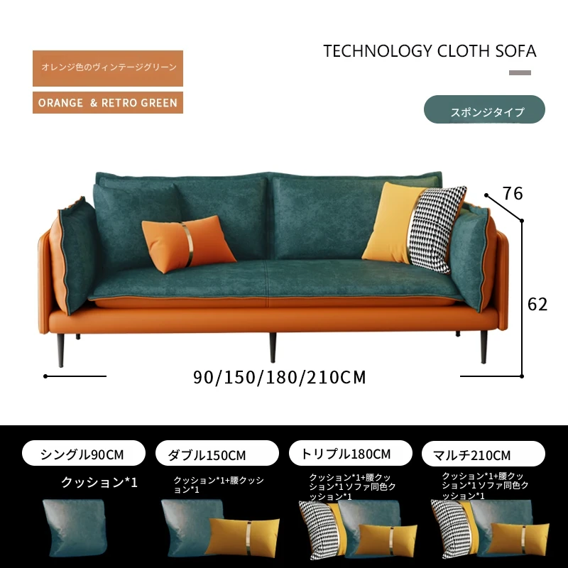 レトログリーンと暖かいオレンジ スポンジモデル 柔らかさと硬さのバランスが良い