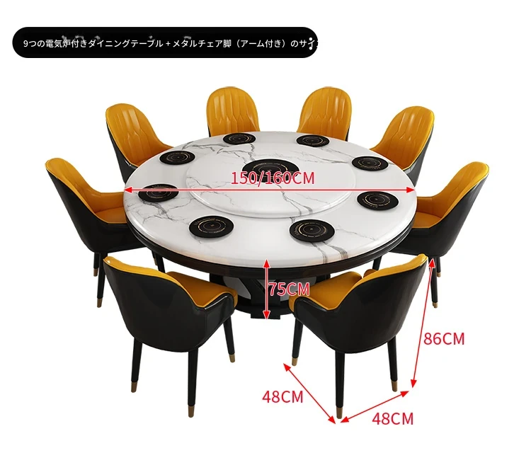 1.5メートル1卓10椅子中央に1つの電磁炉回転盤付き