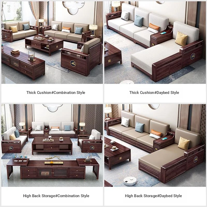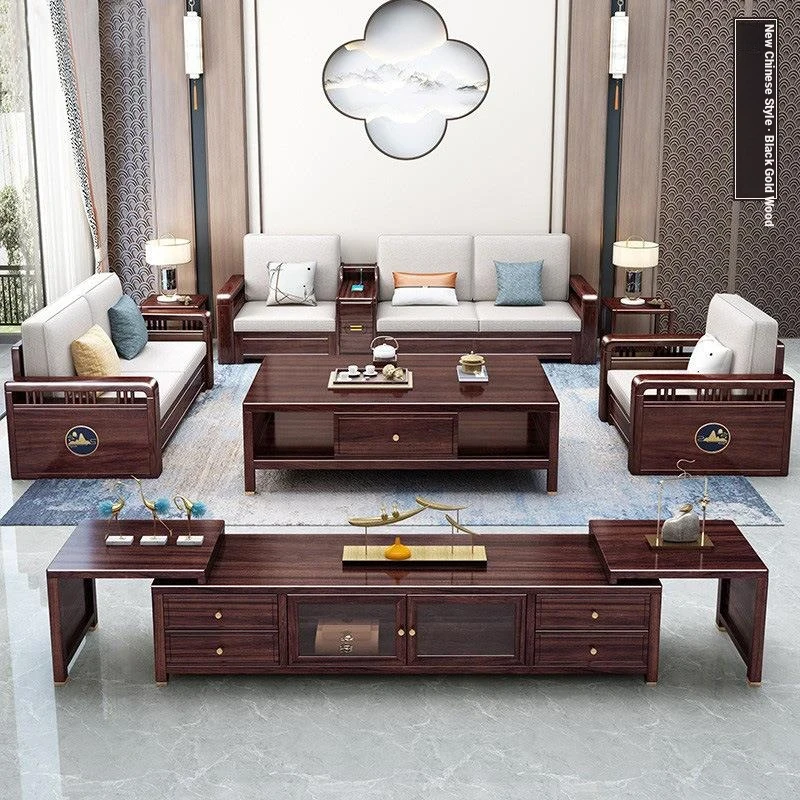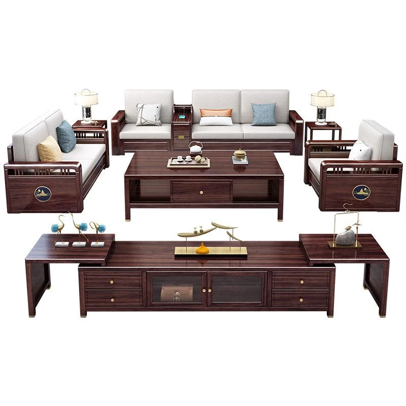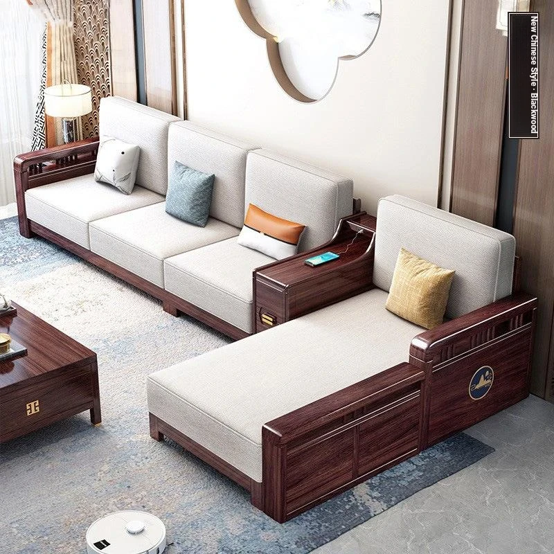Modern Minimalist New Chinese Style Blackwood Solid Wood Sofa Set - Versatile Corner Storage Furniture for Year-Round Comfort in Your Living Room