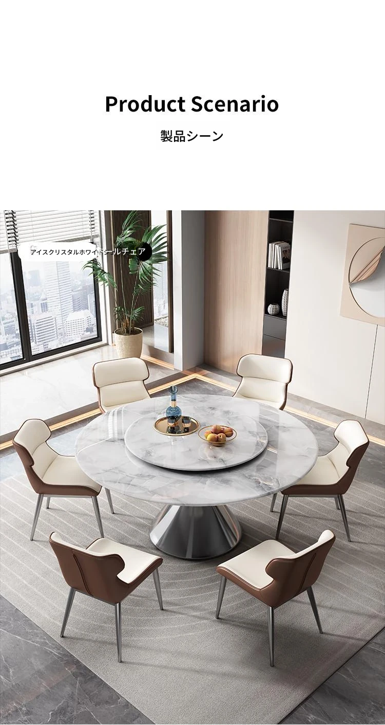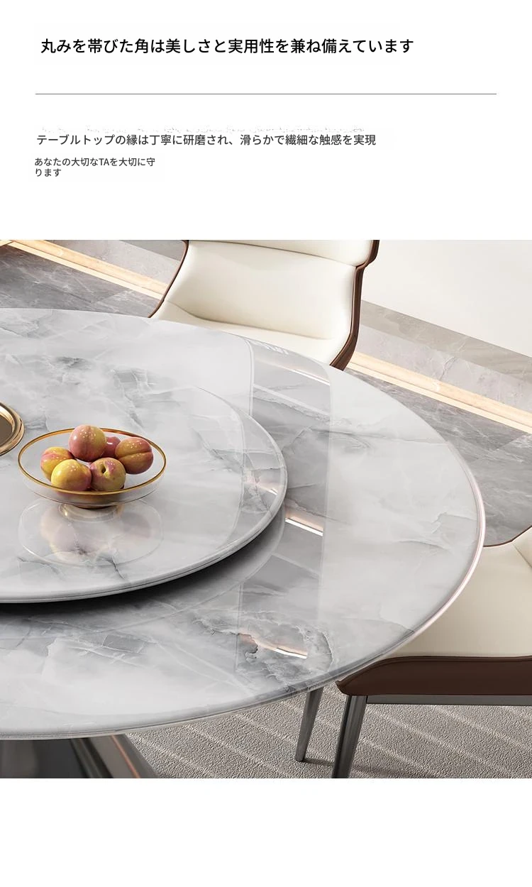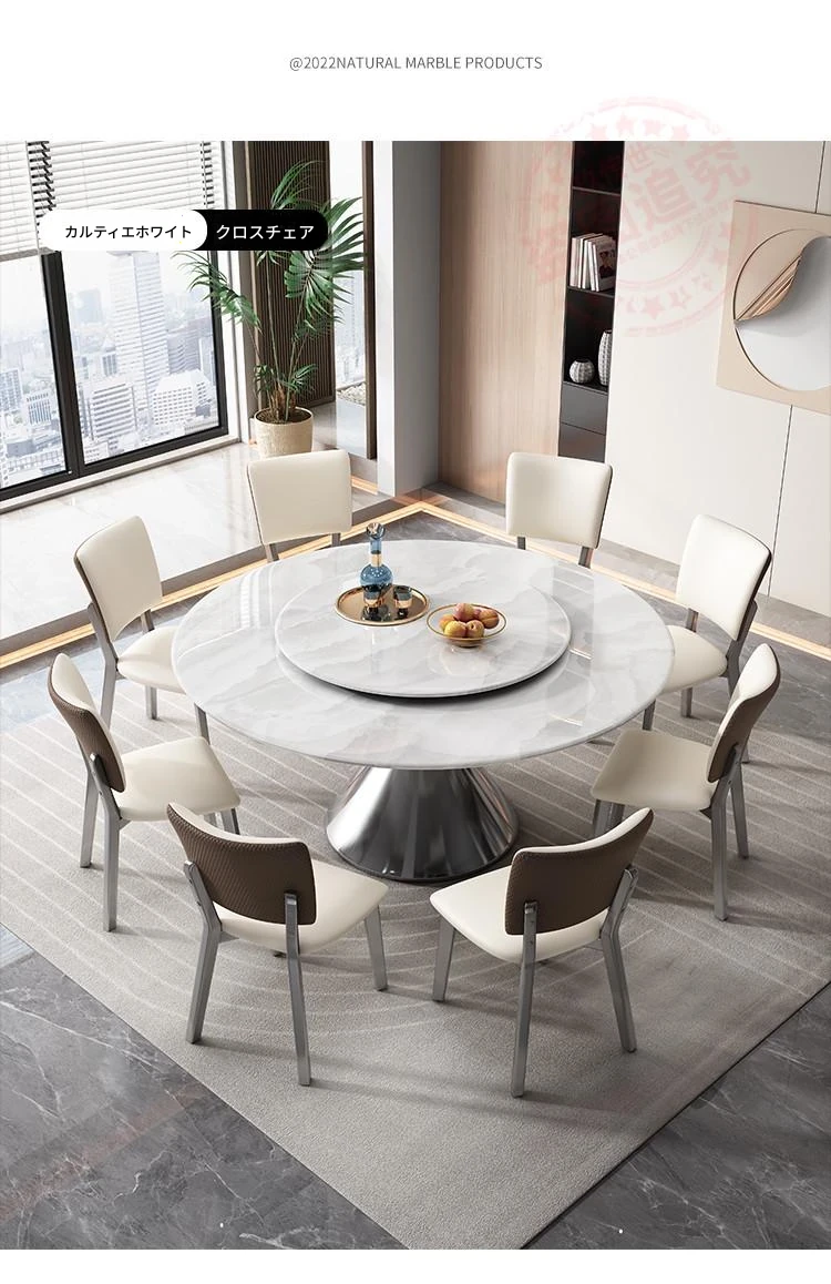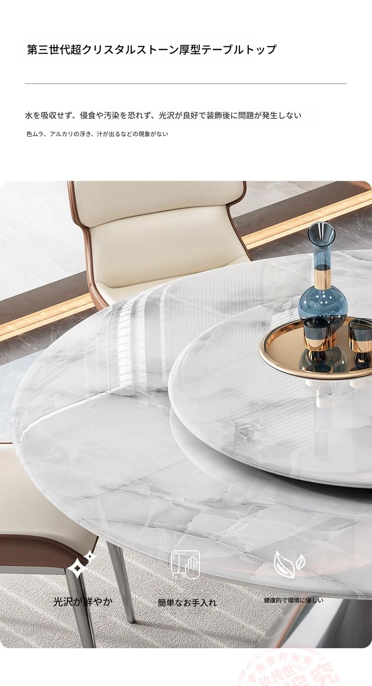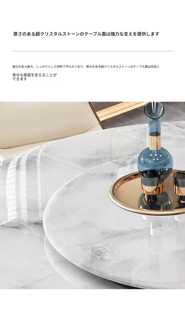 現代的ミニマルデザイン、微晶石製のラウンドダイニングテーブル。イタリアンマーブル風のスタイルは、小さなお部屋にもぴったり。超クリスタルストーンで作られた、この美しいテーブルで特別な食事のひとときをお楽しみください!
