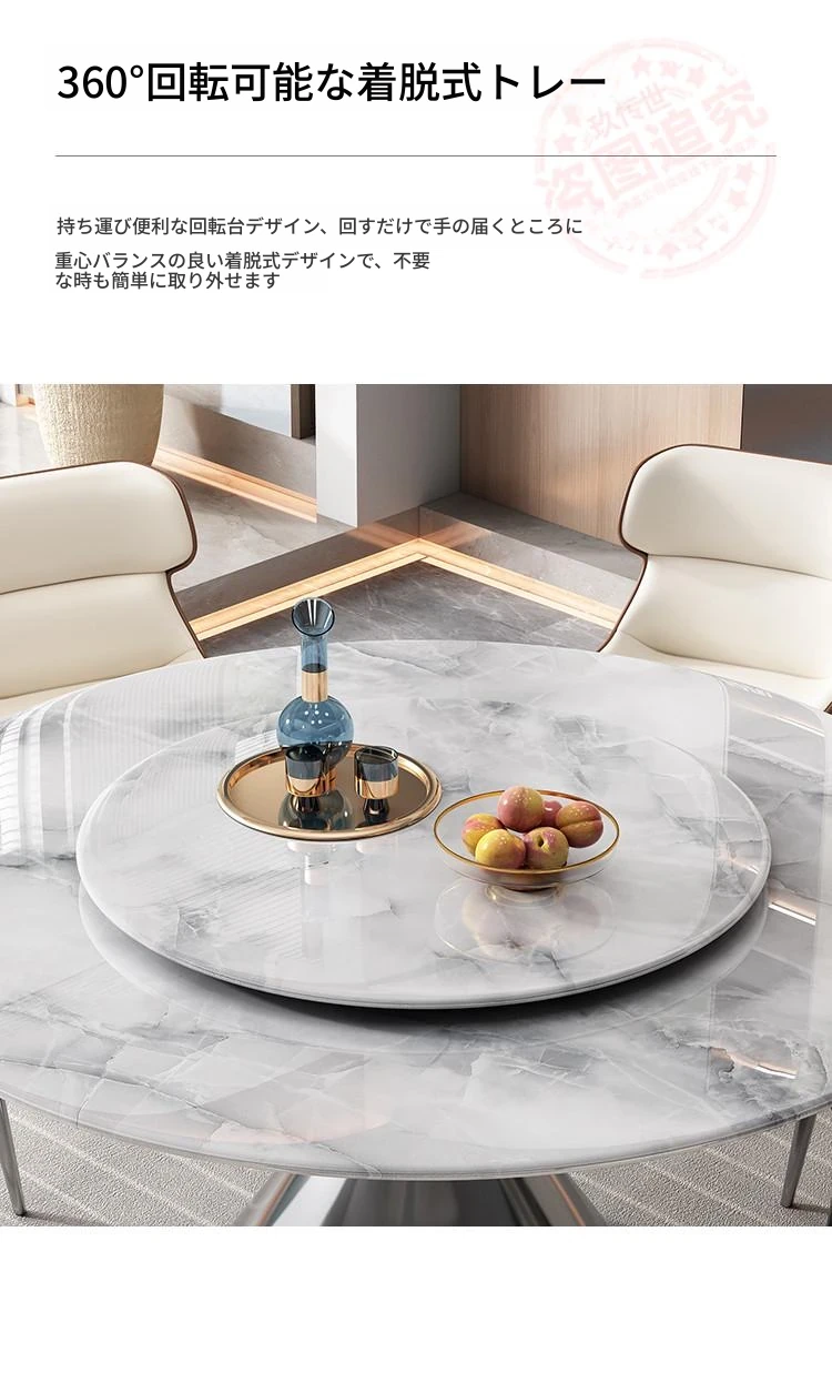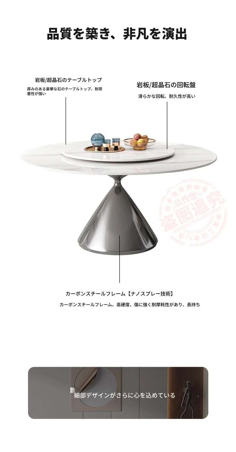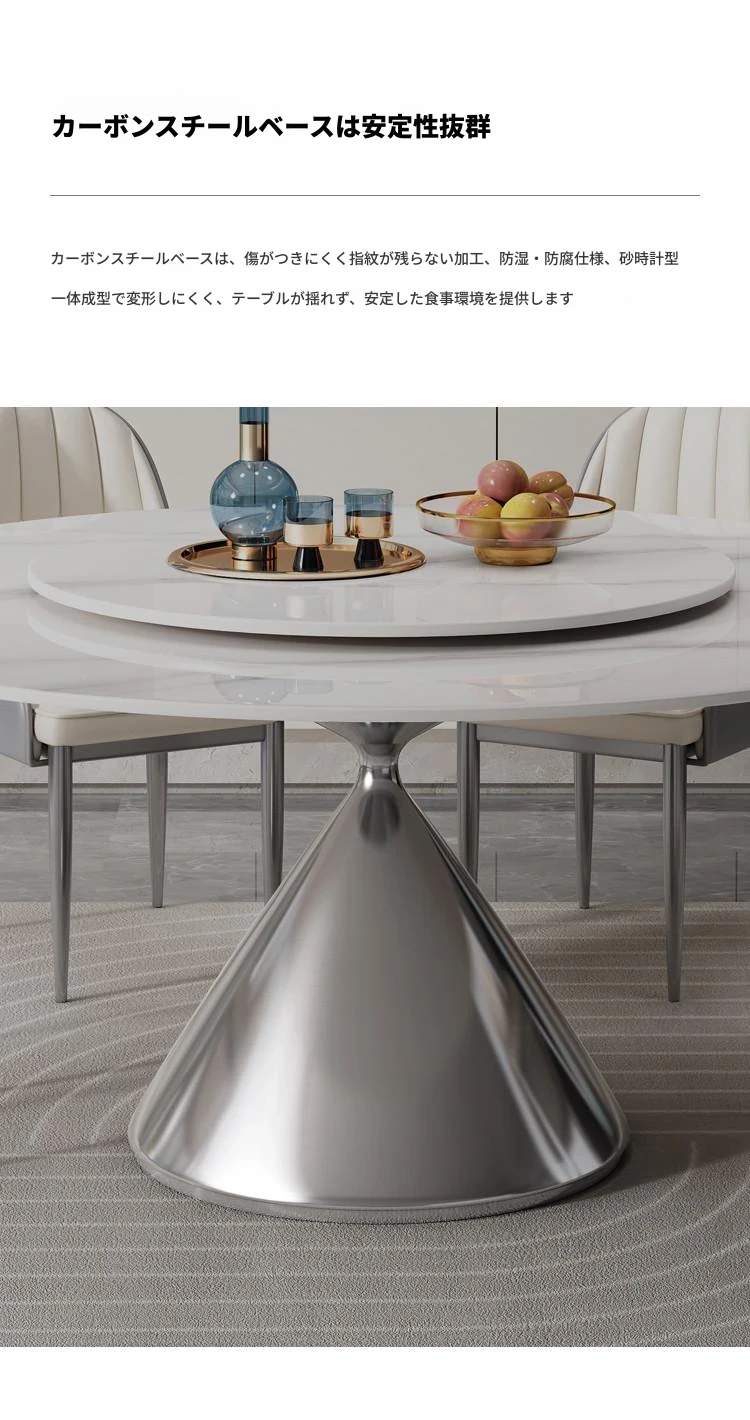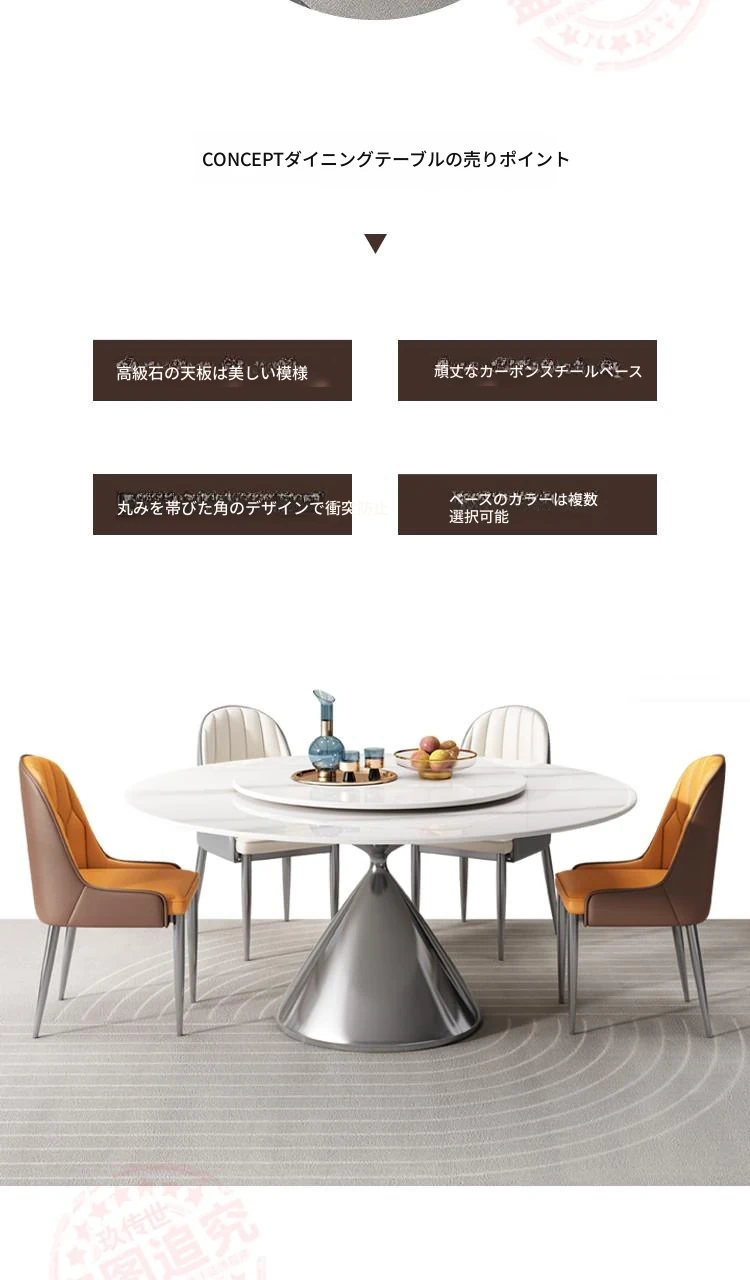 現代的ミニマルデザイン、微晶石製のラウンドダイニングテーブル。イタリアンマーブル風のスタイルは、小さなお部屋にもぴったり。超クリスタルストーンで作られた、この美しいテーブルで特別な食事のひとときをお楽しみください!