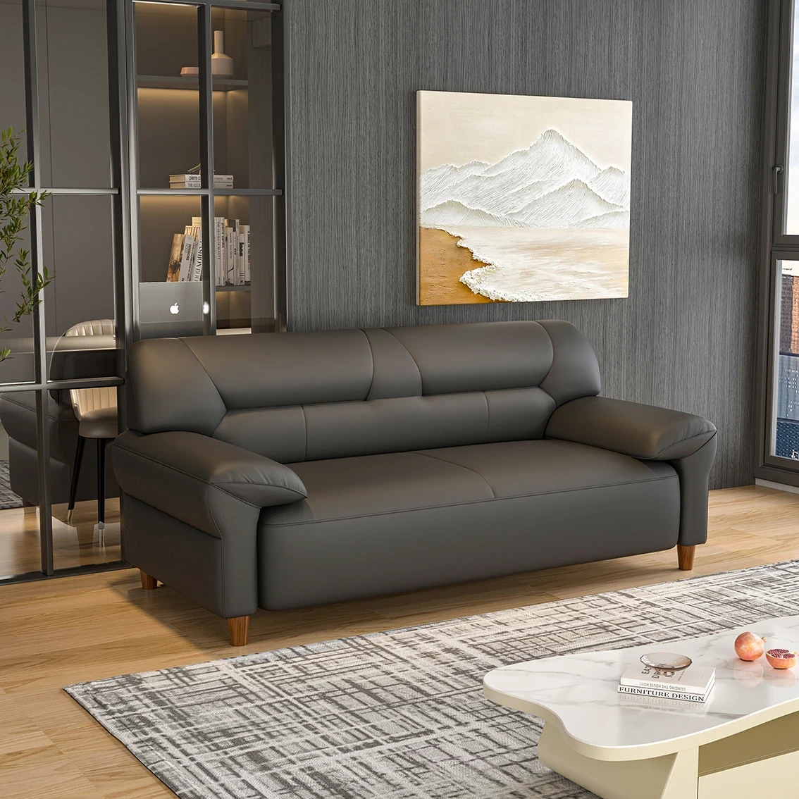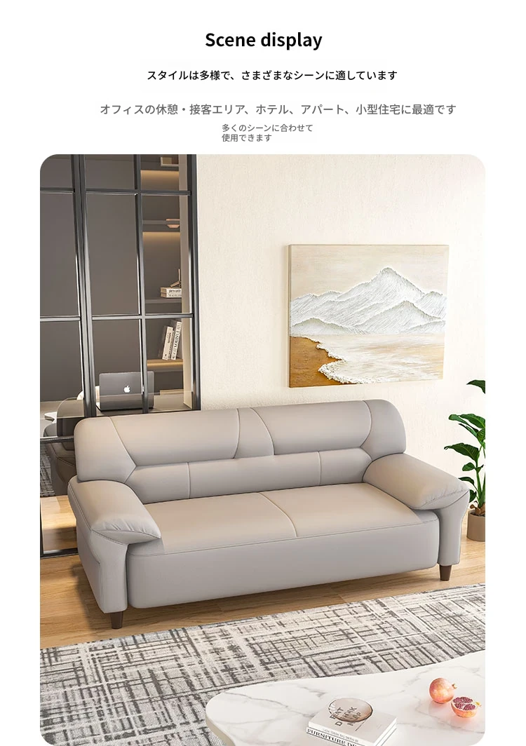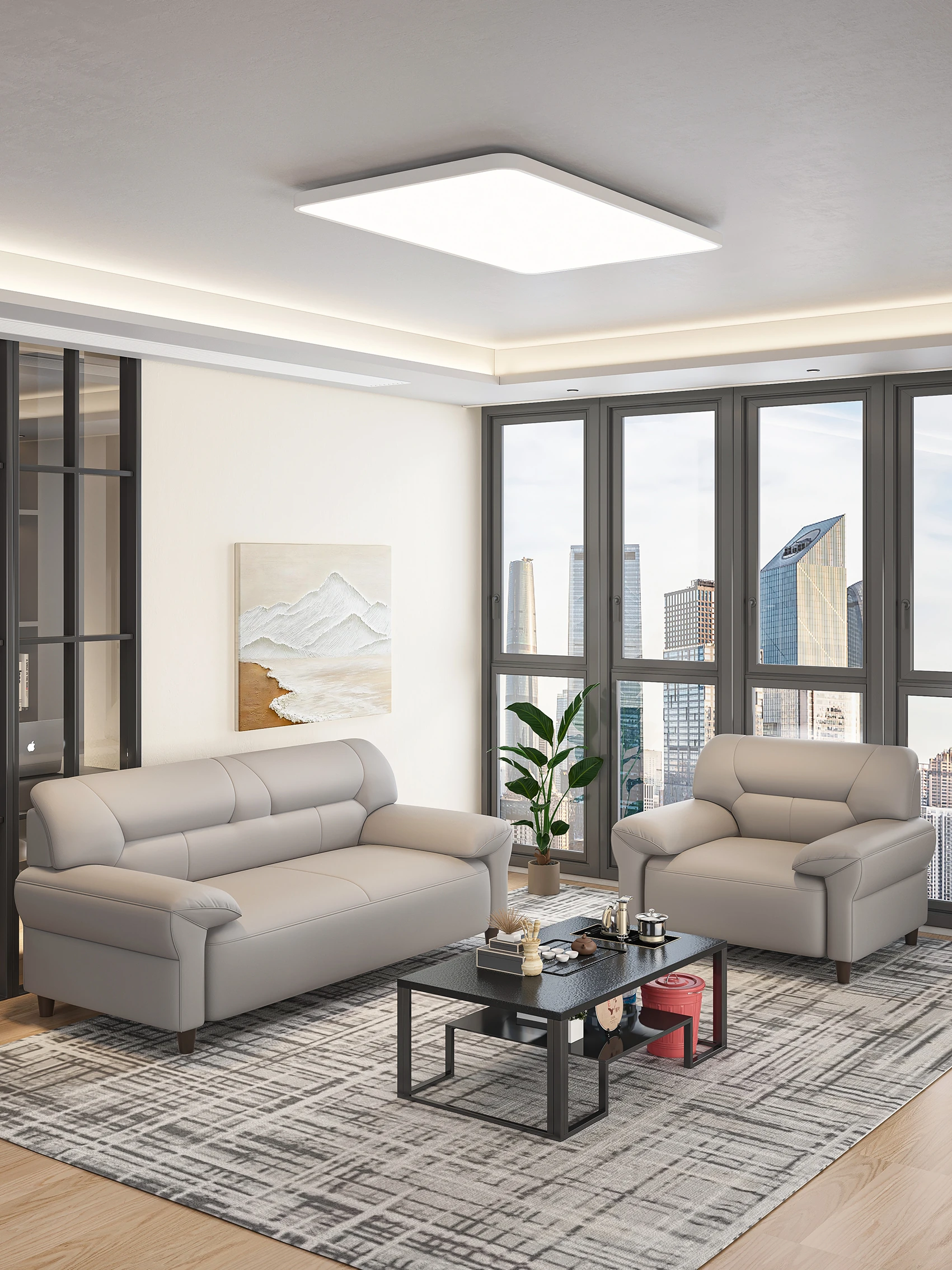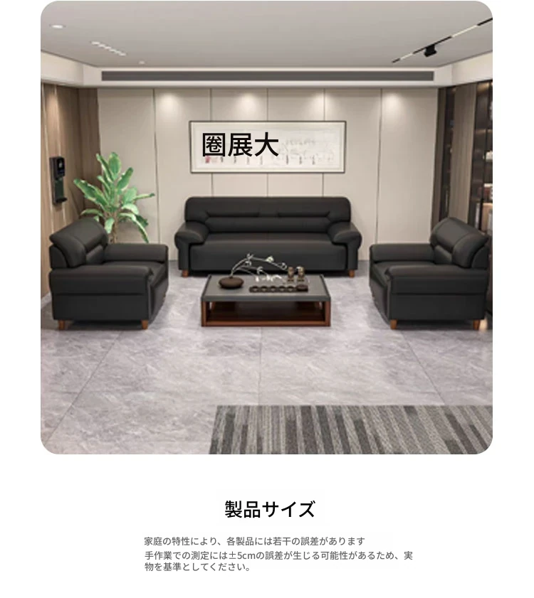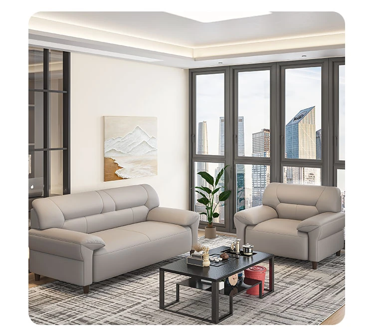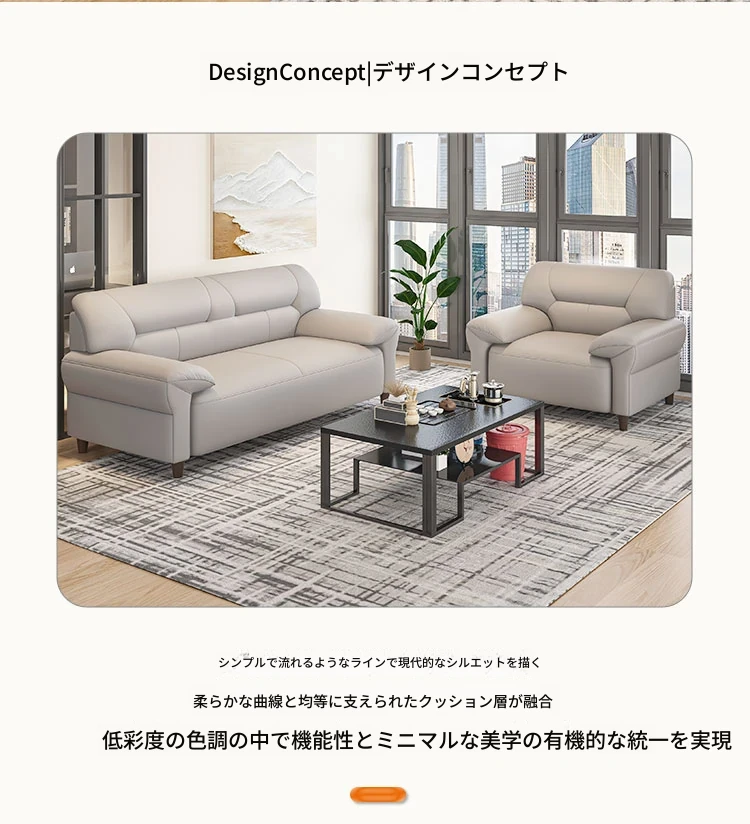 モダンオフィス用ソファ 小型住宅に最適なリビングルーム接待用・打ち合わせ用・休憩用 ダブル3人掛け直列コンビネーションレザーソファ