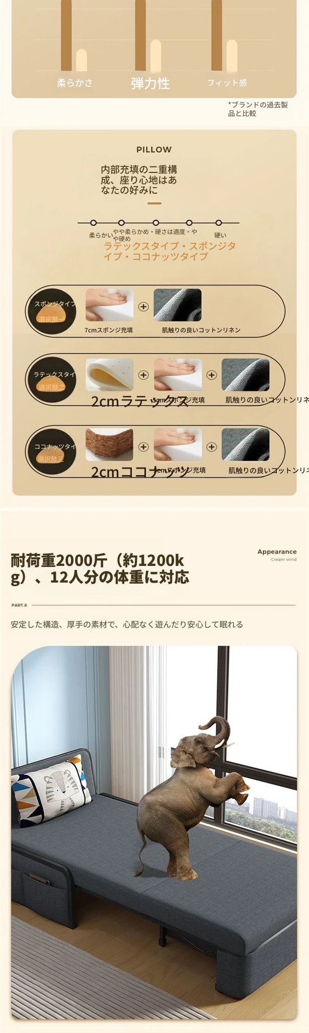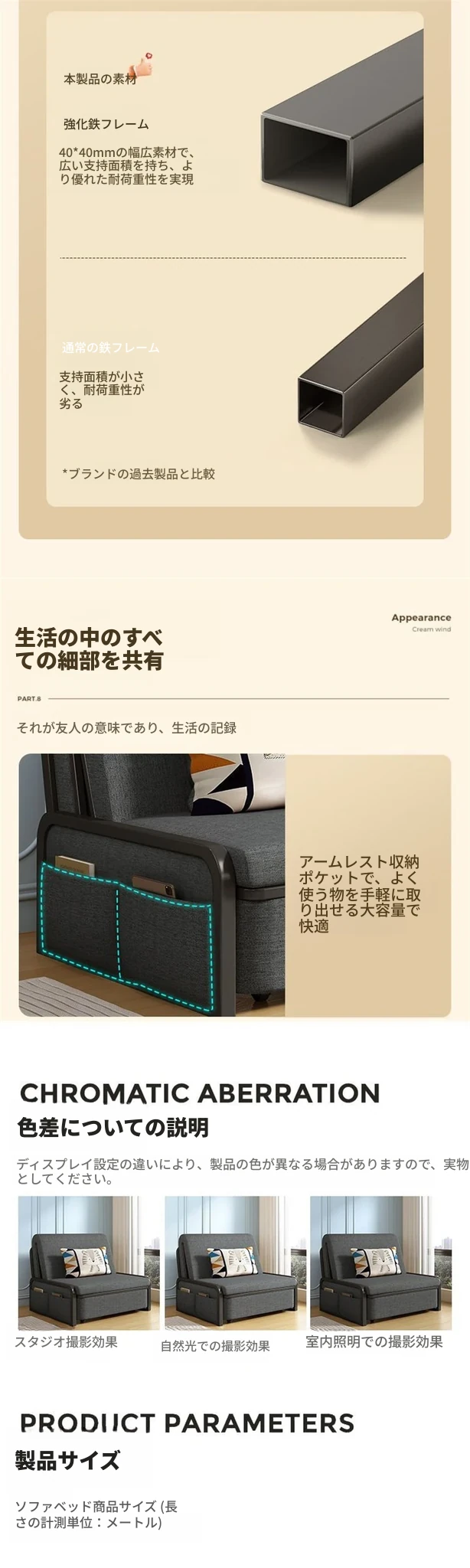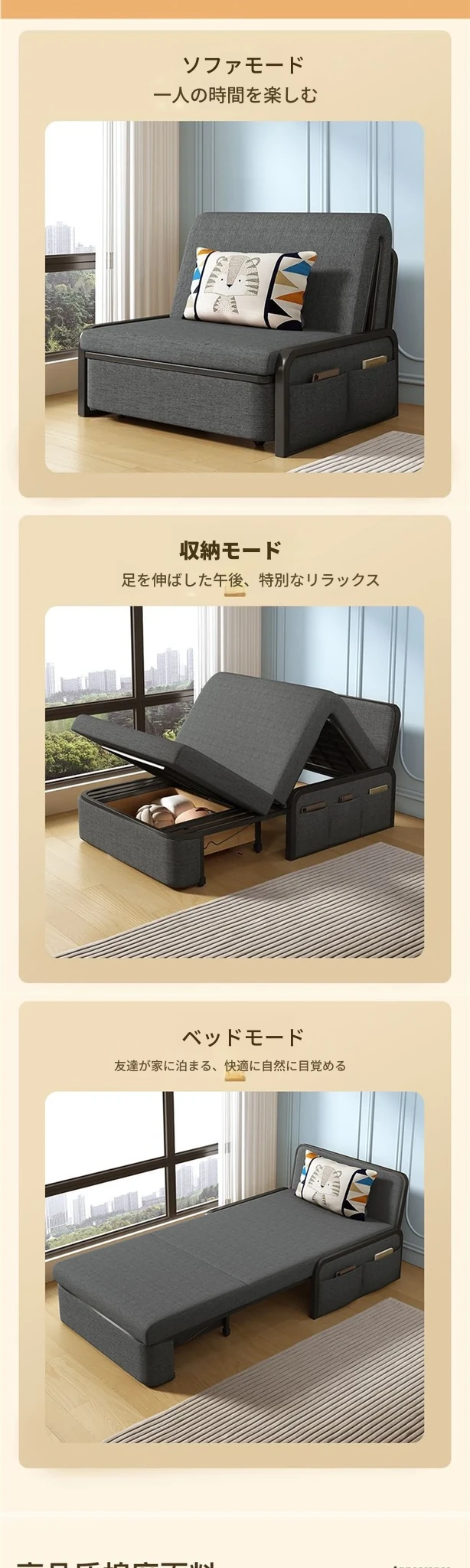 折りたたみソファベッド - 多機能でコンパクト、リビングに最適な一体型ソファ!シングル・ダブル両用で、小さなスペースでも大活躍。おしゃれで機能的なデザインで、快適なひとときをお届けします!