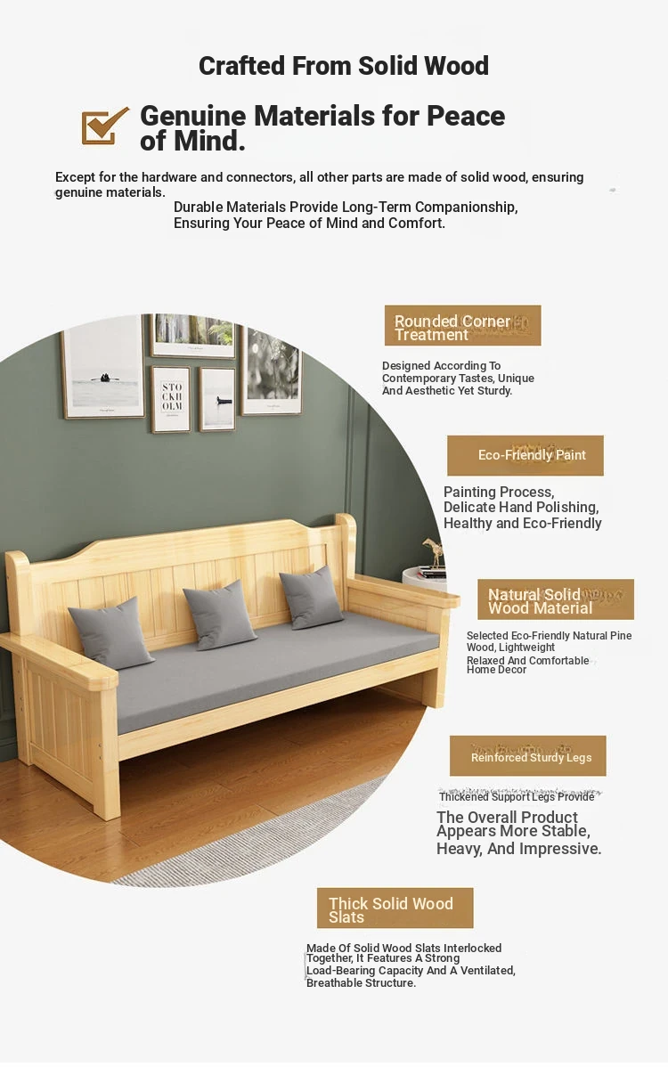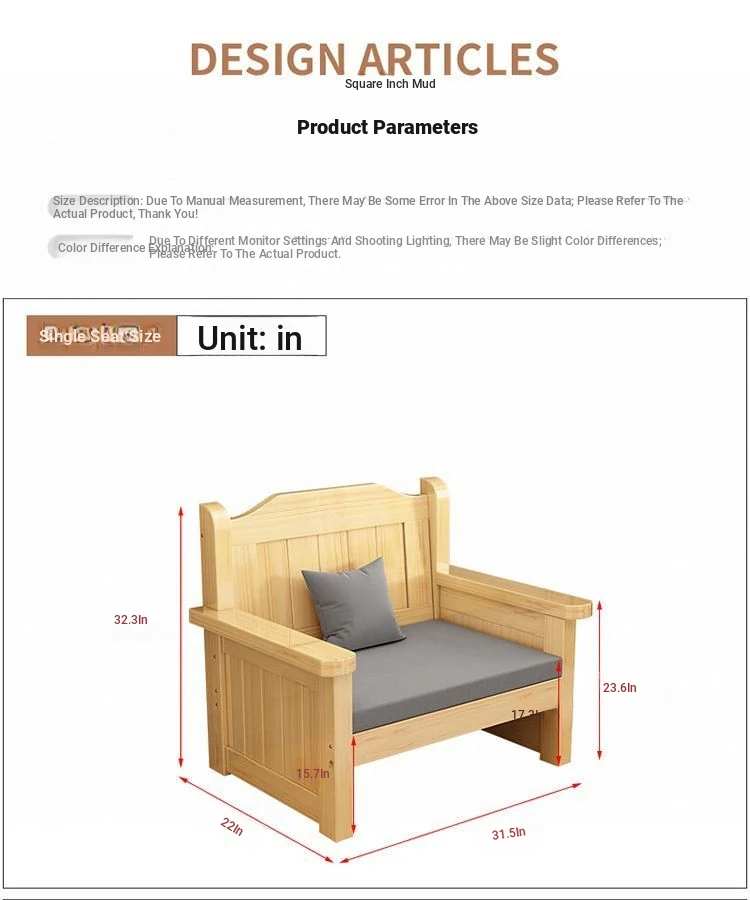 Multifunctional Wooden Armchair Sofa – Perfect for Small Spaces, Winter & Summer Use, Ideal for Bedrooms and Living Rooms - Seats 3 to 4, Stylish and Comfortable Design