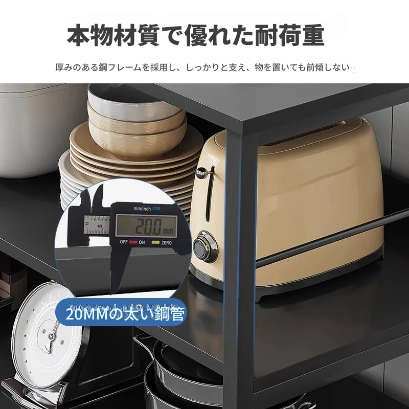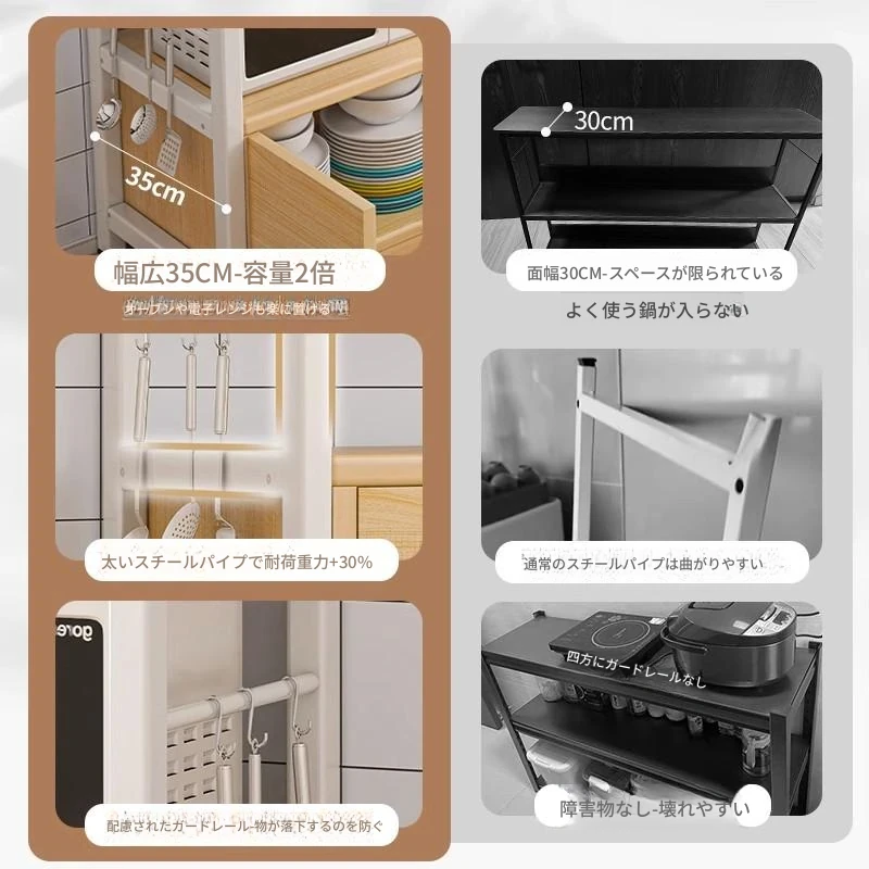 多機能キッチン収納キャビネット - 地面設置型の多層家庭用キャビネット、便利な収納ラック、ダイニングサイドキャビネット、調理台としても使用可能!おしゃれでスペースを有効活用!