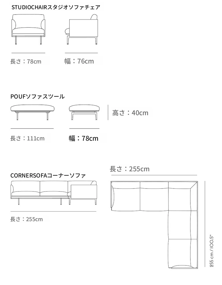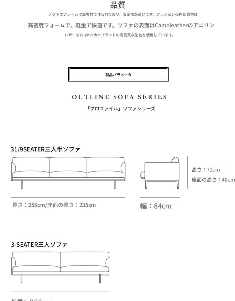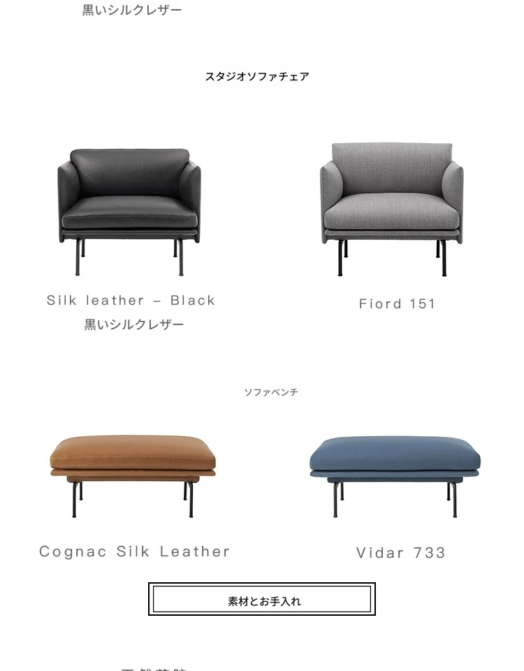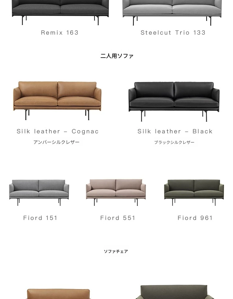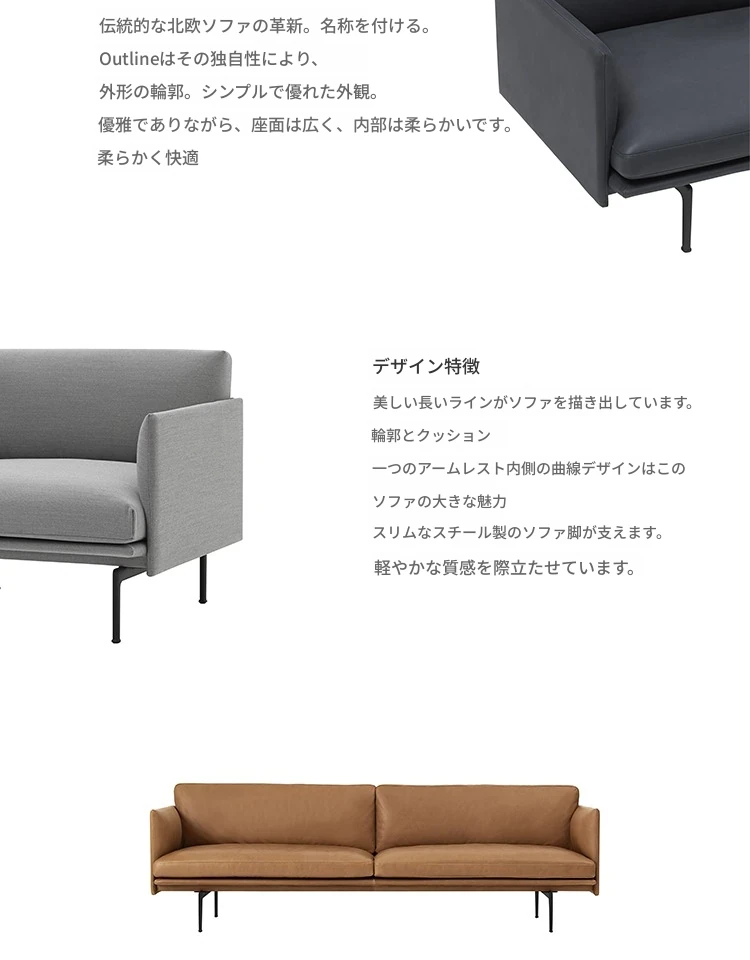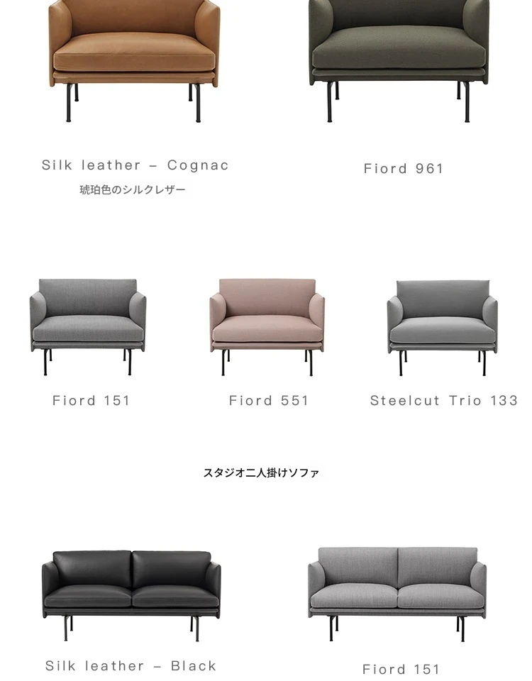 Muutoデンマーク輸入OUTLINEチェアシリーズレザー&ファブリックソファー - 北欧のシンプルさとスタイルを融合した快適な空間を演出!