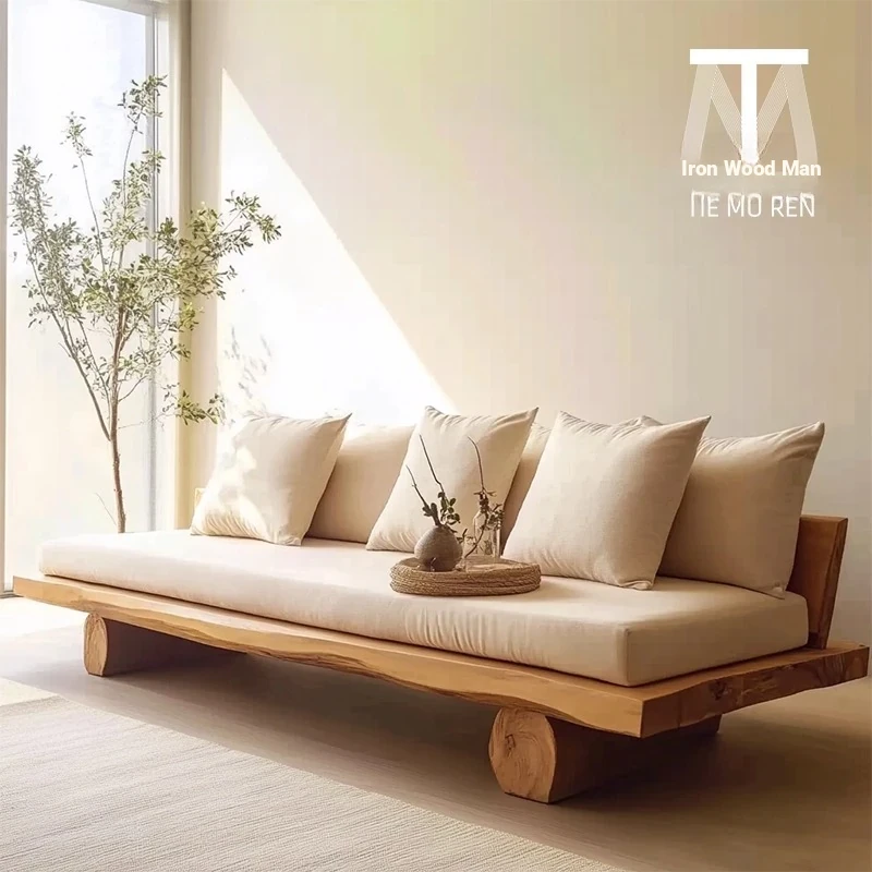 New Chinese Style Pine Sofa Bed - Rustic Solid Wood Sofa Chair for Hotels and Guesthouses, Perfect for Balconies and Home Use, Elegant and Comfortable Real Wood Furniture