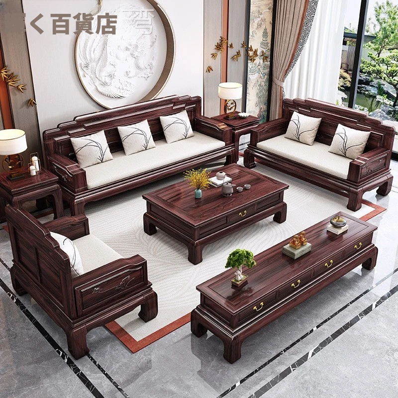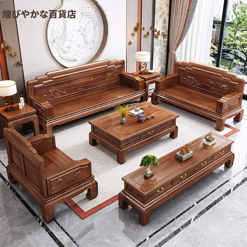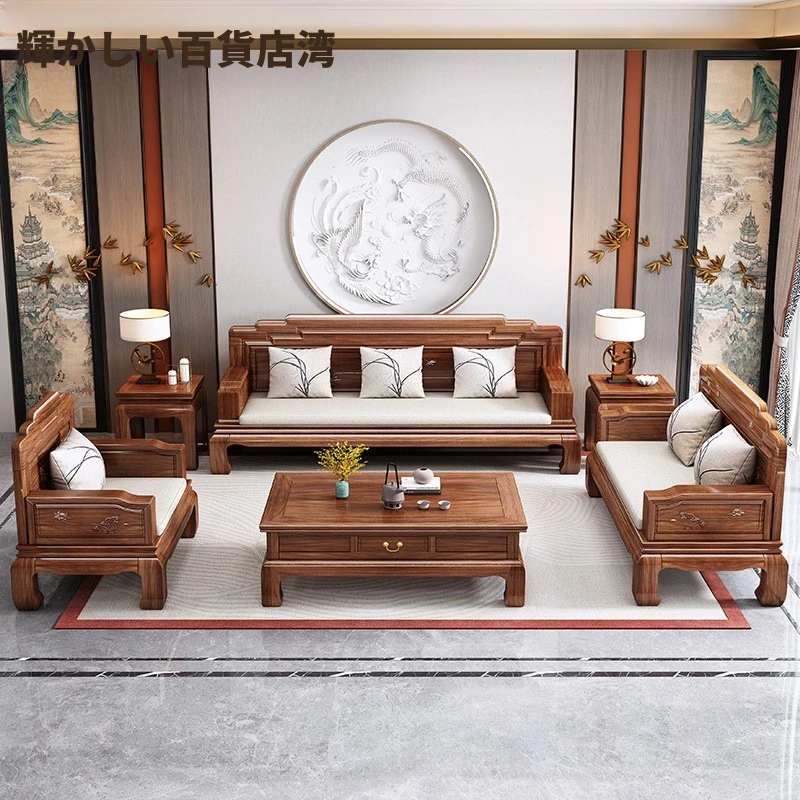 新中式デザインの無垢材コンビネーションソファ923# - 小スペースに最適!スタイリッシュなダブルソファで、ゲストを迎えるのにぴったり。快適な座り心地を提供し、リビングを華やかに演出します。