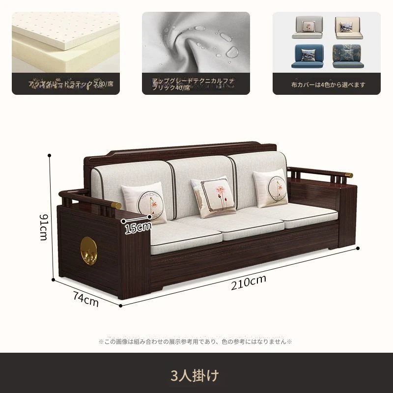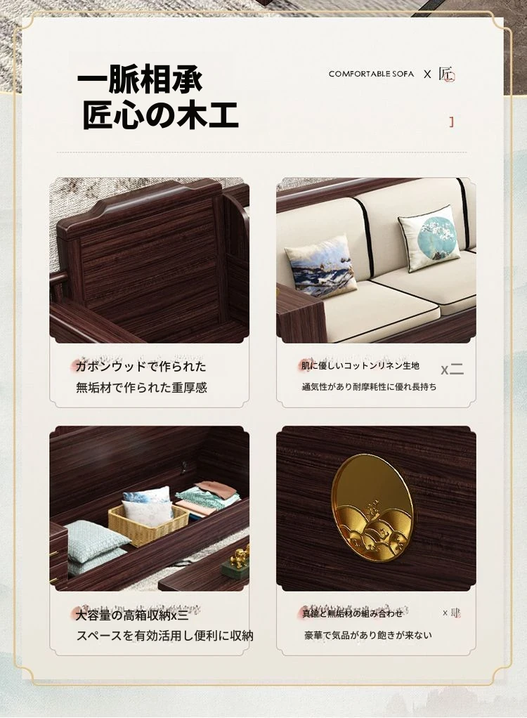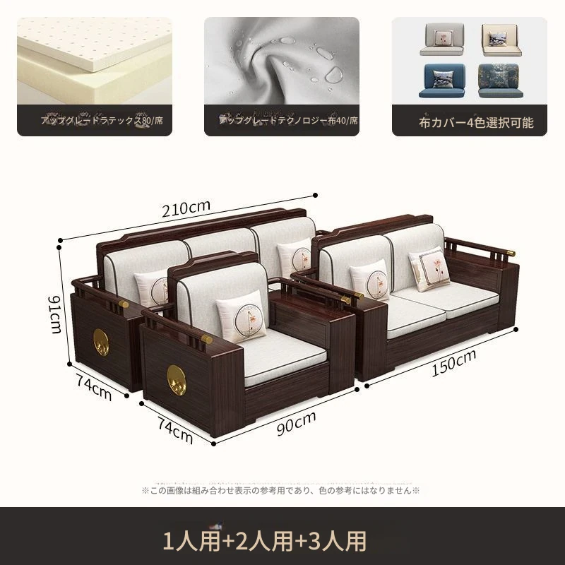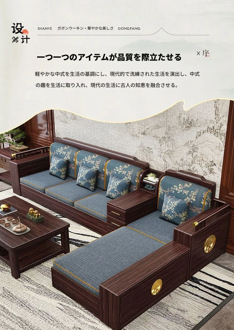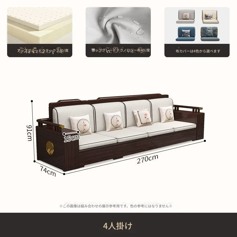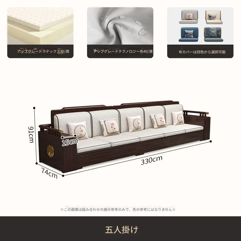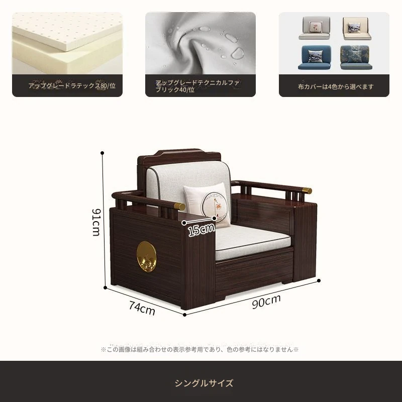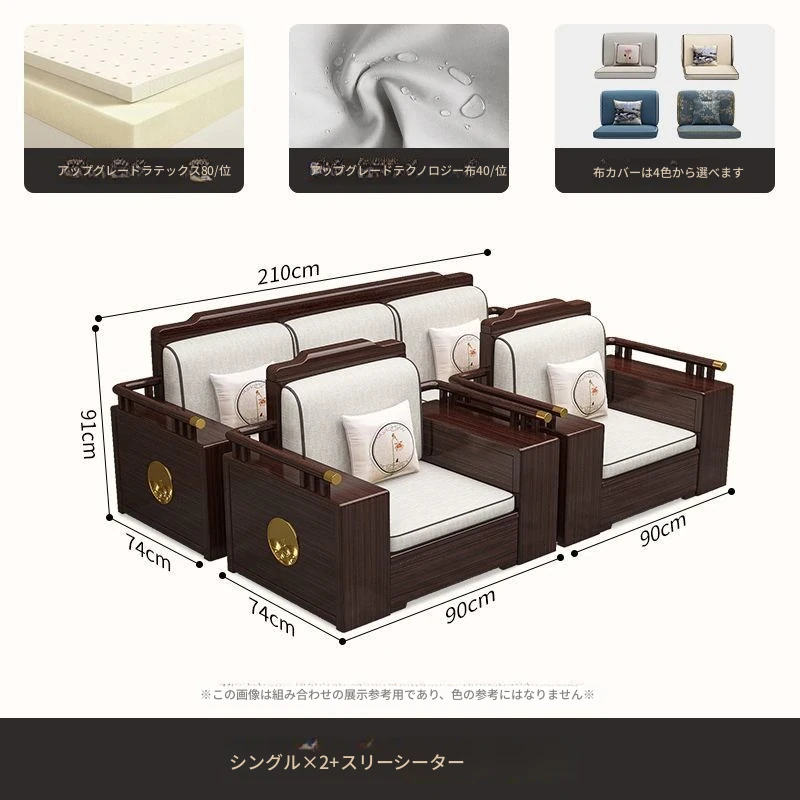 新中式ウッドブラックオーク全実木ソファセット - 冬夏兼用、大小戸型に最適な中国風リビング家具で、お部屋をスタイリッシュに演出!