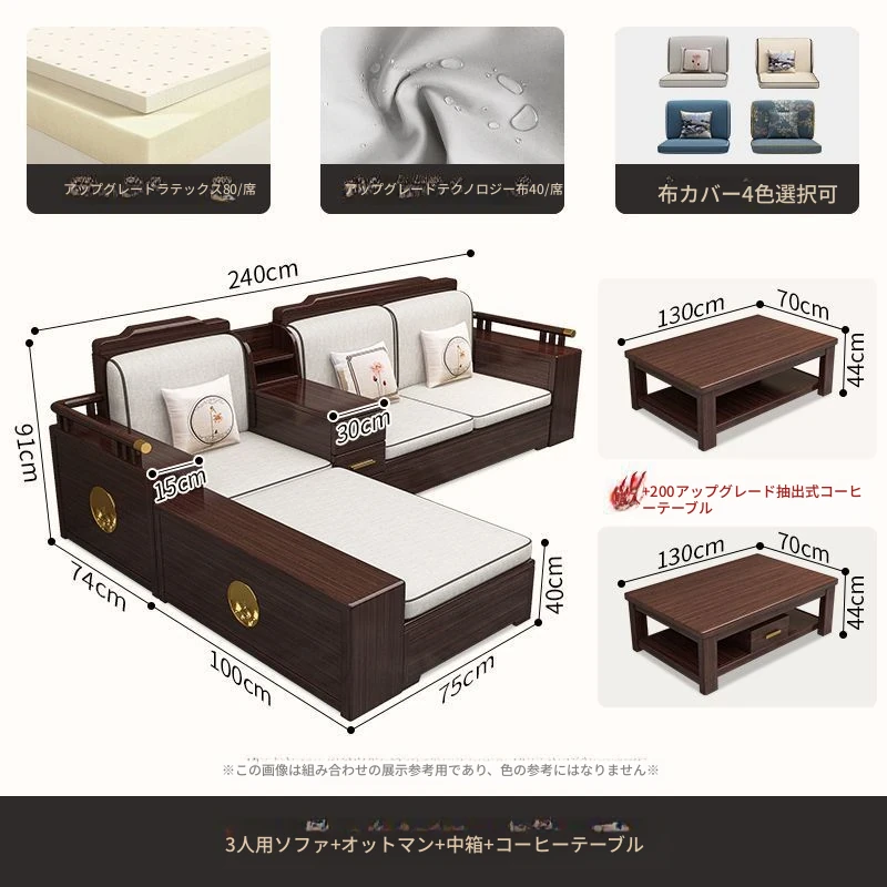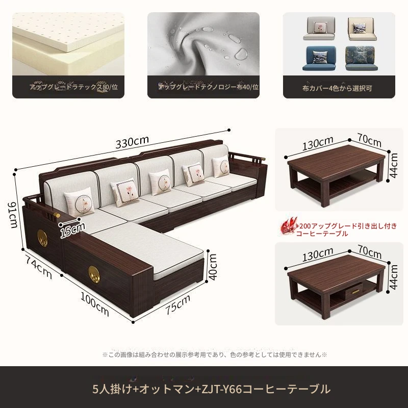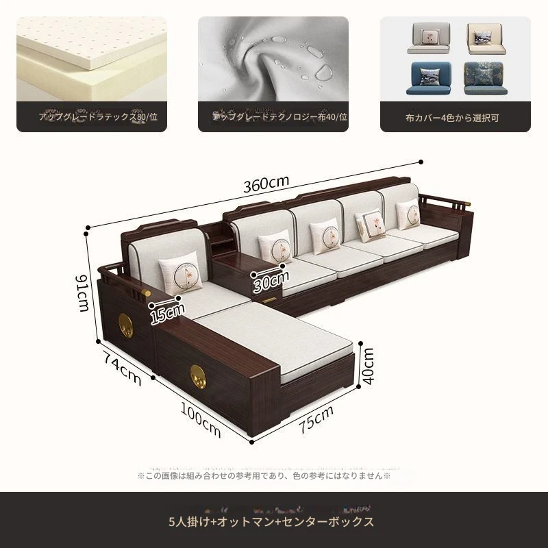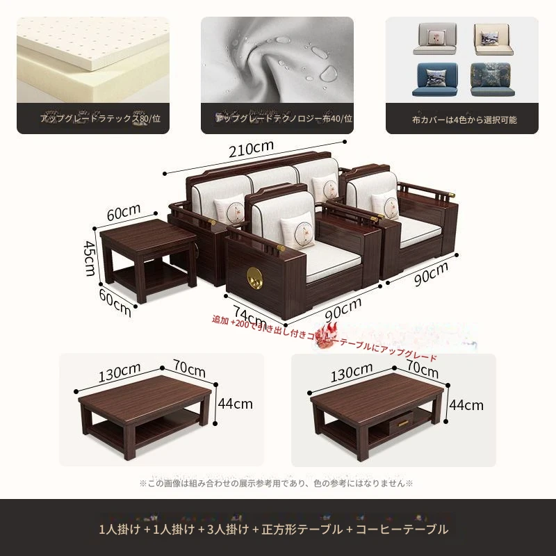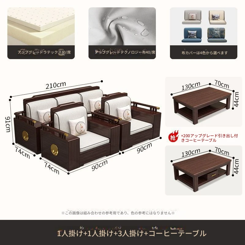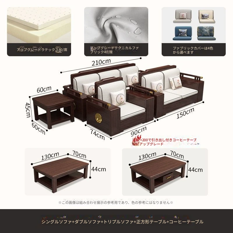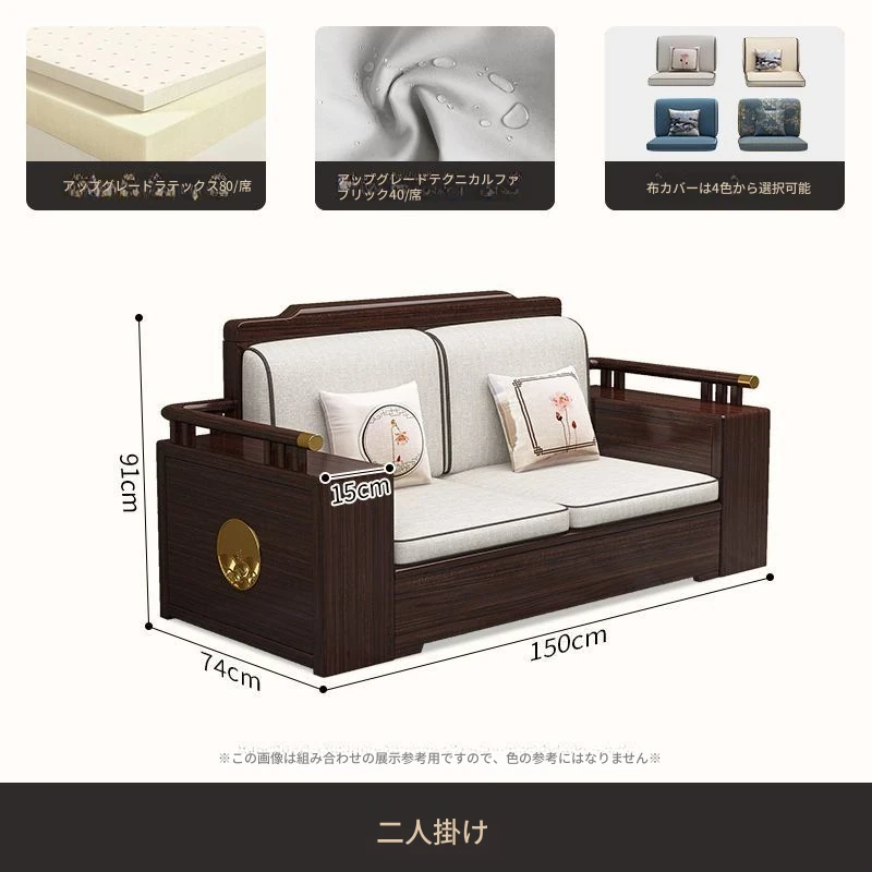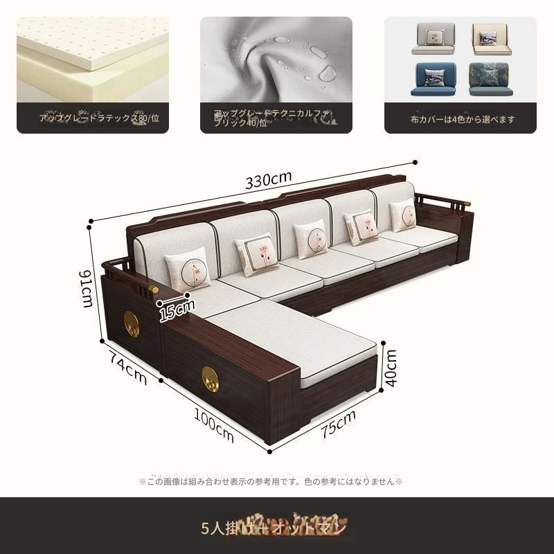 新中式ウッドブラックオーク全実木ソファセット - 冬夏兼用、大小戸型に最適な中国風リビング家具で、お部屋をスタイリッシュに演出!