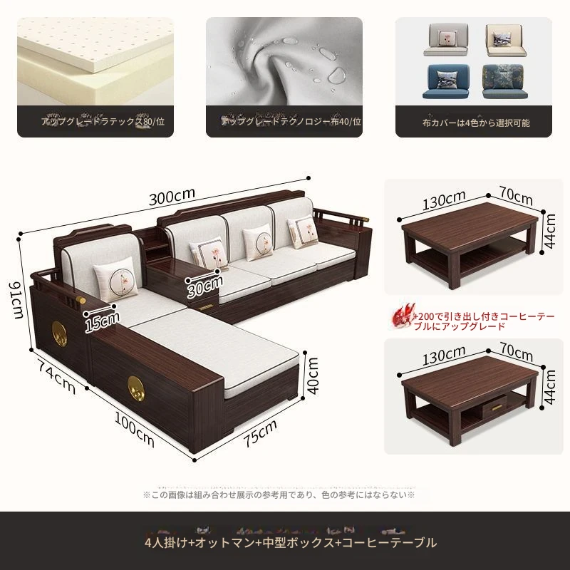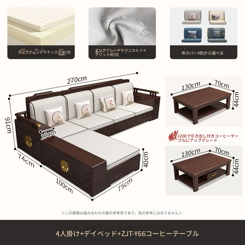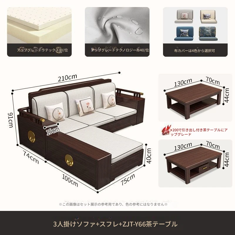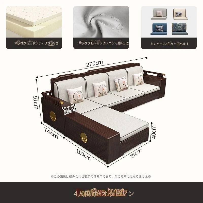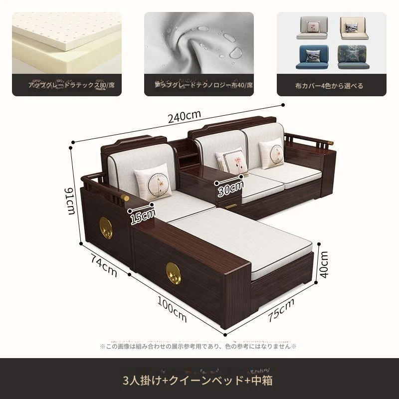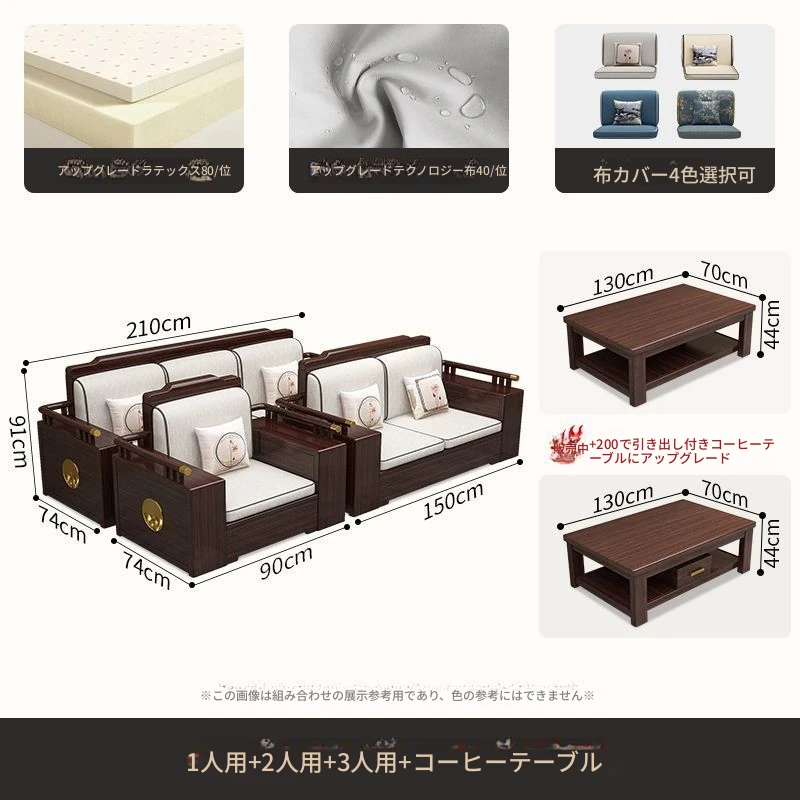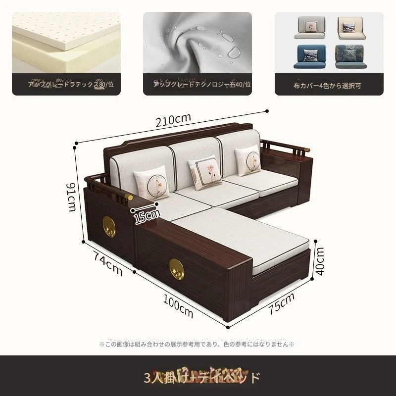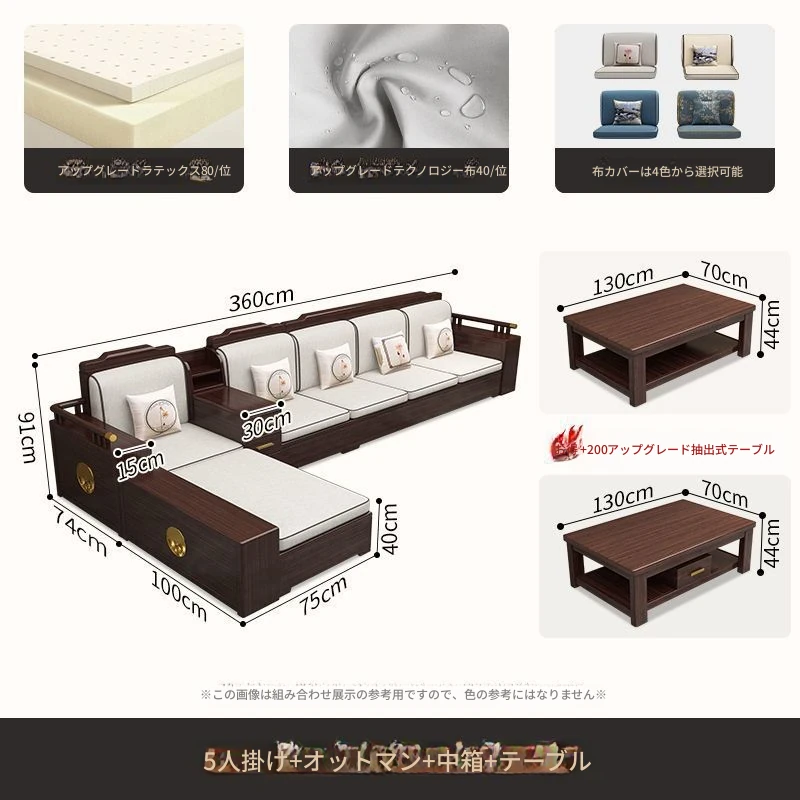 新中式ウッドブラックオーク全実木ソファセット - 冬夏兼用、大小戸型に最適な中国風リビング家具で、お部屋をスタイリッシュに演出!