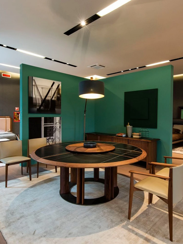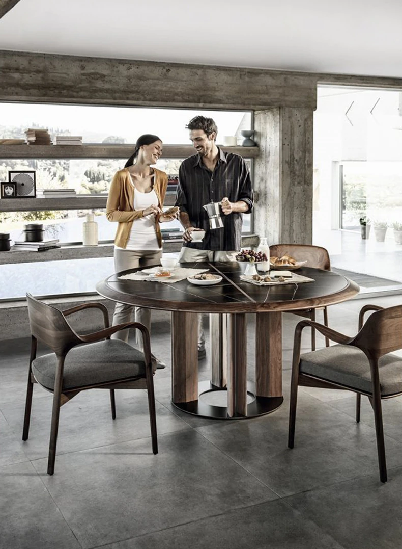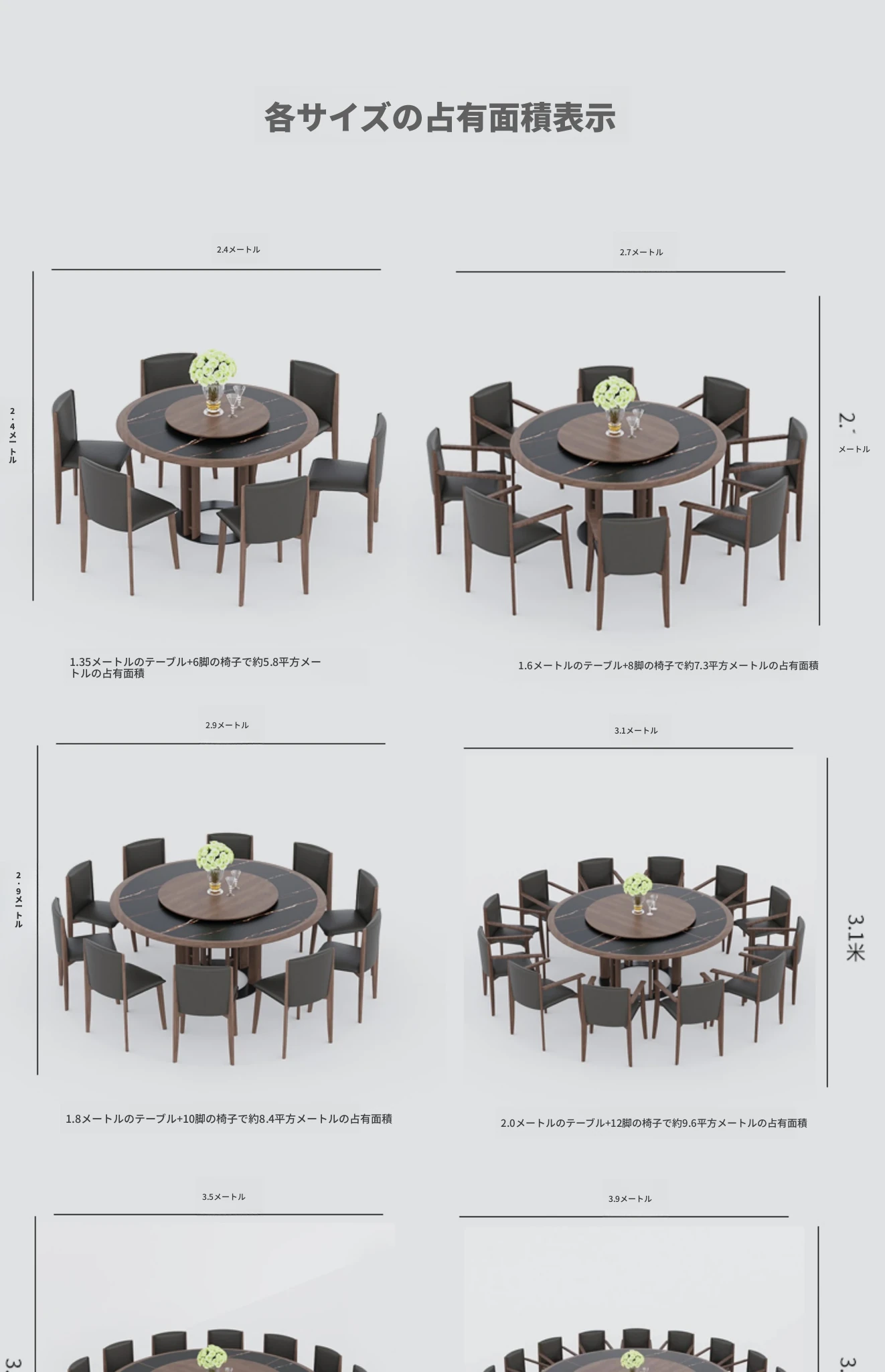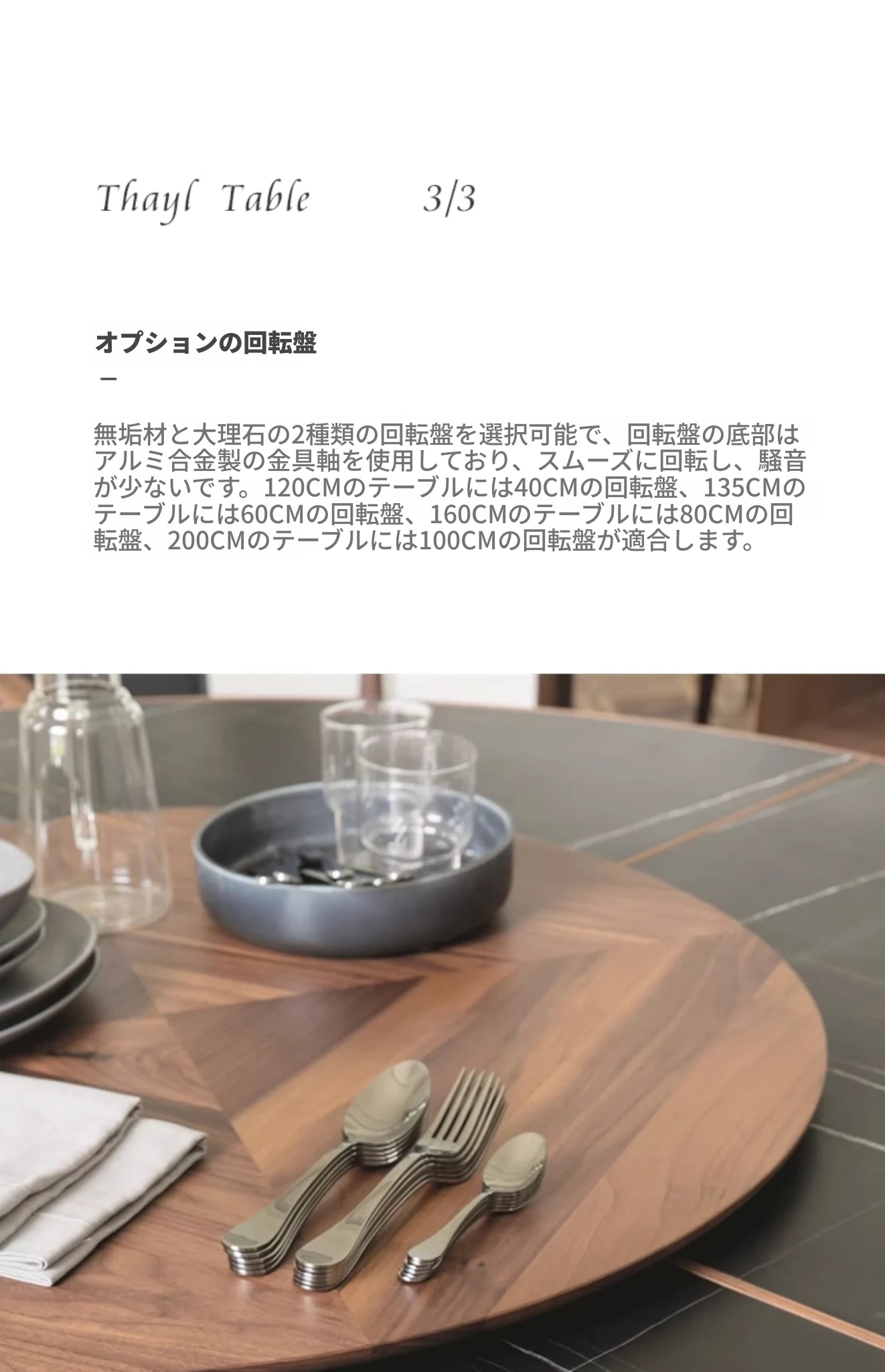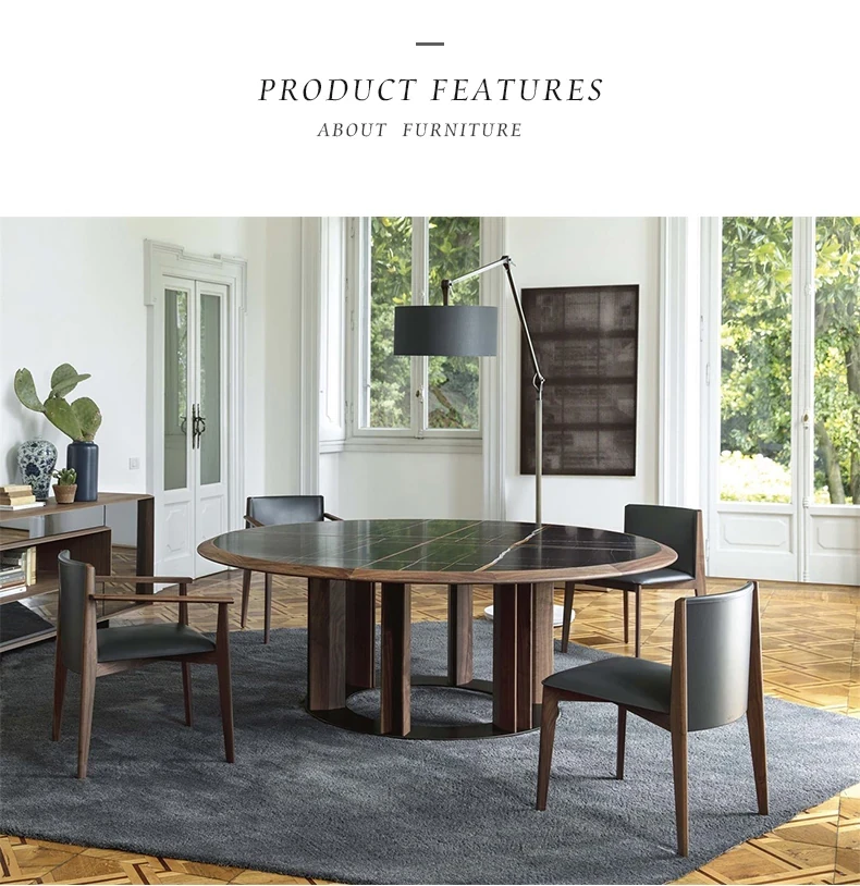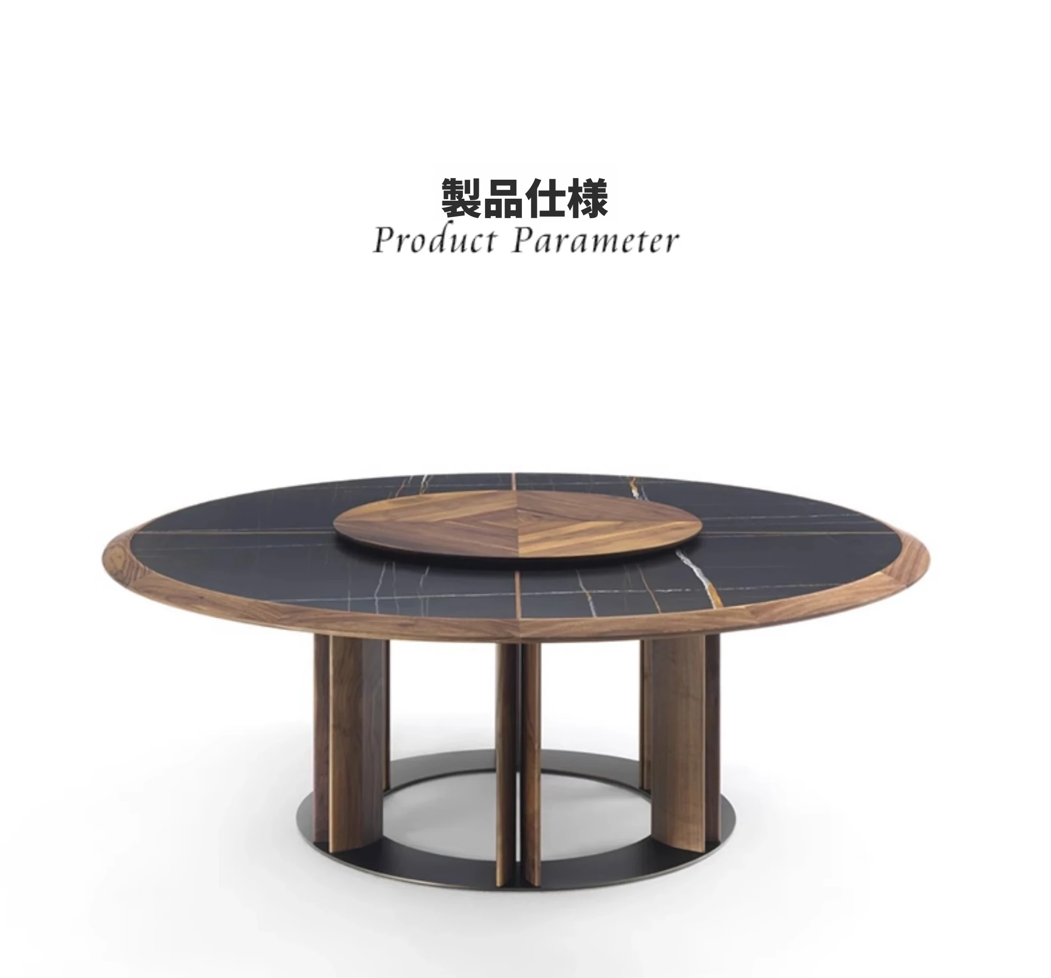 北欧スタイルのブラックウォルナット大理石ダイニングテーブルセット - 回転プレート付きの円形イタリアンミニマリズムデザイン!洗練された空間を演出し、家族や友人との特別な時間をお楽しみください。
