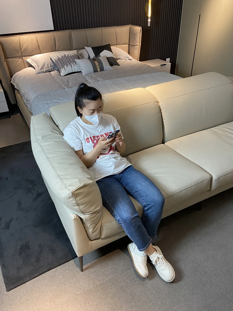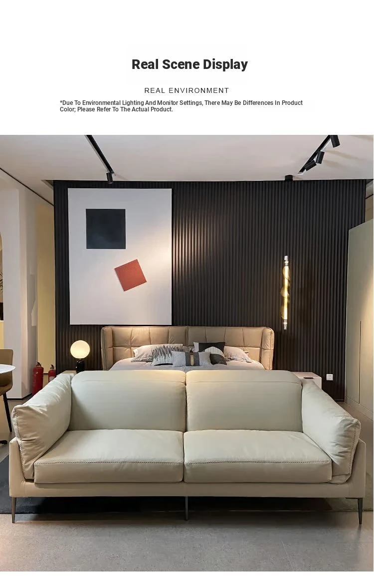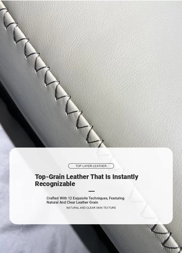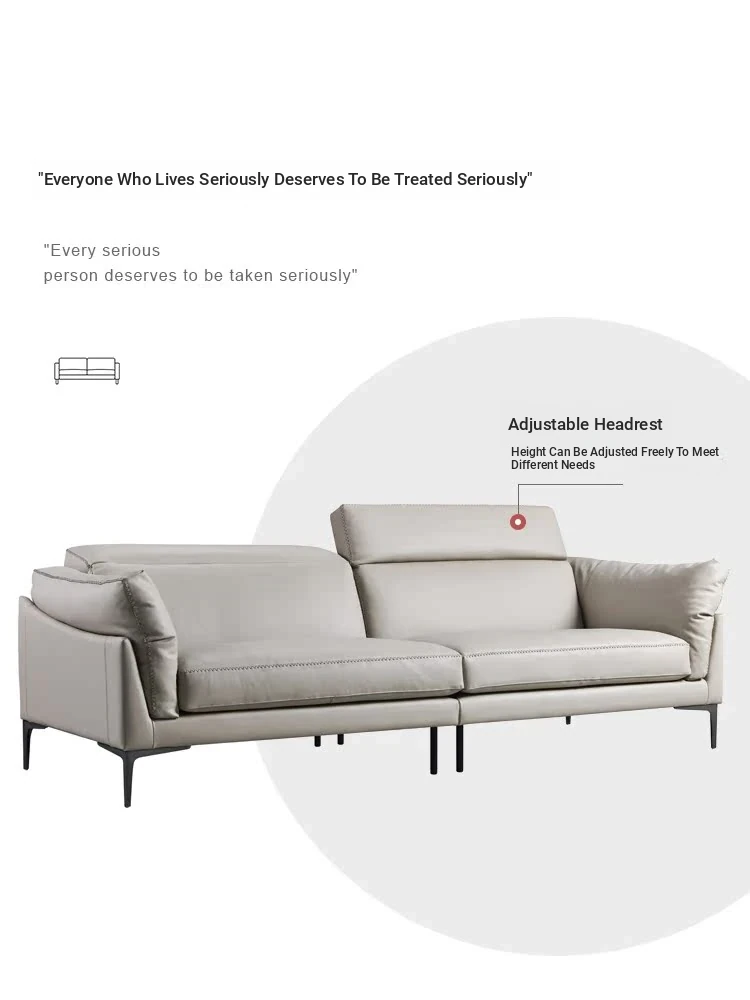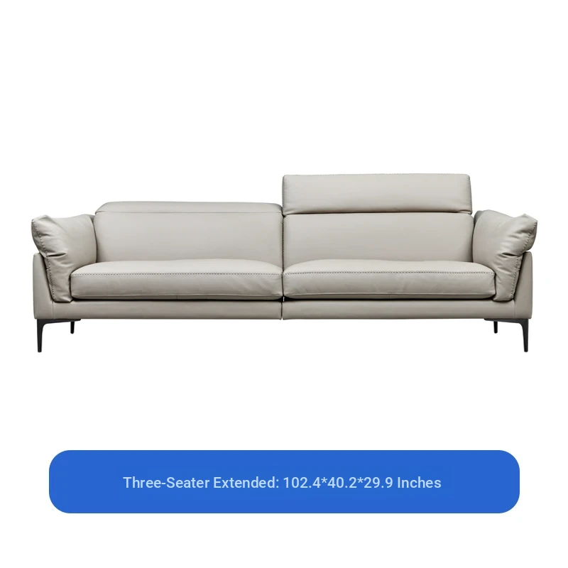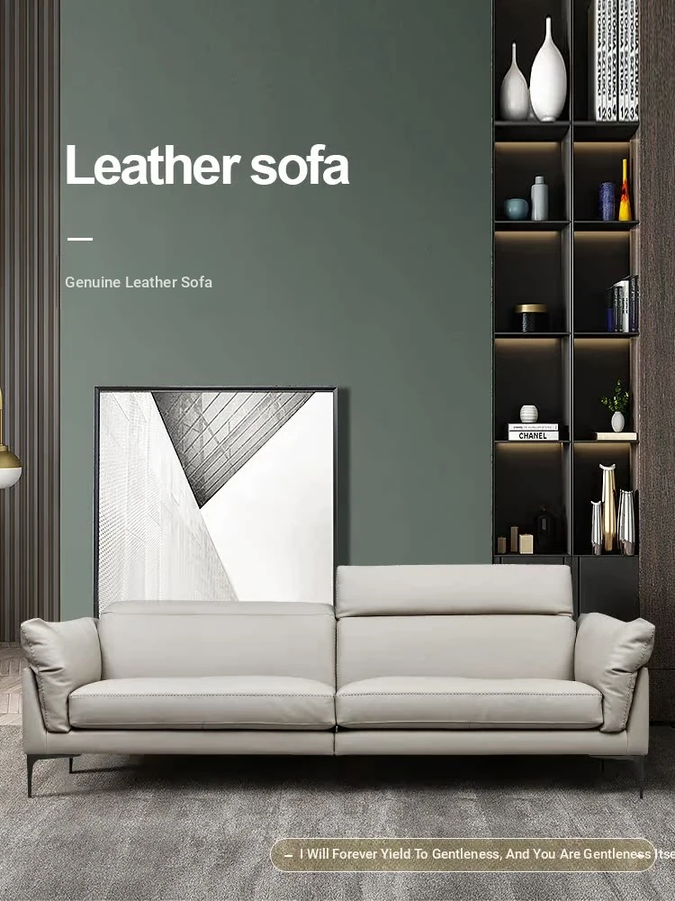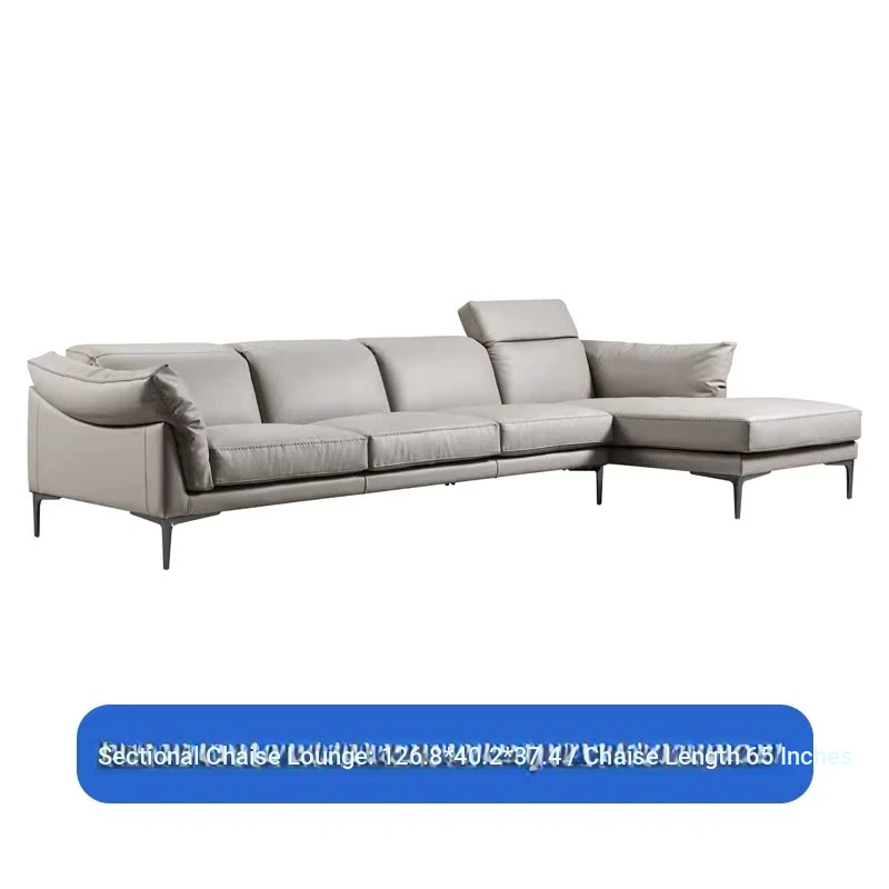 Nordic Genuine Leather Sofa - Modern Luxury Upholstered Couch in Top-Grade Cowhide for Living Rooms, Perfect for Spacious or Cozy Spaces, Featuring a Stylish Chaise Lounge Combination