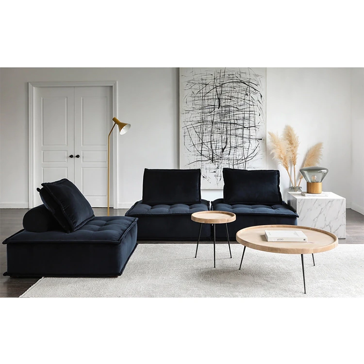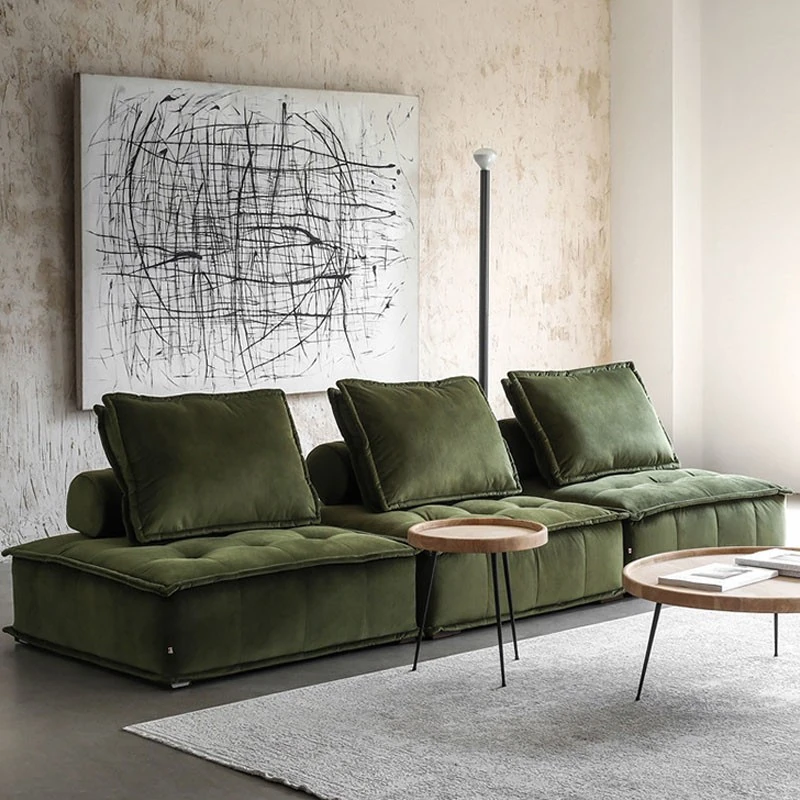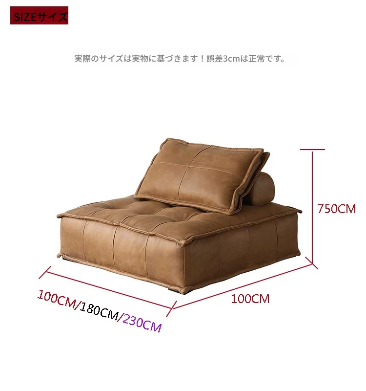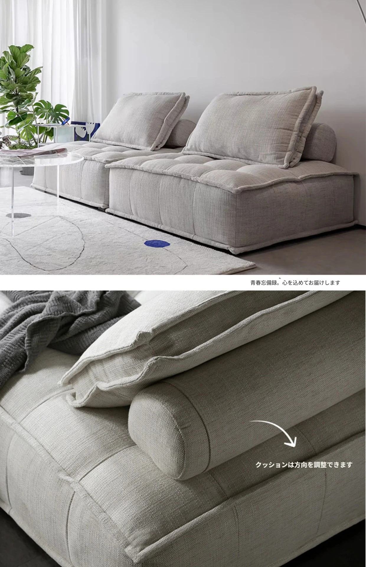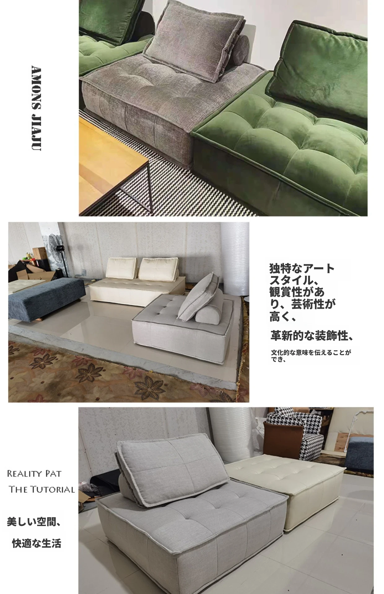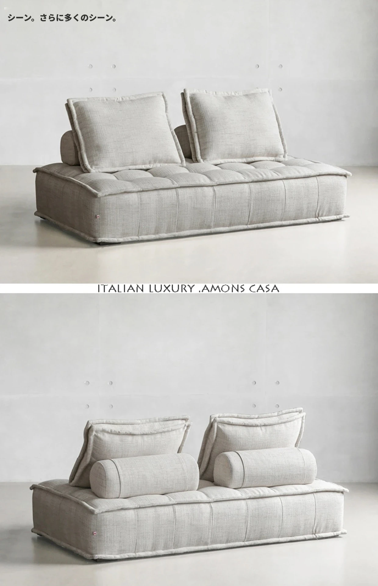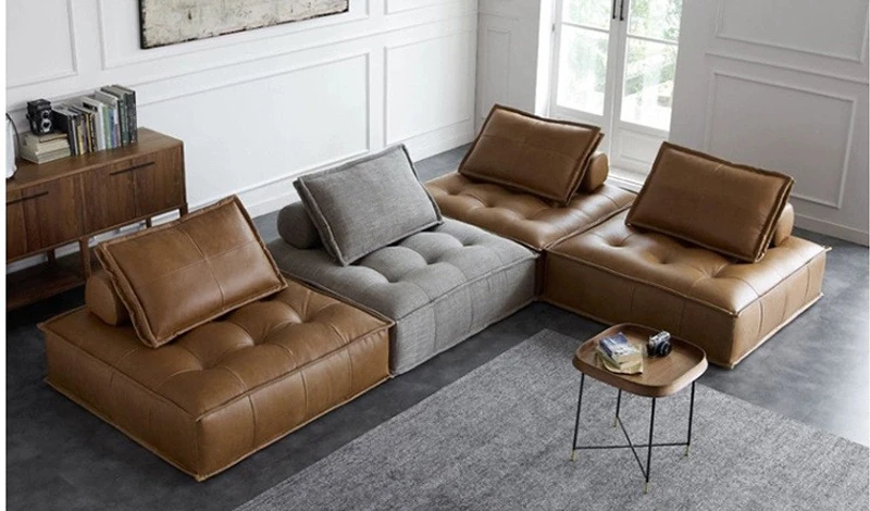 北欧風イタリアンラグジュアリー!贅沢なレザーとファブリックのコンビネーション、シンプルで洗練されたピエモンテスタイルのダブルソファ。心地よい豆腐ブロックデザインで、リビングに優雅さをプラス!