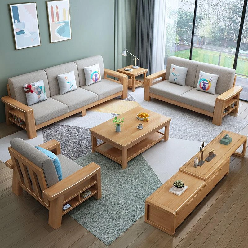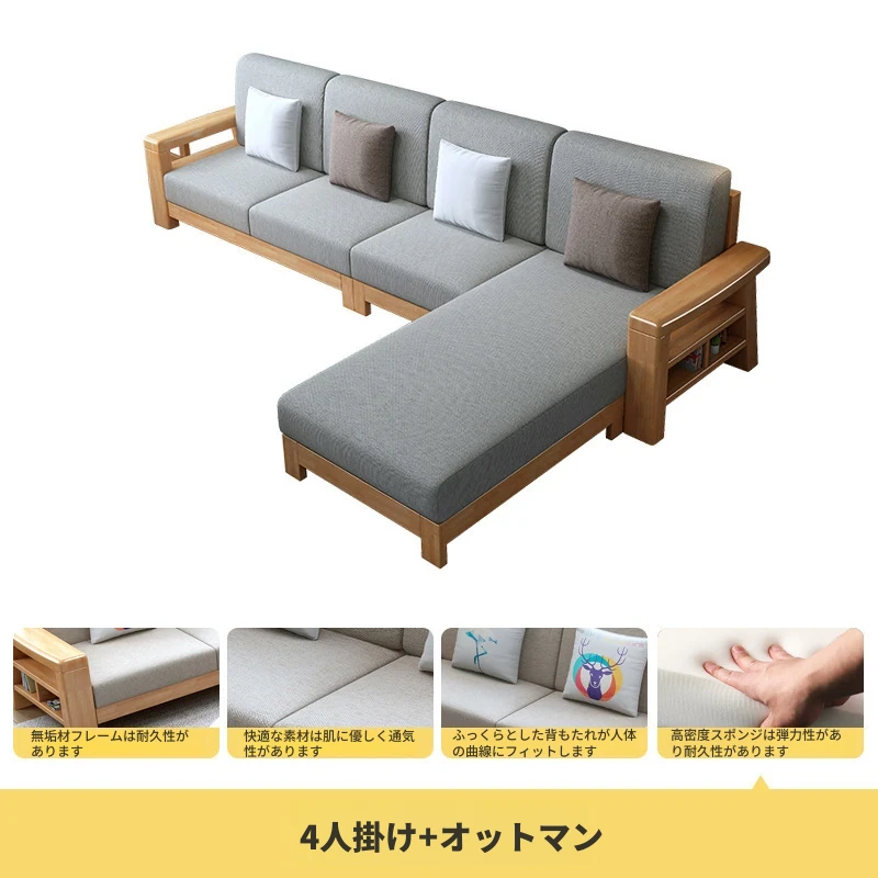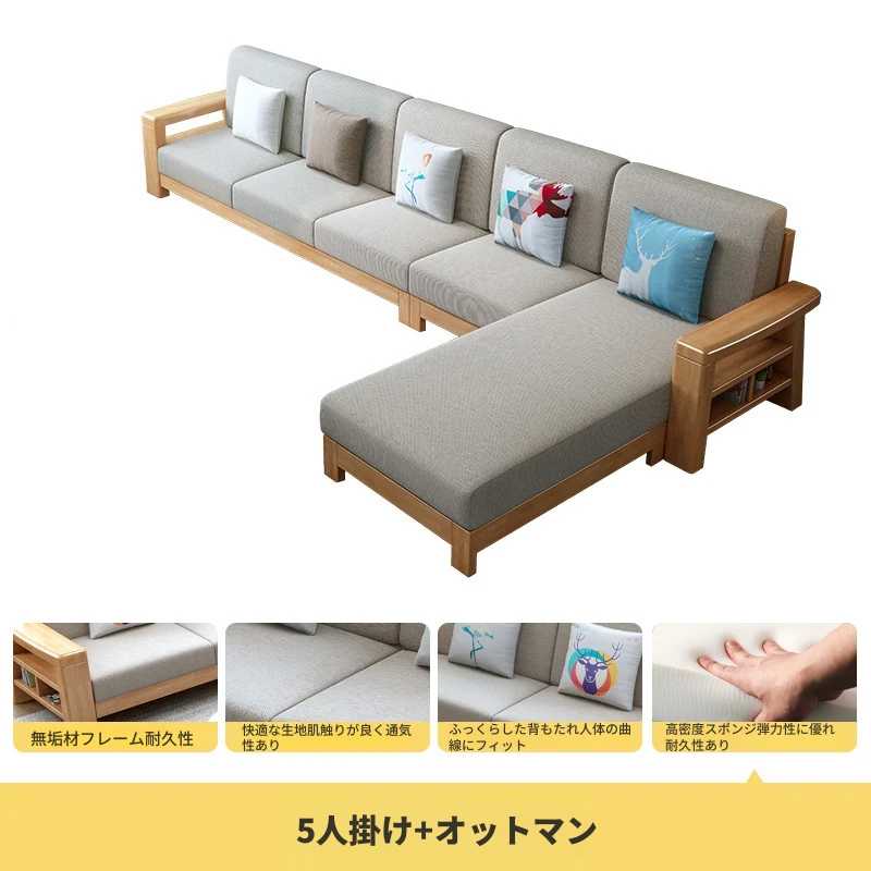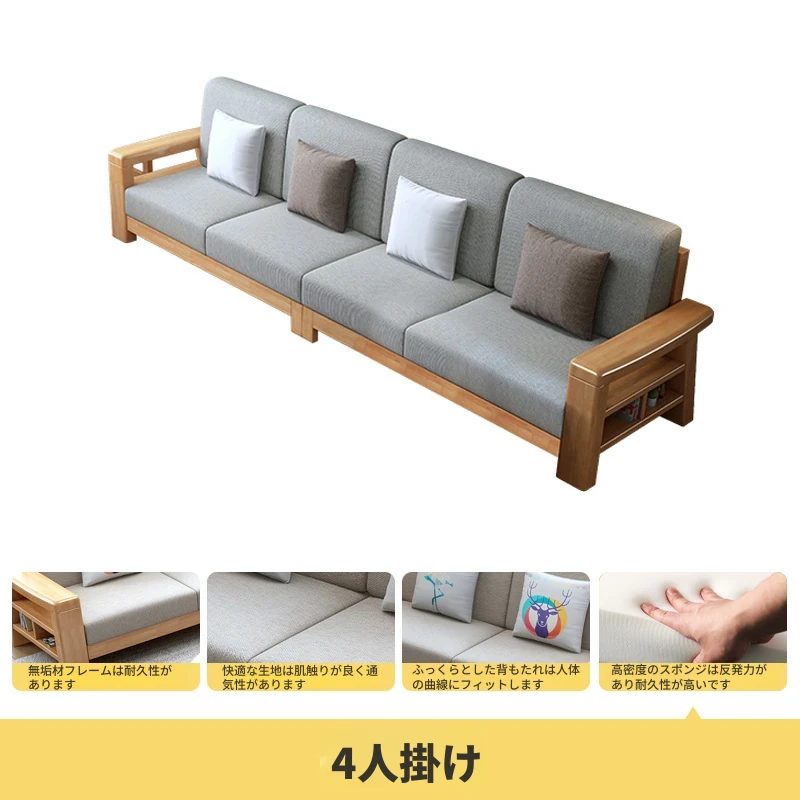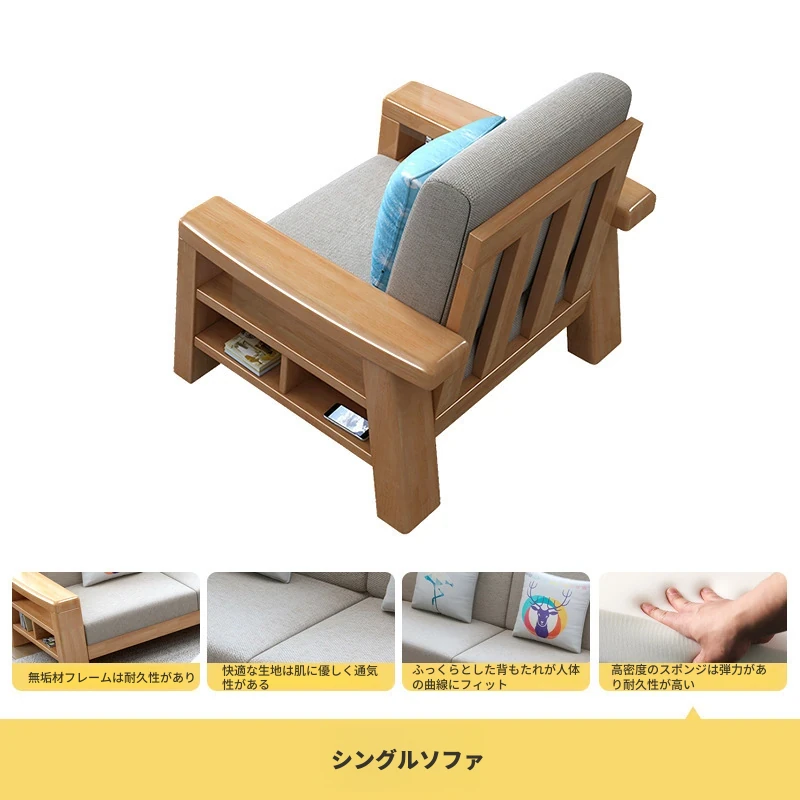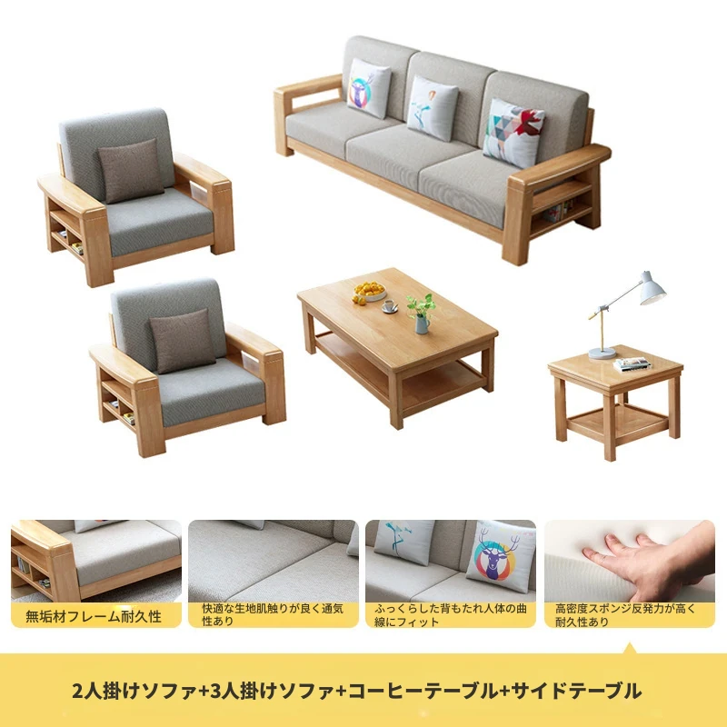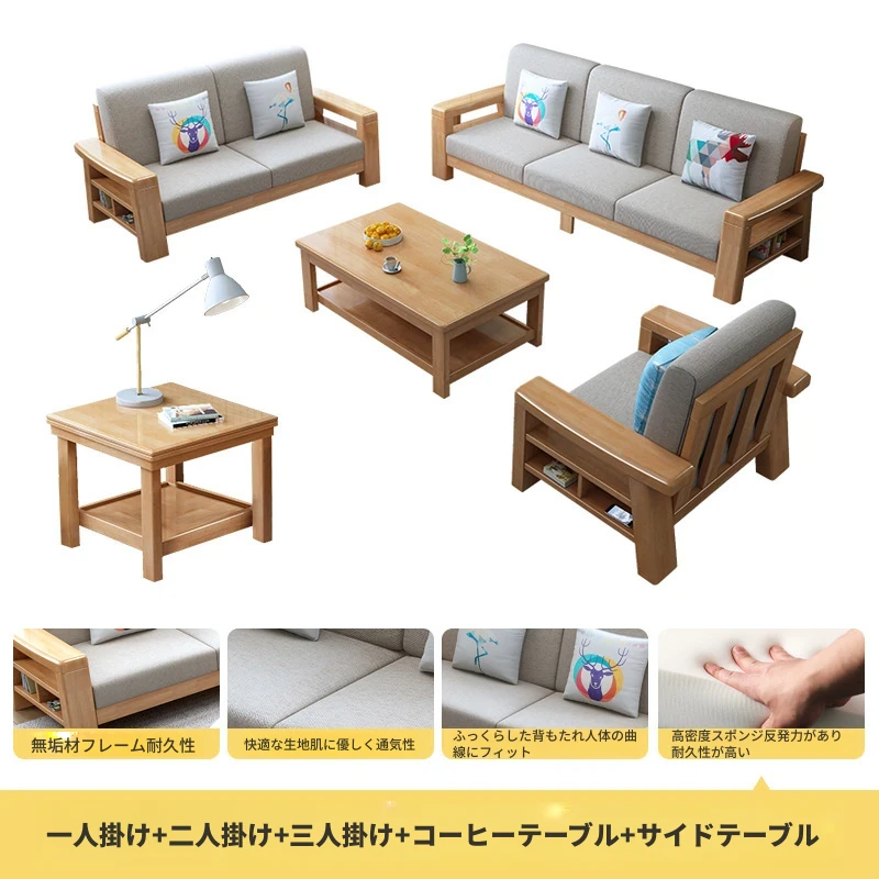 北欧スタイルの無垢材ソファ|現代的でシンプルなデザイン|小型リビングに最適な3人掛け布製カウチソファセット|メーカー直販でお求めやすく!