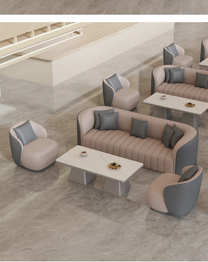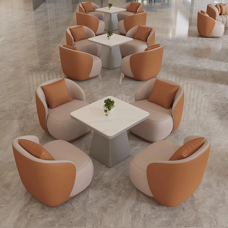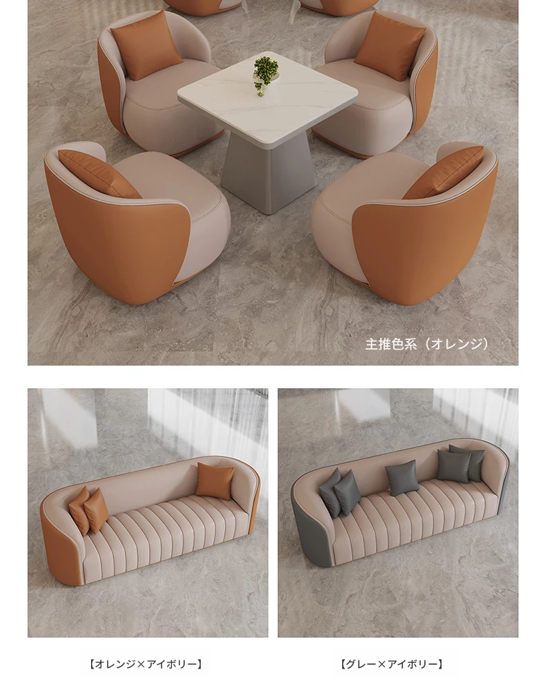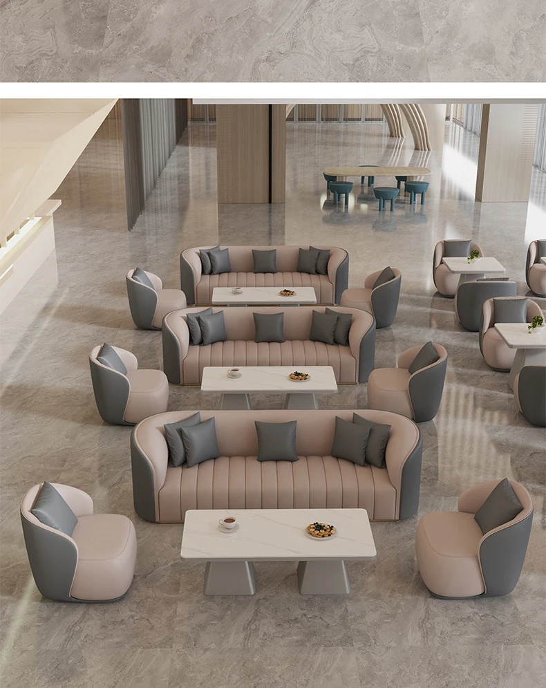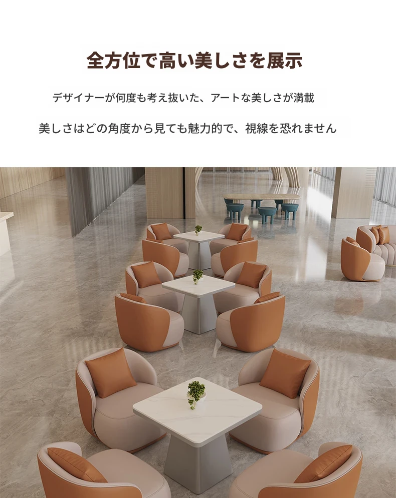 北欧スタイルのビジネスショールーム用レセプションソファセット - モダンなコーヒーテーブルとミーティングチェア、ホテルのロビーやオフィスに最適!おしゃれで機能的な空間を演出します。