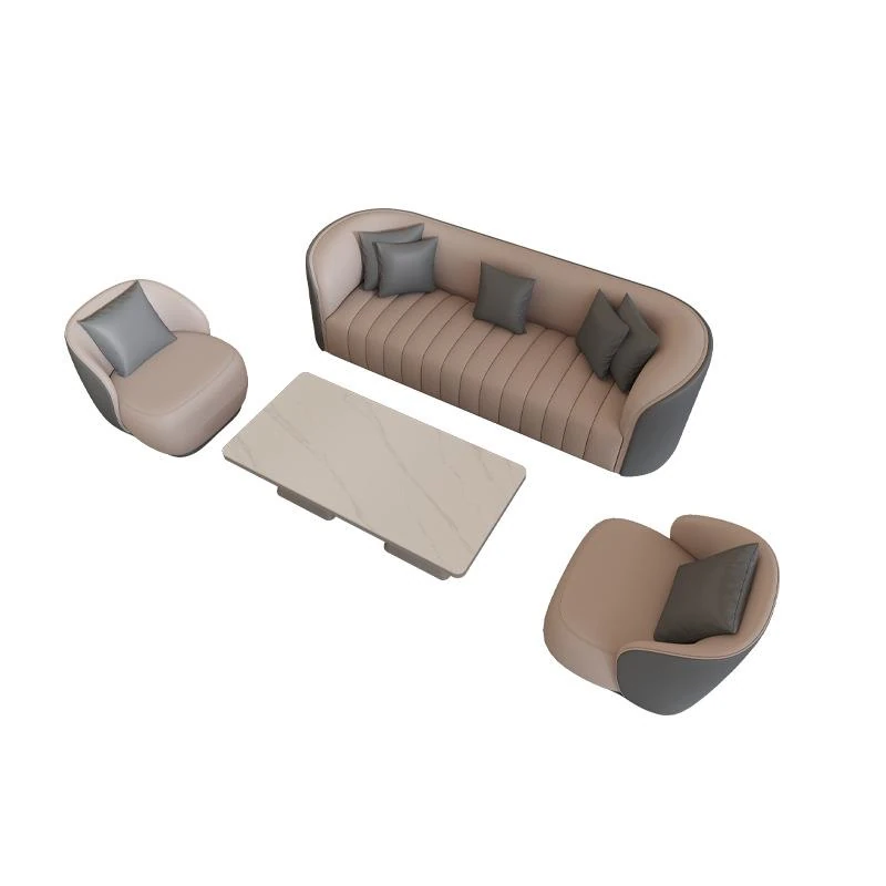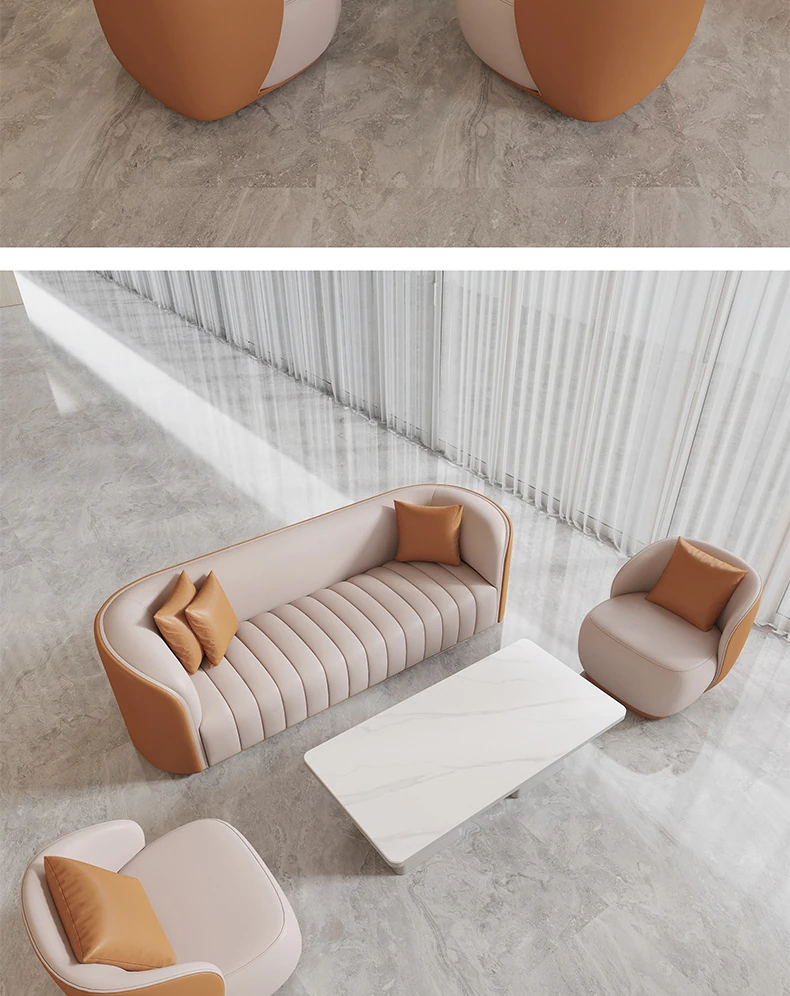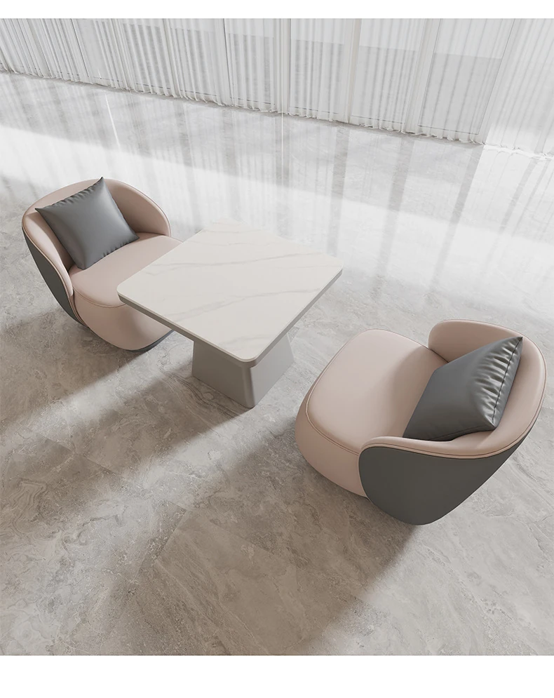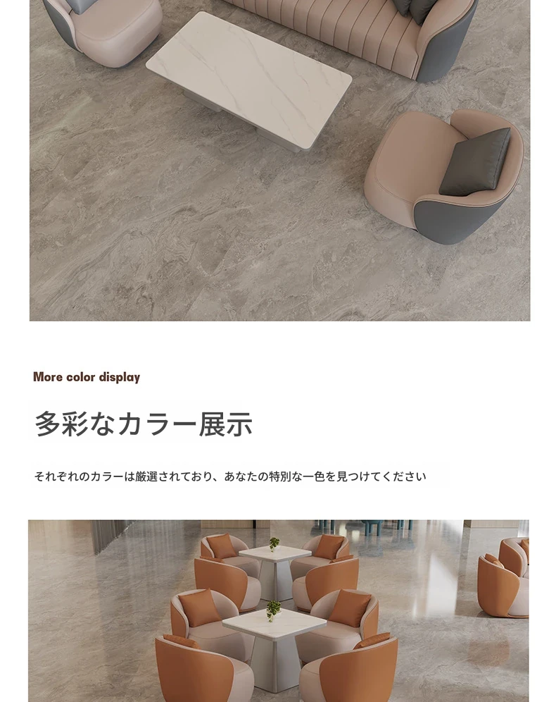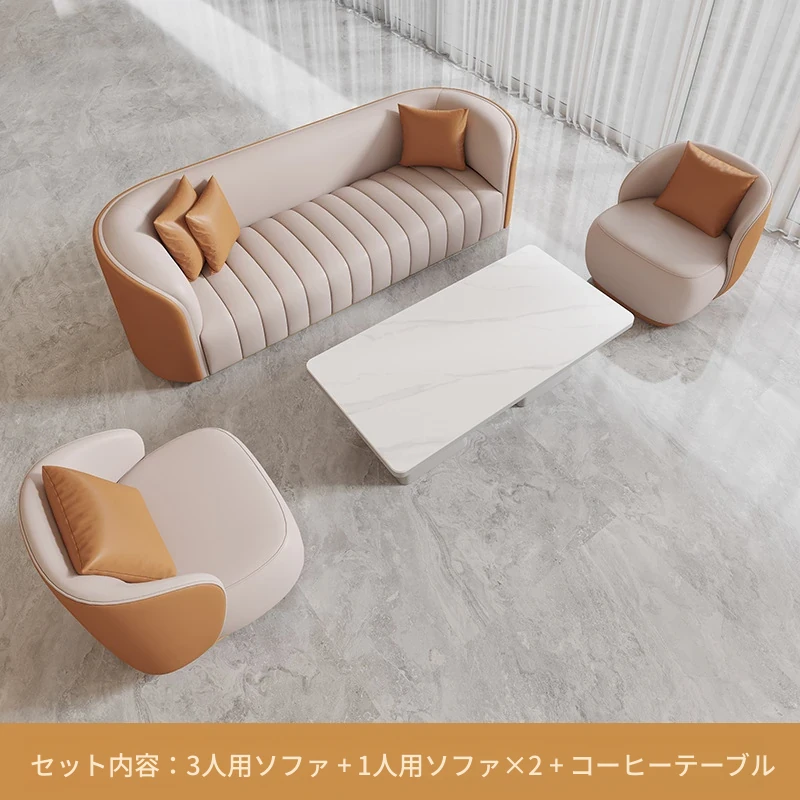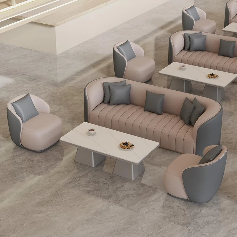 北欧スタイルのビジネスショールーム用レセプションソファセット - モダンなコーヒーテーブルとミーティングチェア、ホテルのロビーやオフィスに最適!おしゃれで機能的な空間を演出します。