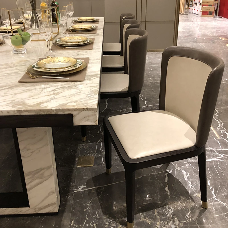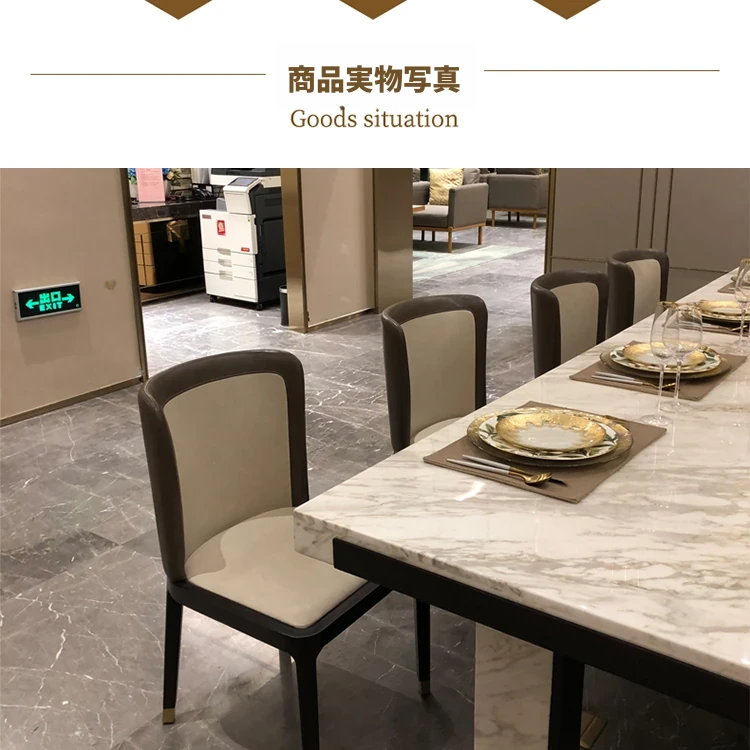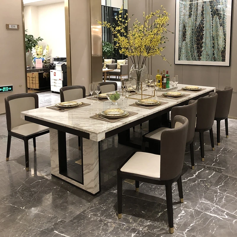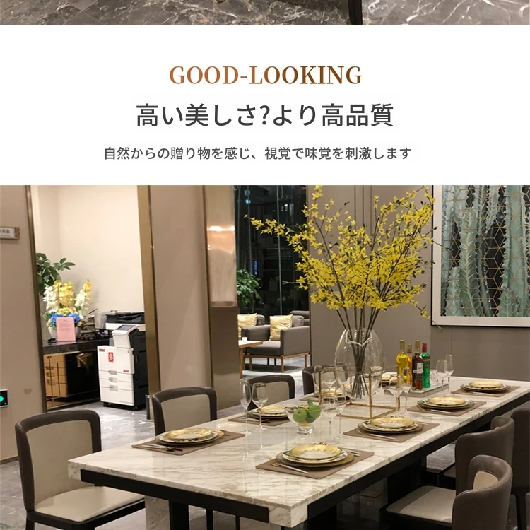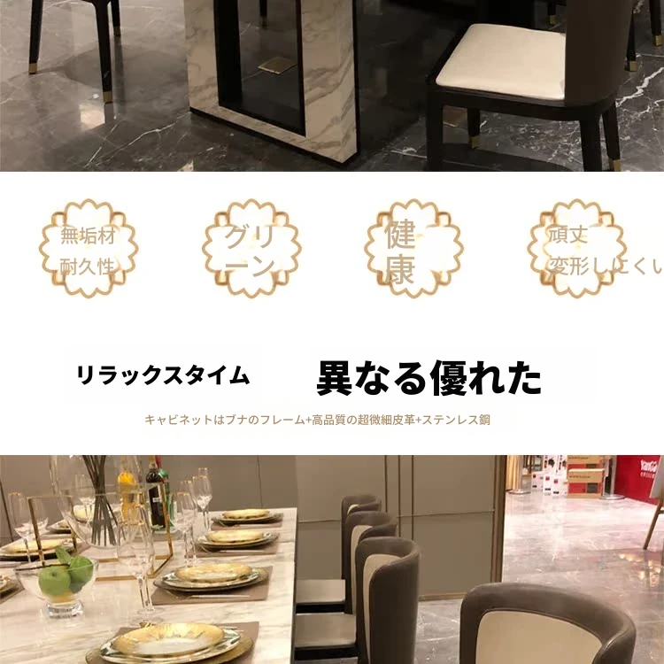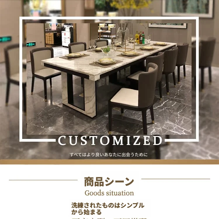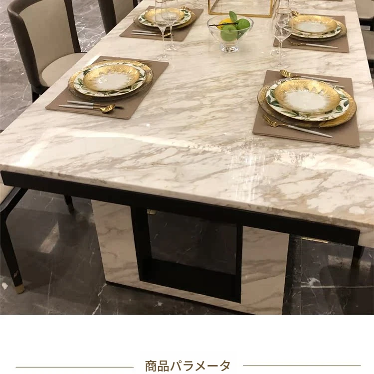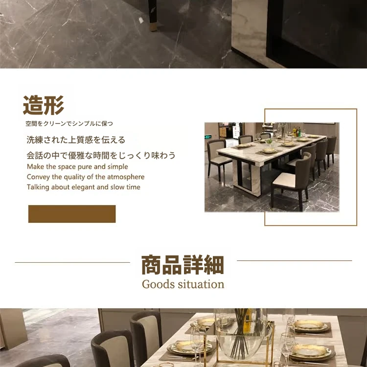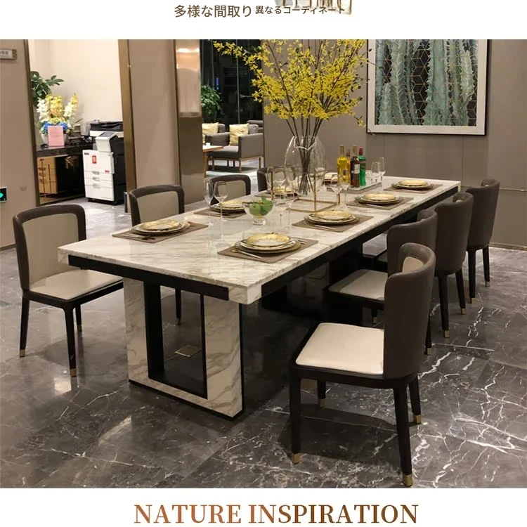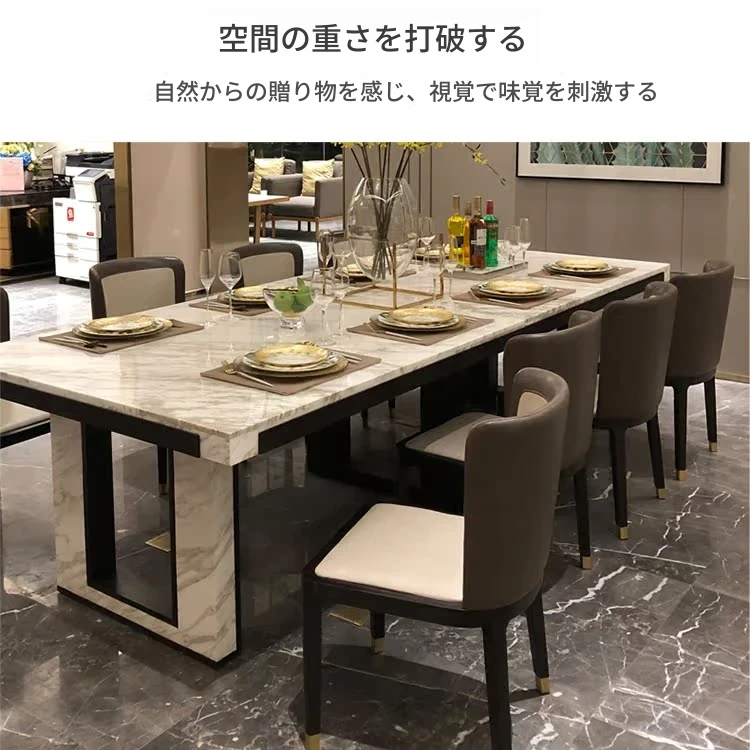 北欧スタイルの軽奢感あふれるダイニングテーブルセット|現代的な長方形大理石テーブル&快適な椅子|8人用の広々としたリビング空間にぴったり!