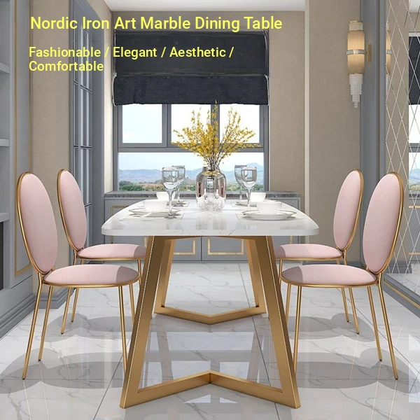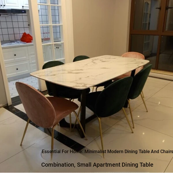 Nordic Style Rectangular Marble Dining Table for Small Spaces - Modern Minimalist 4-6 Person Table and Chair Set for Home Use