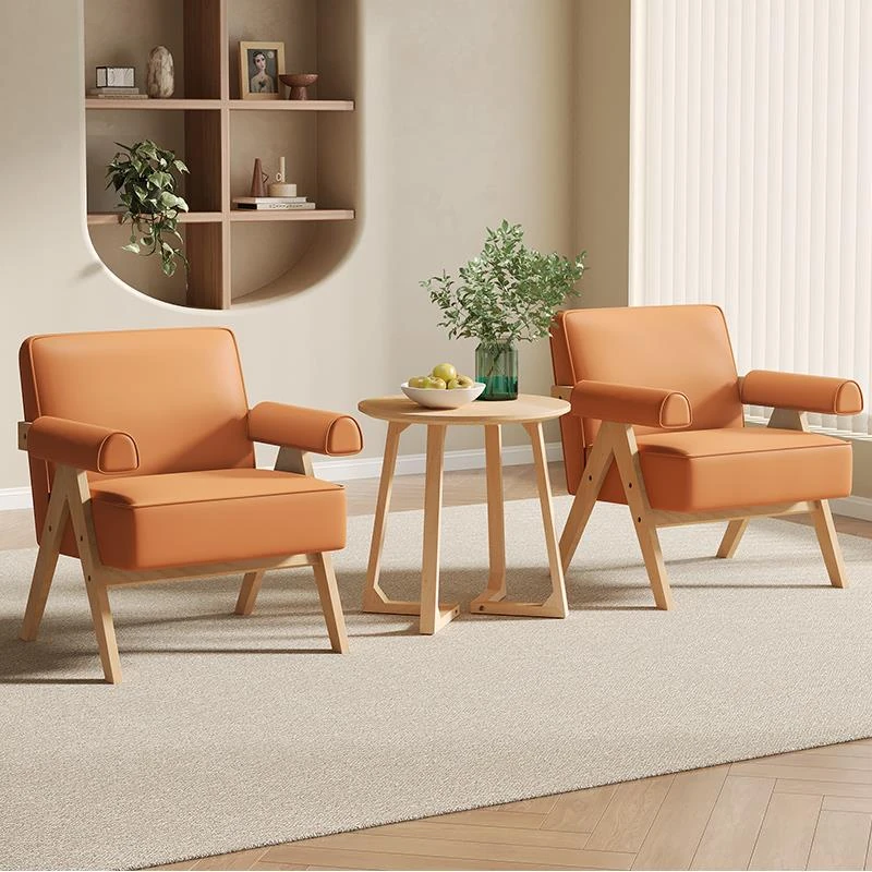 北欧風デザインの一人掛けソファ「北帝琦」!リラックスできる贅沢な座り心地、天然木製のスタイリッシュな小型二人掛けもご用意。カフェやリビングにぴったりのコンパクトな組み合わせで、くつろぎの空間を演出します!