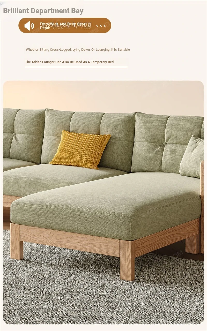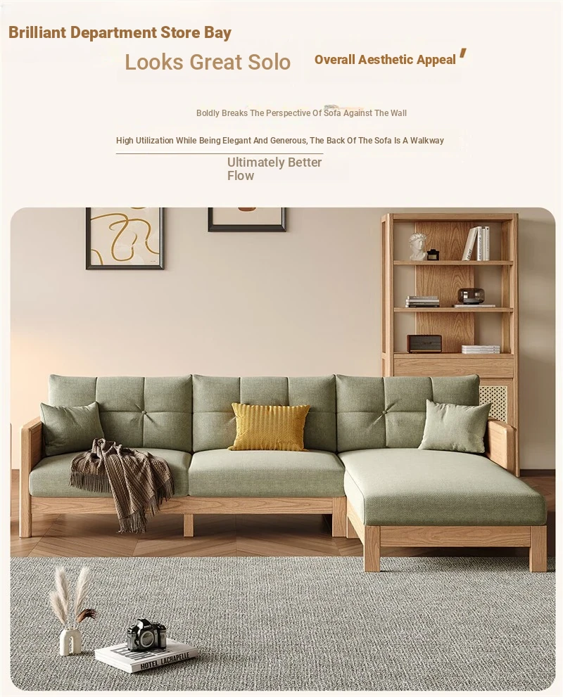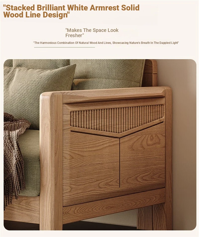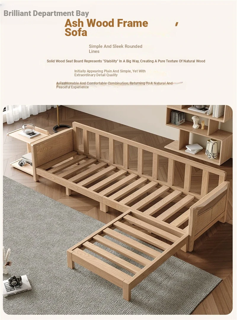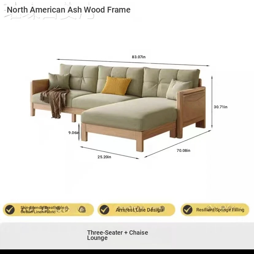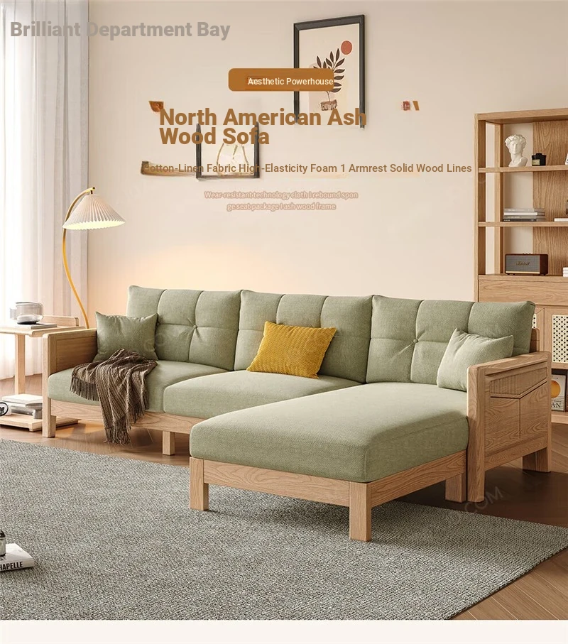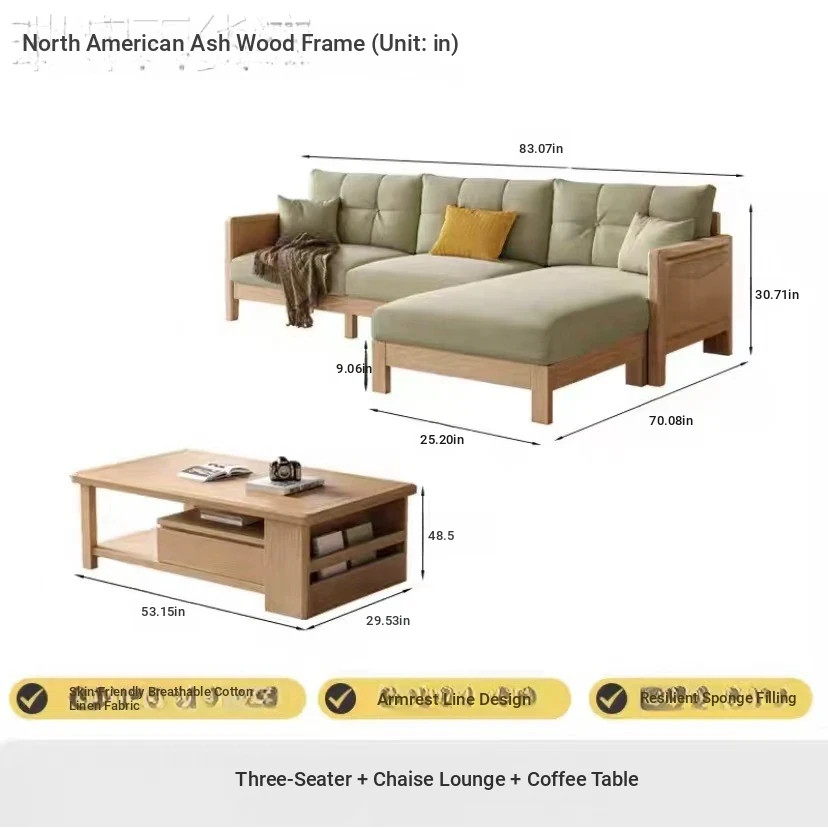 Nordic Style White Ash Wood Sofa Set - Minimalist Corner Chaise Lounge for Modern Living Room, Elegant and Stylish Design