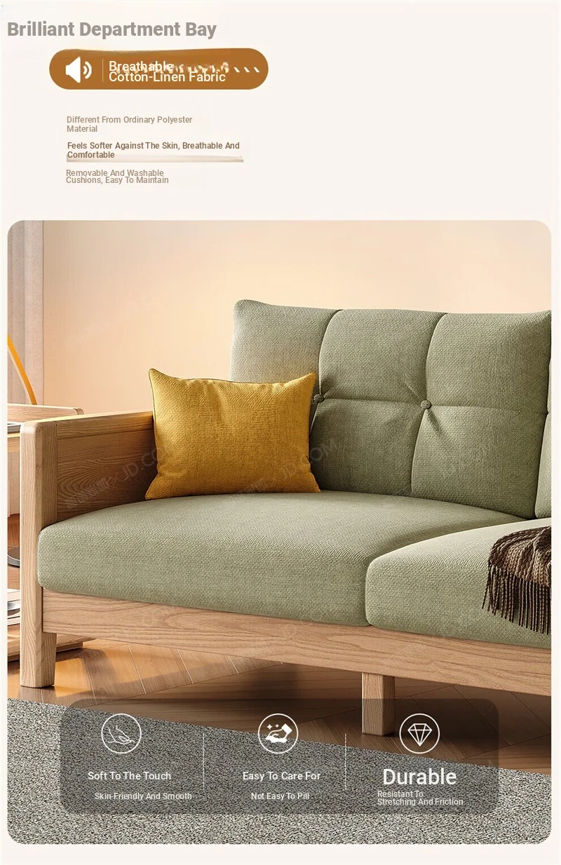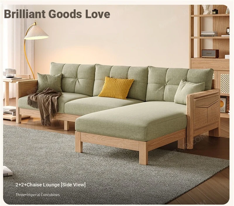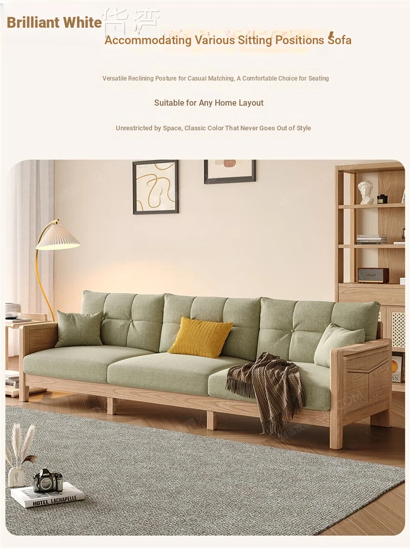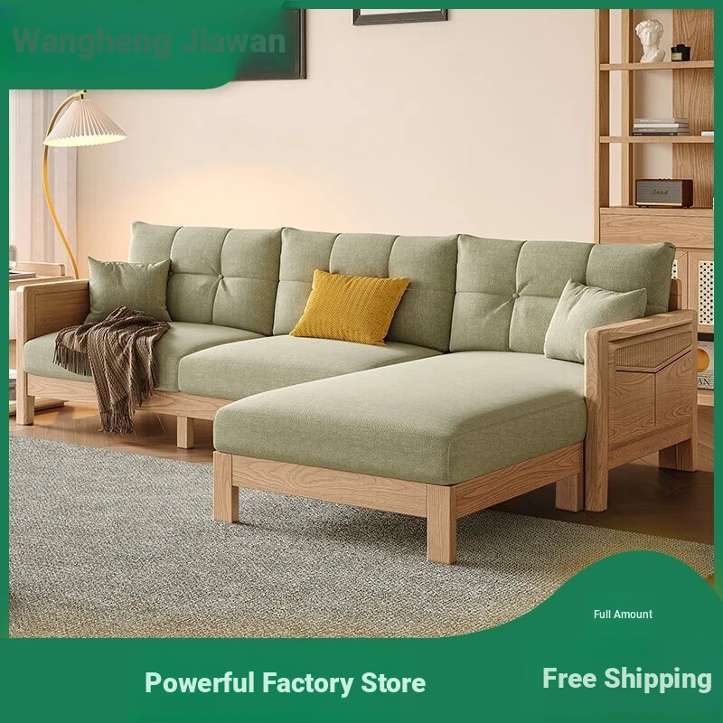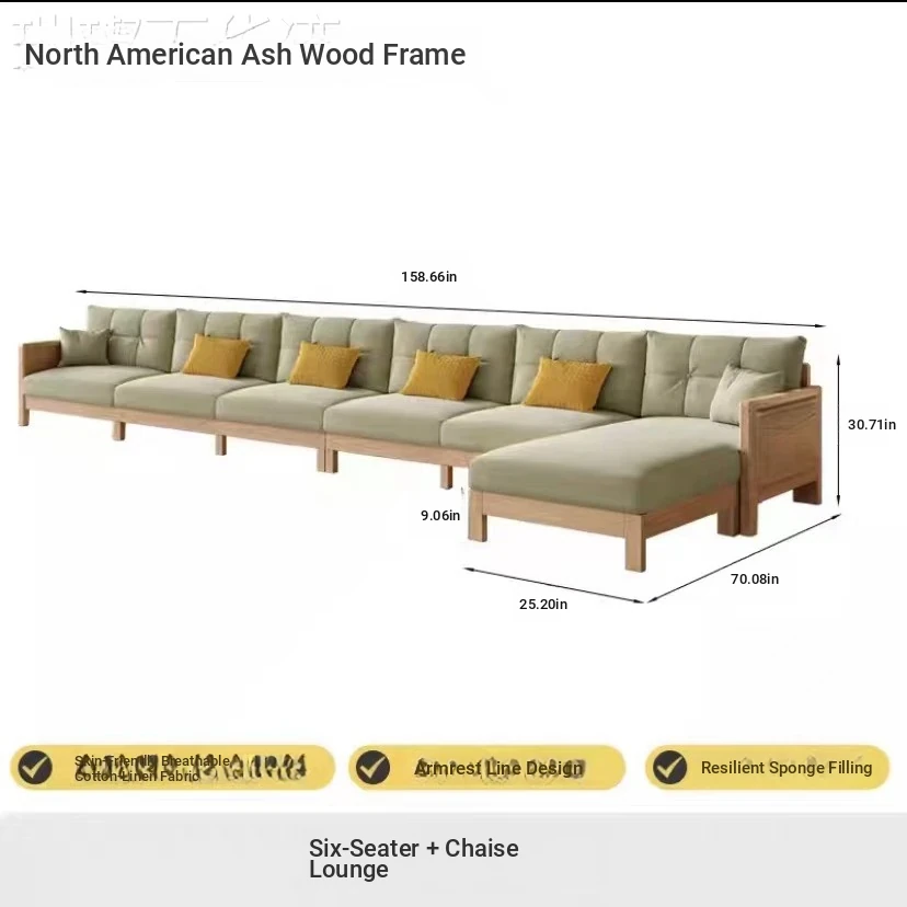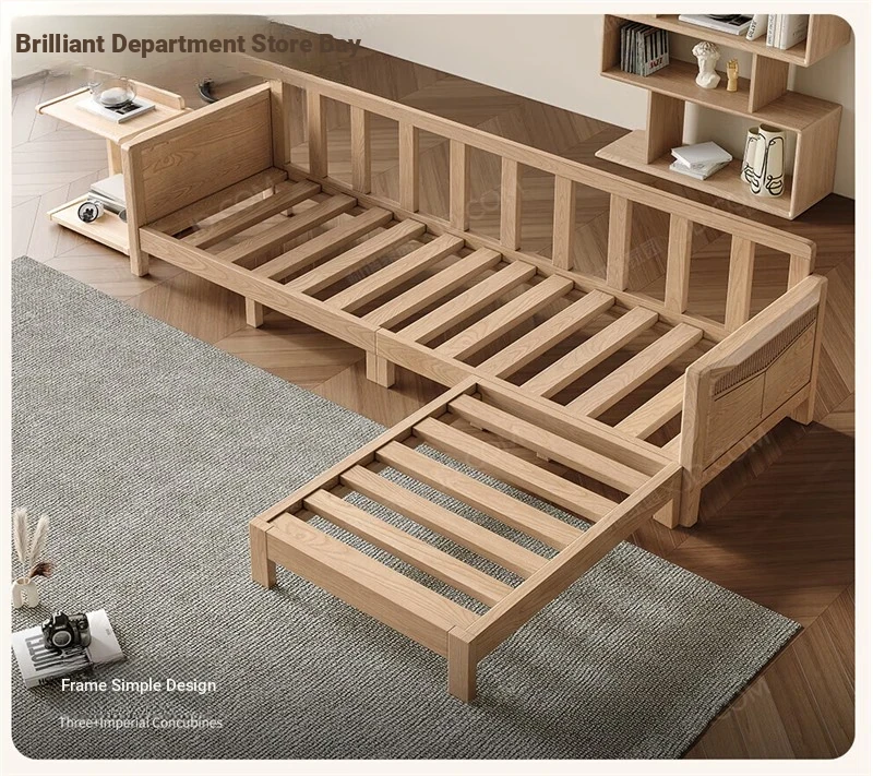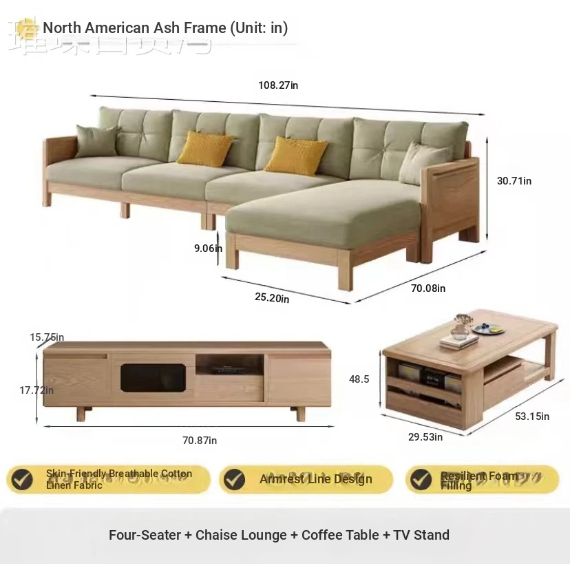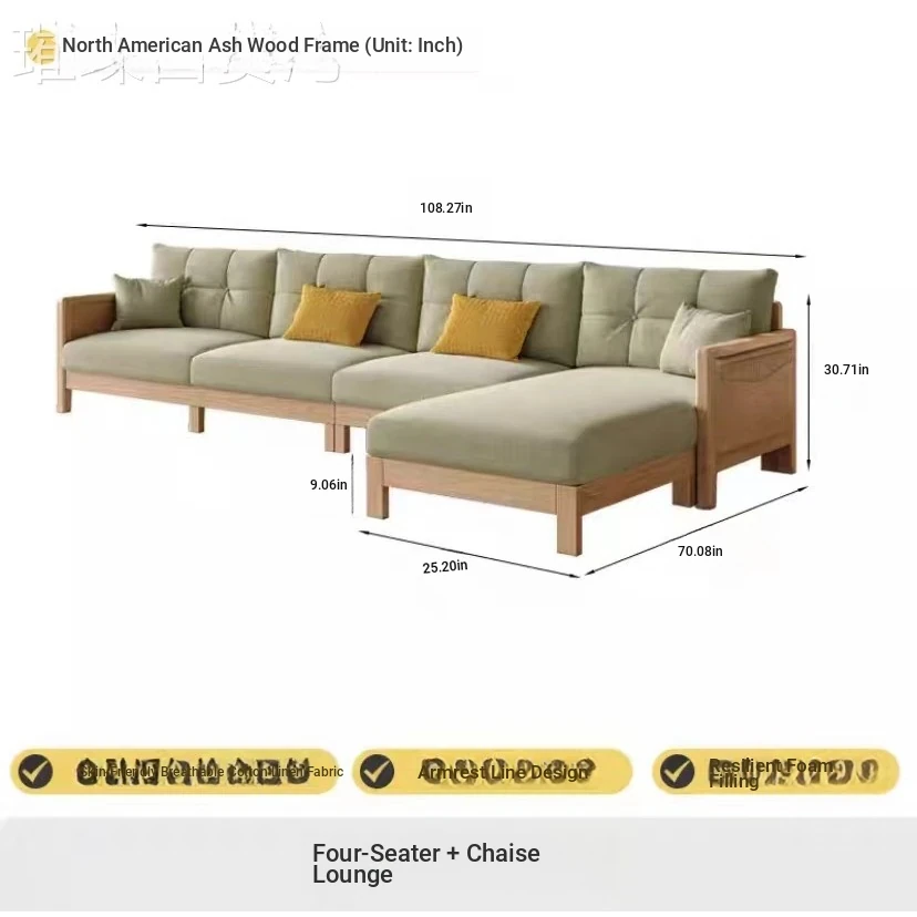 Nordic Style White Ash Wood Sofa Set - Minimalist Corner Chaise Lounge for Modern Living Room, Elegant and Stylish Design