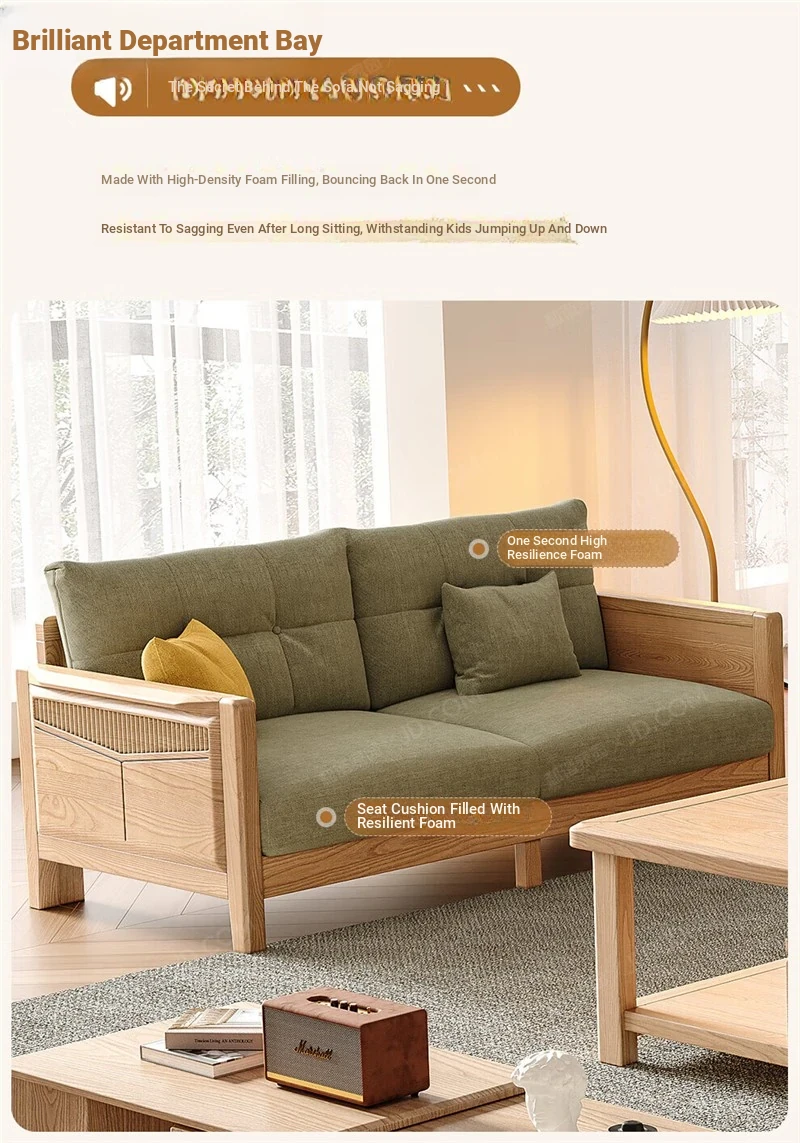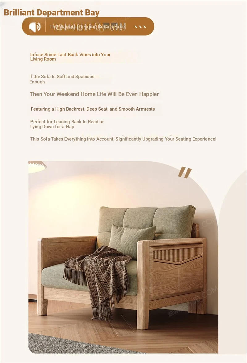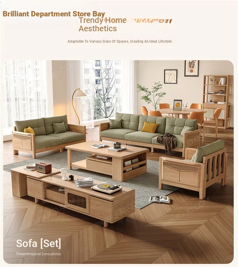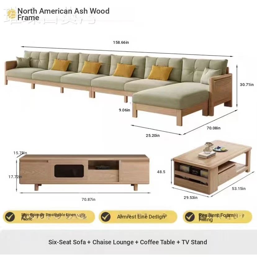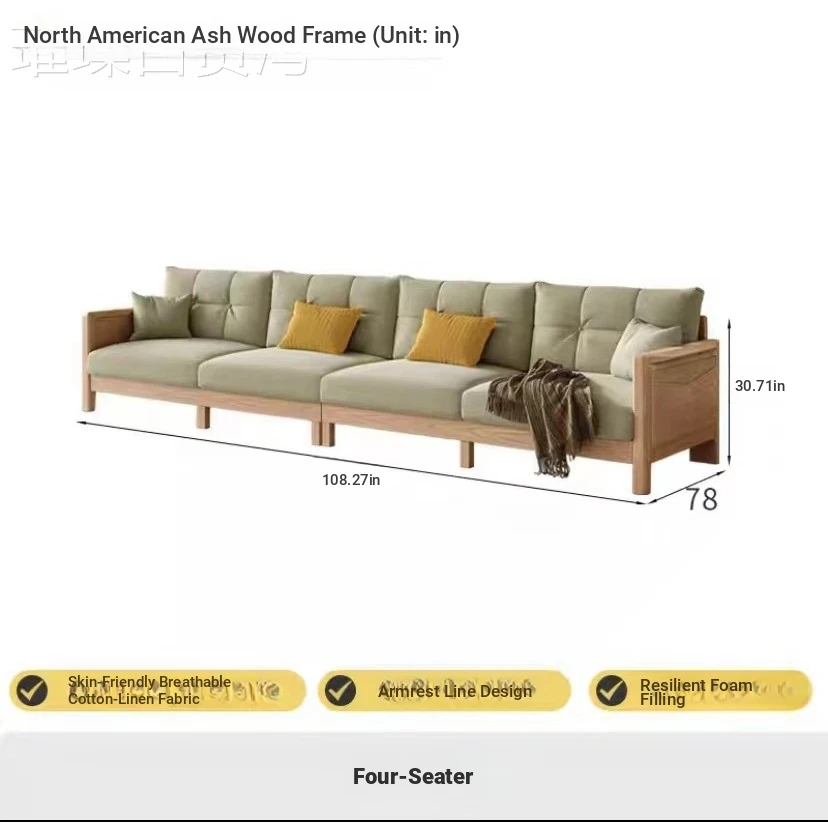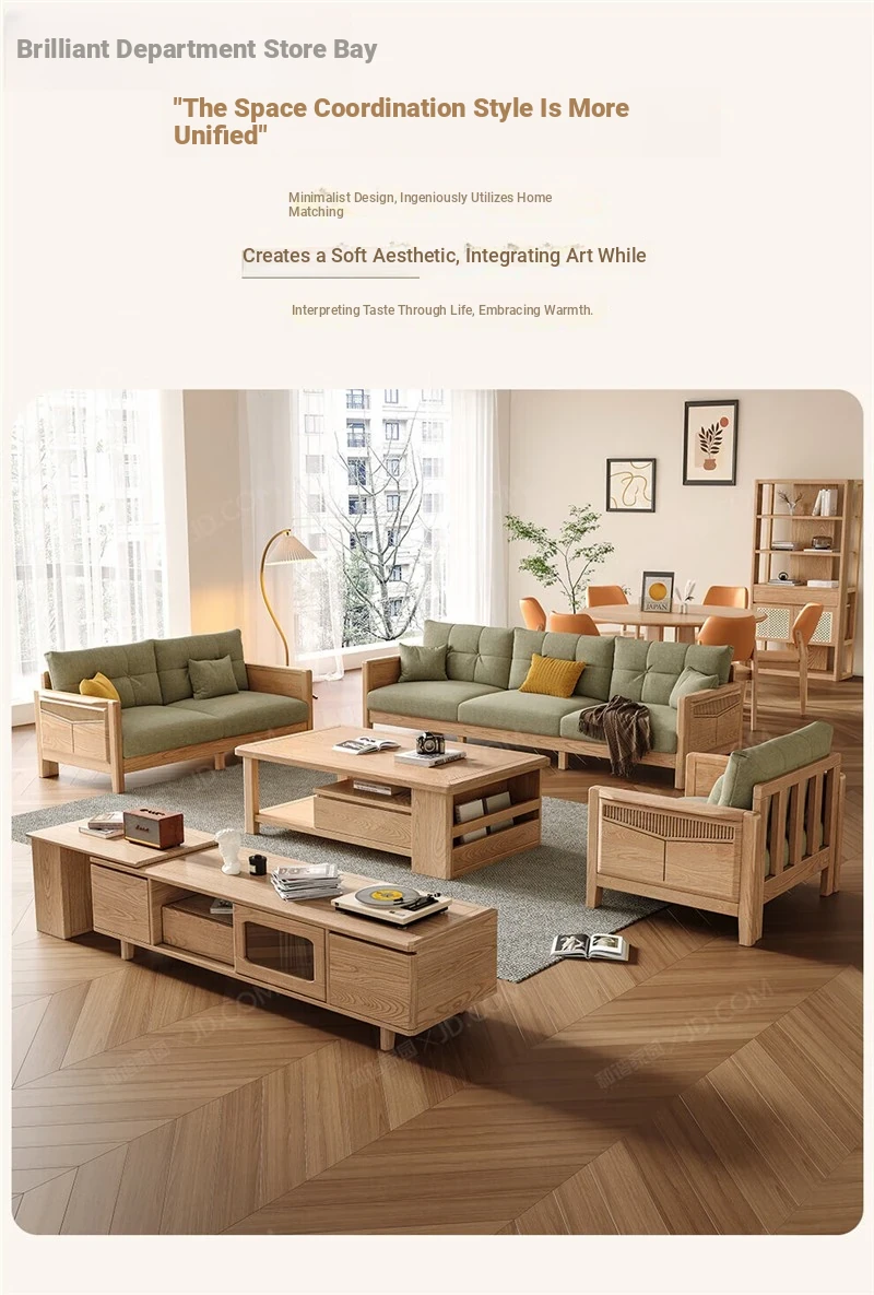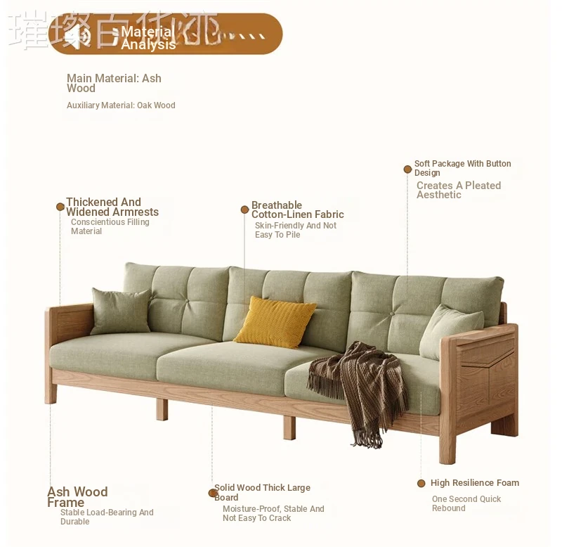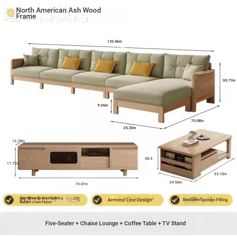 Nordic Style White Ash Wood Sofa Set - Minimalist Corner Chaise Lounge for Modern Living Room, Elegant and Stylish Design