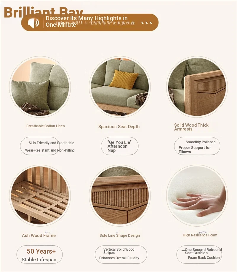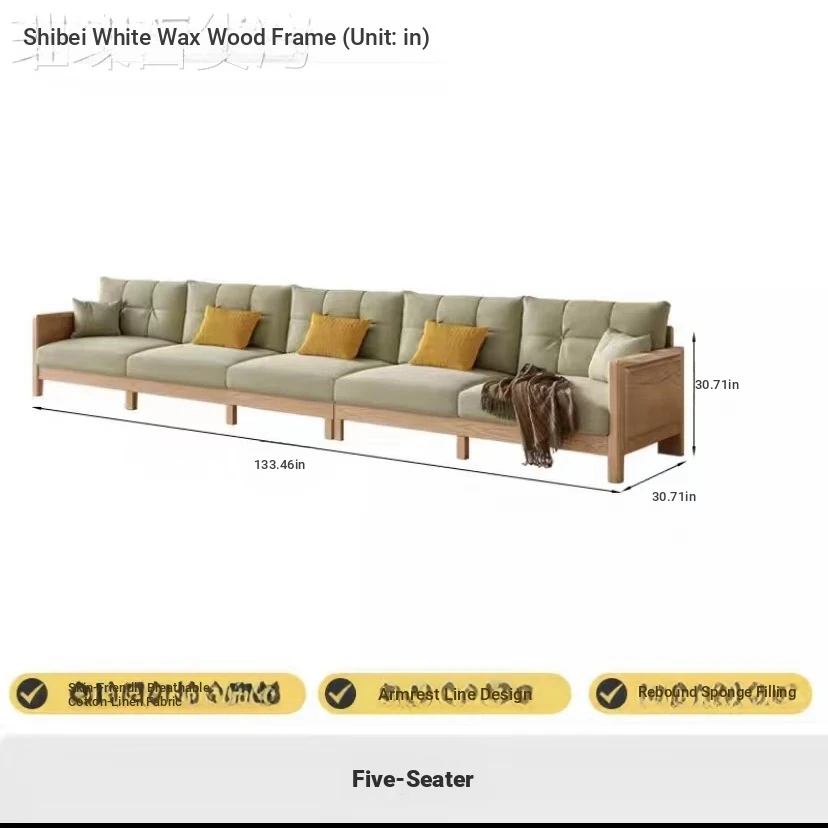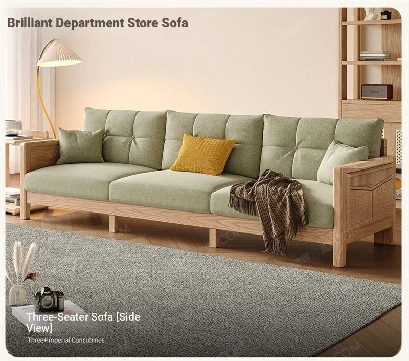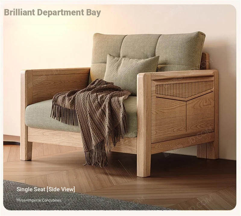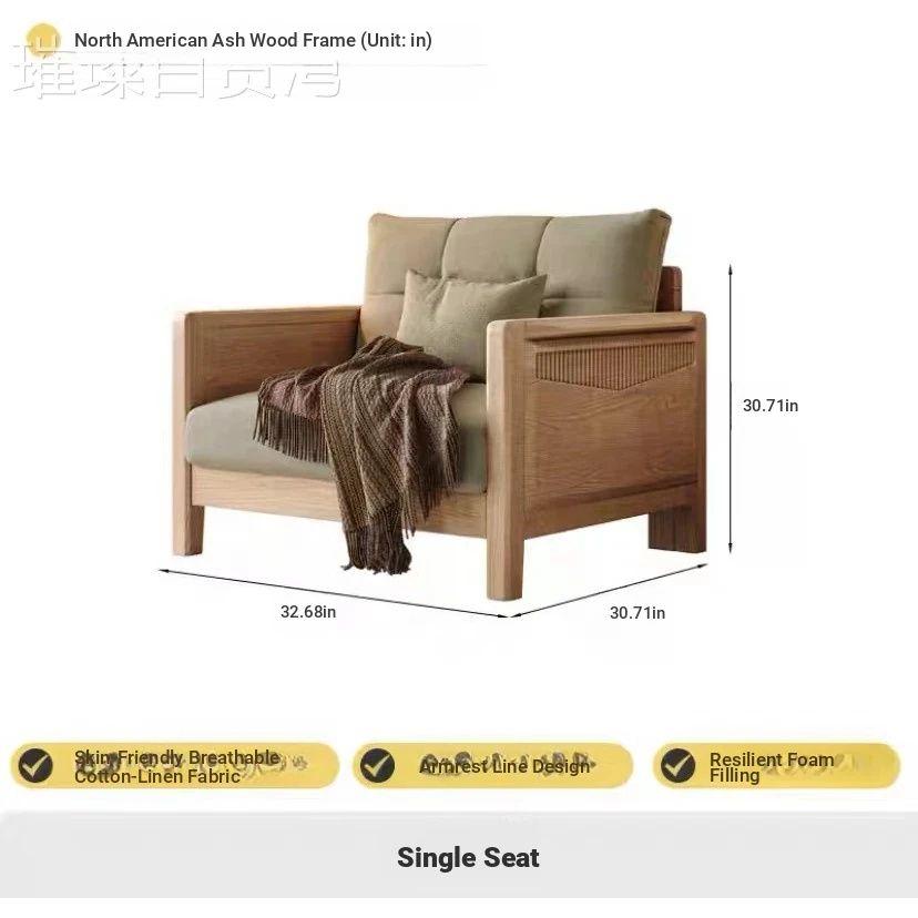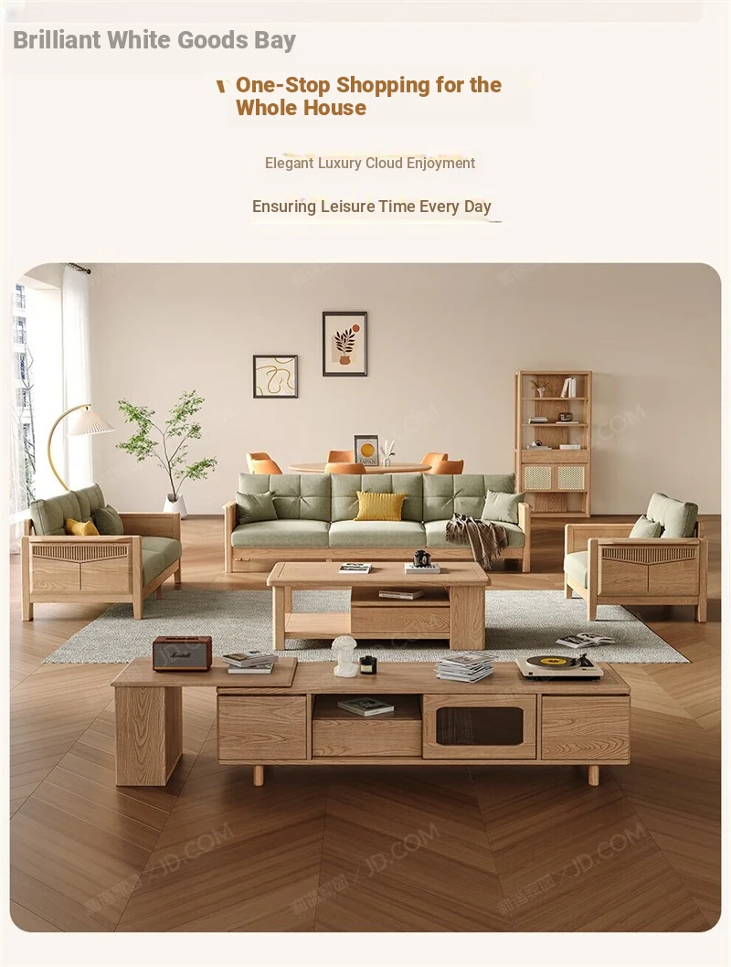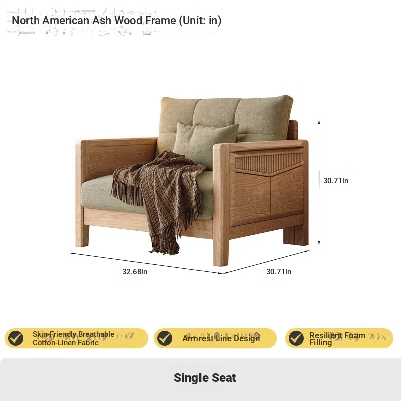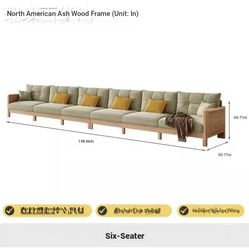 Nordic Style White Ash Wood Sofa Set - Minimalist Corner Chaise Lounge for Modern Living Room, Elegant and Stylish Design