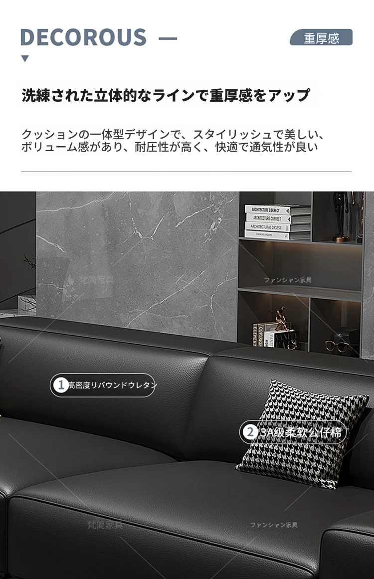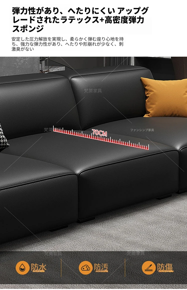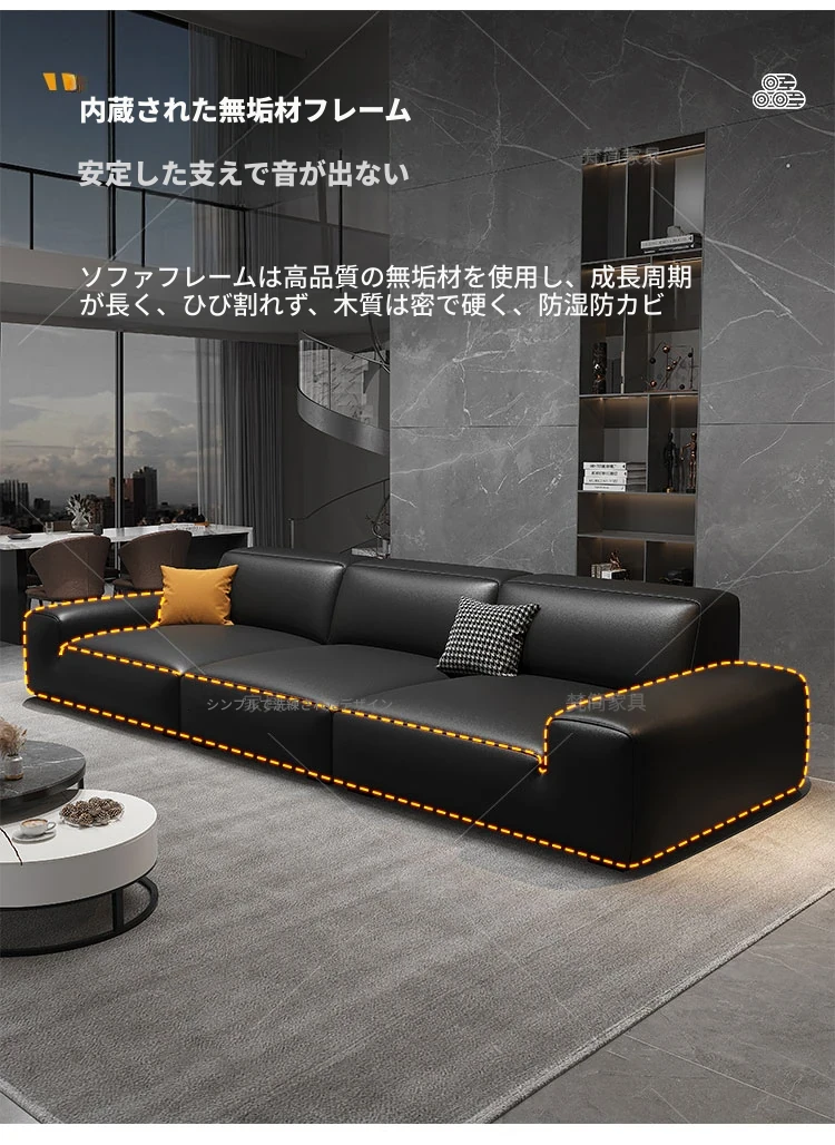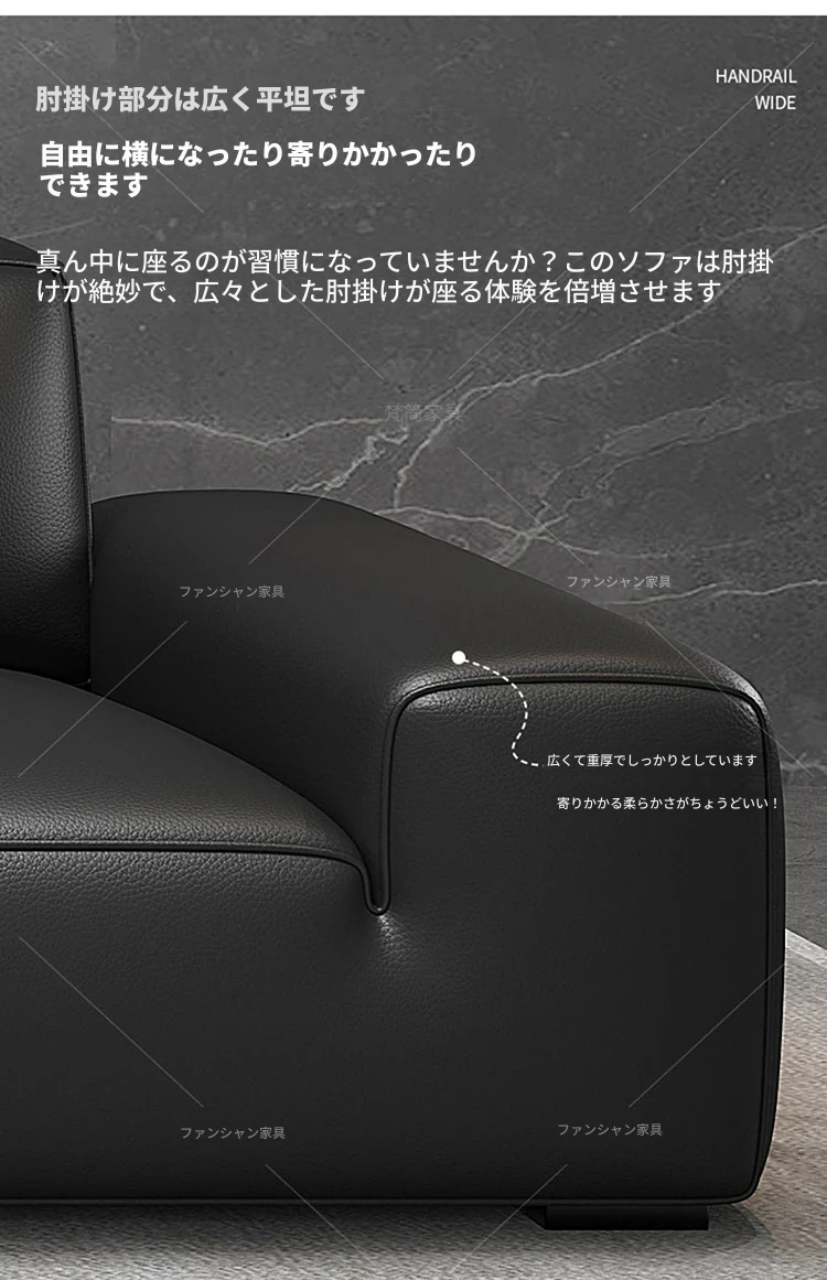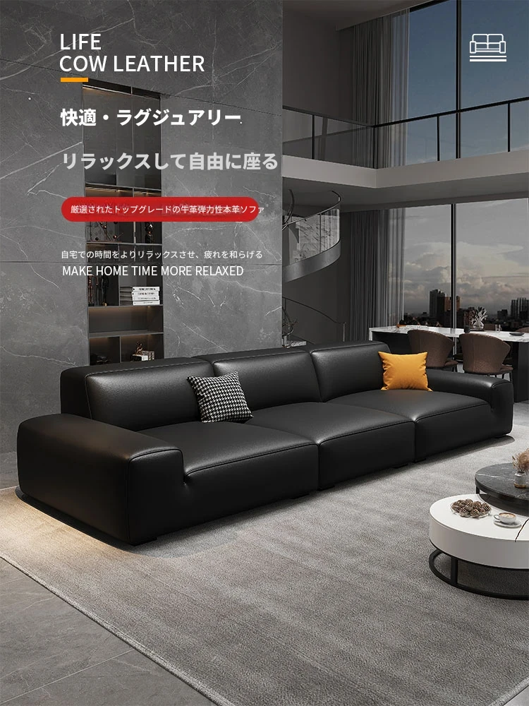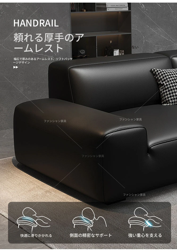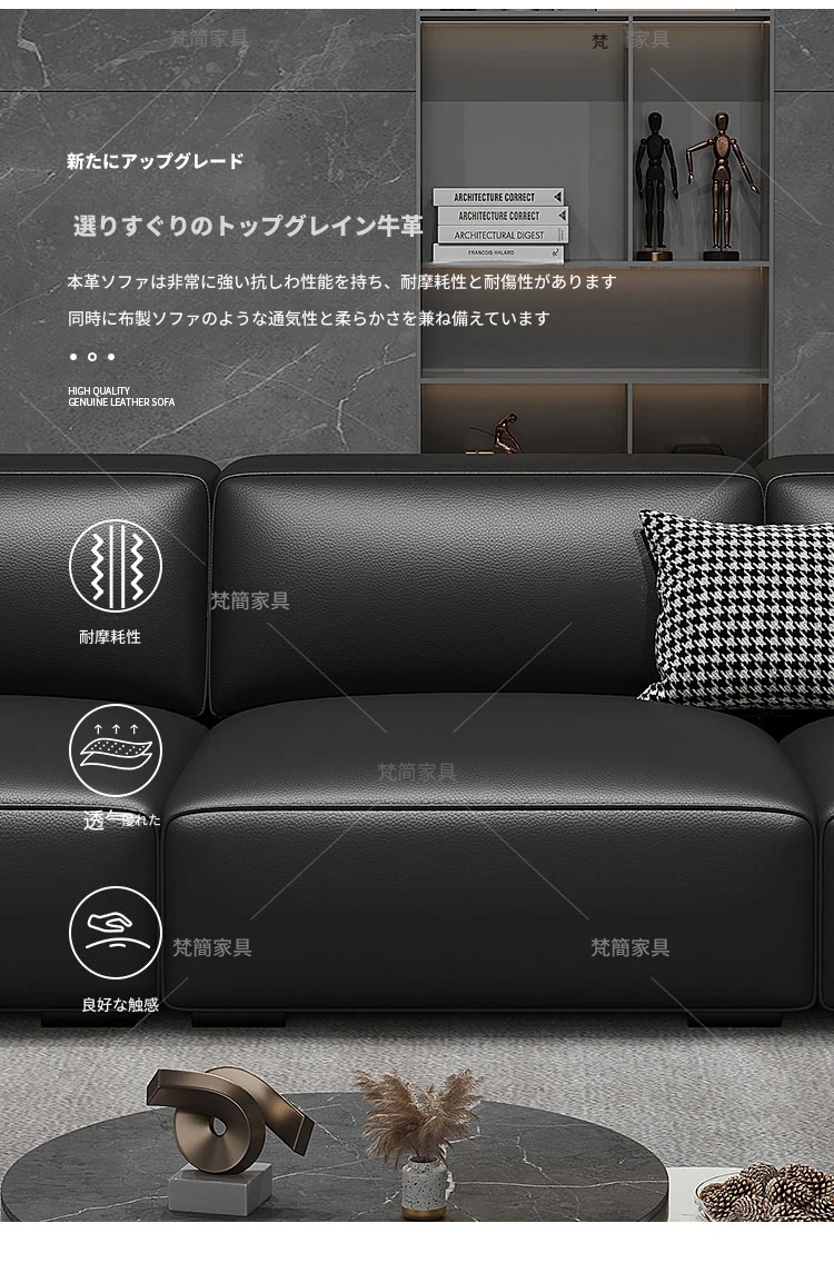 大黒牛本革ソファ - シンプルでスタイリッシュなデザイン、小型リビングに最適!豆腐ブロック型、ブラックキャット爪皮使用。高品質な本革で、快適な座り心地を実現。おしゃれな空間を演出します!