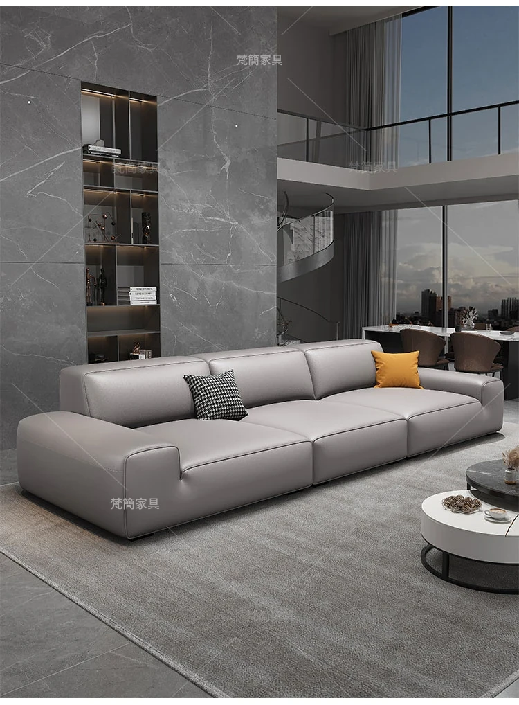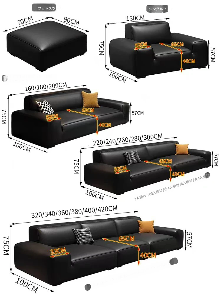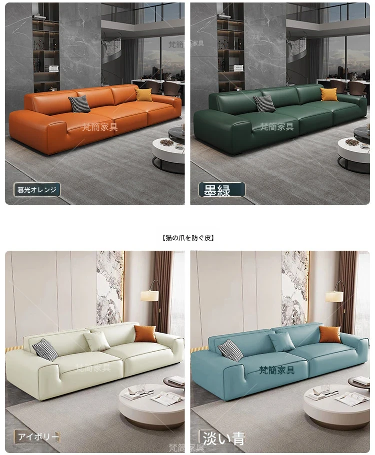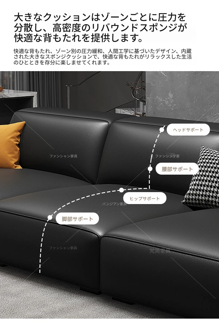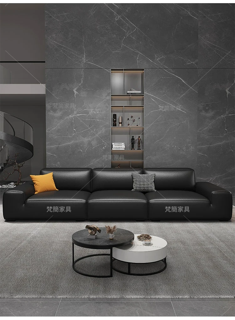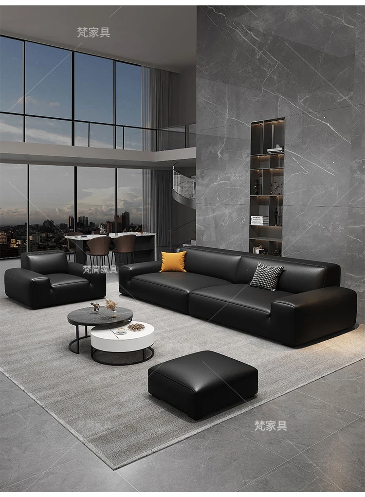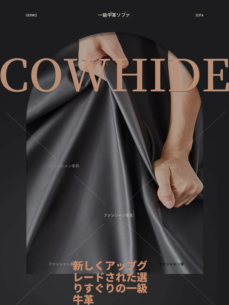 大黒牛本革ソファ - シンプルでスタイリッシュなデザイン、小型リビングに最適!豆腐ブロック型、ブラックキャット爪皮使用。高品質な本革で、快適な座り心地を実現。おしゃれな空間を演出します!