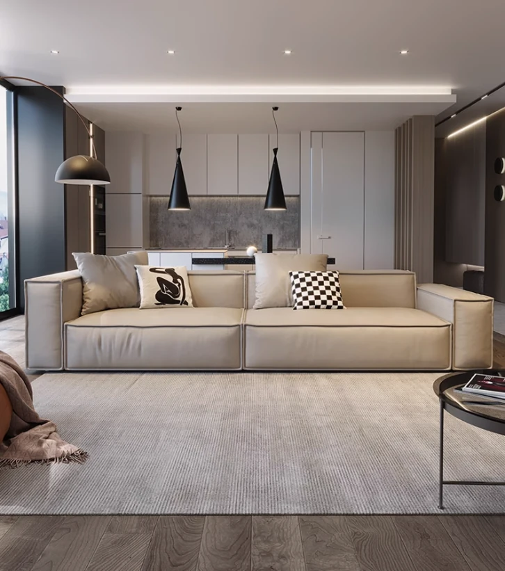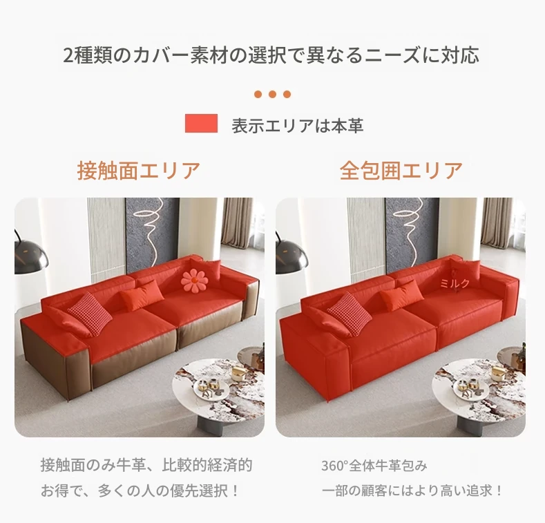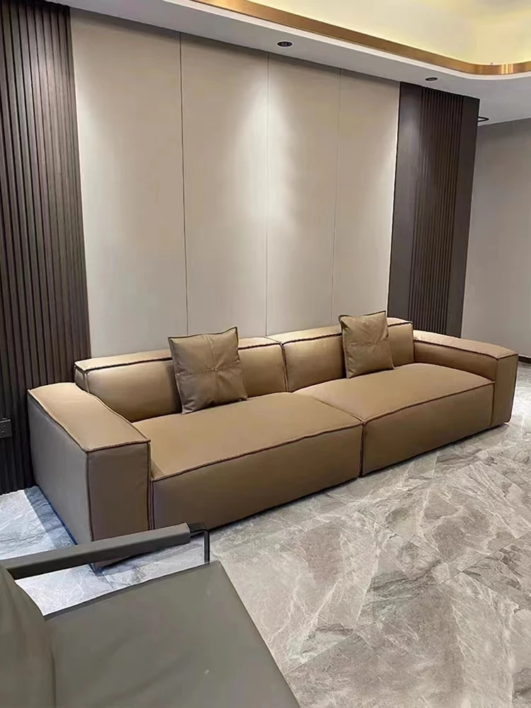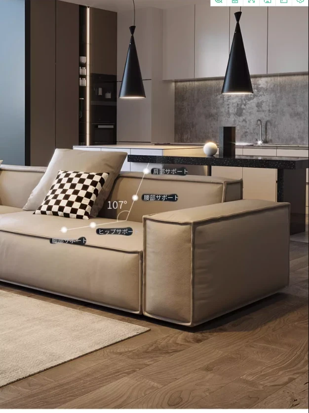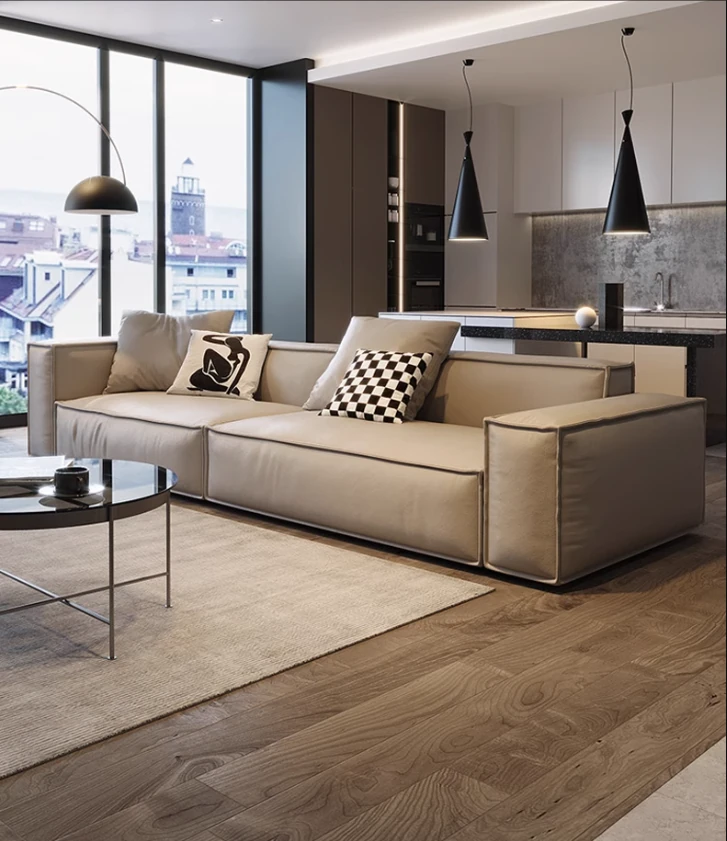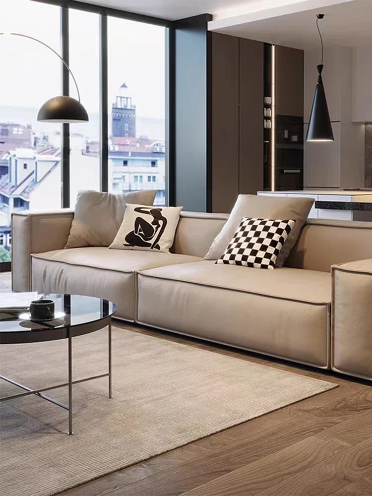 豆腐ブロック直排本革ソファ|イタリアンミニマリズム|小型リビングに最適な高級牛革製|シンプルで洗練された現代的デザイン