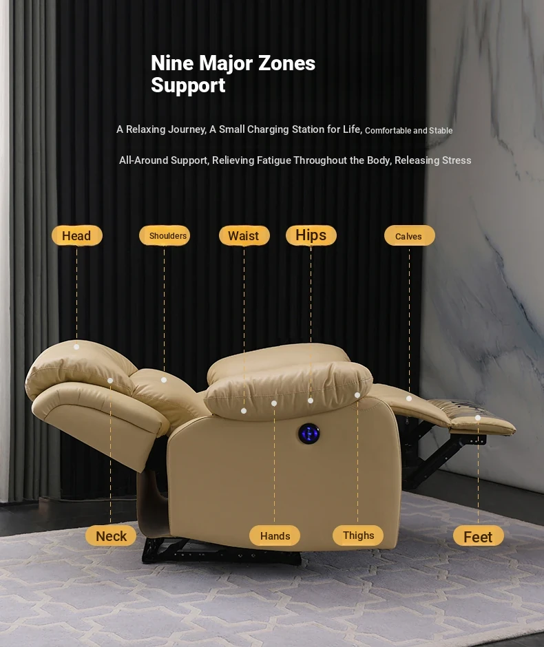 Premium Space Multifunctional Sofa for Home Theater - Electric Recliner with Tech Fabric and Genuine Leather, Perfect for Nail and Eyelash Treatments. Experience Comfort and Style in Your Entertainment Room!