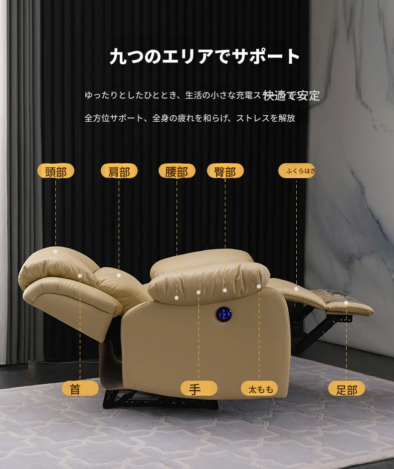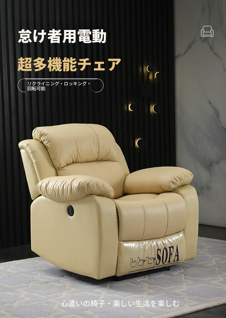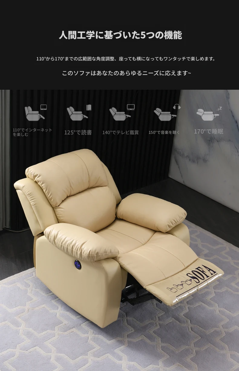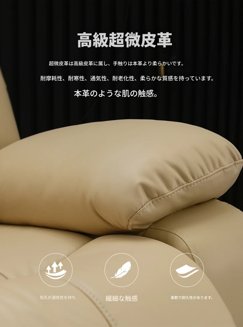 究極の宇宙多機能ソファ!シネマルームにぴったりのテクノロジー布と本革製の電動リクライニングチェア。美甲や美睫にも最適な快適なひとときを!