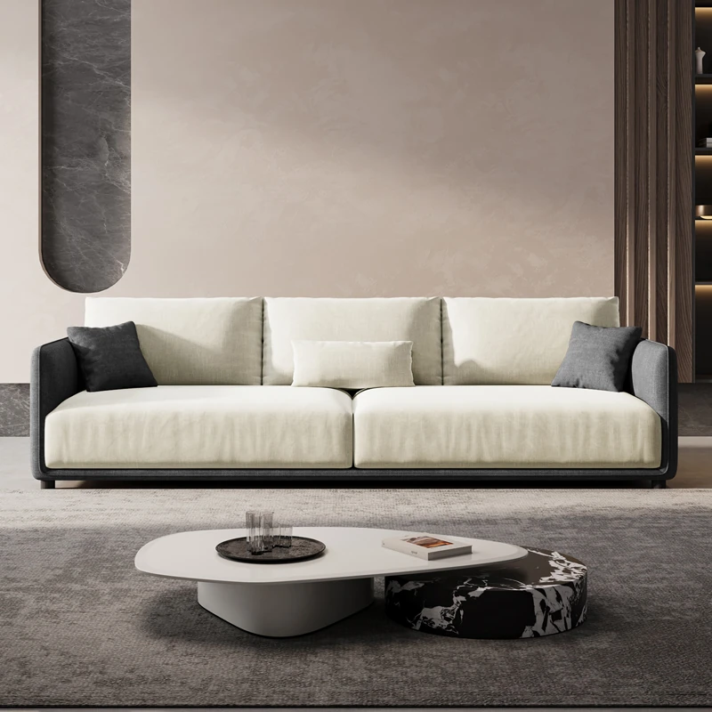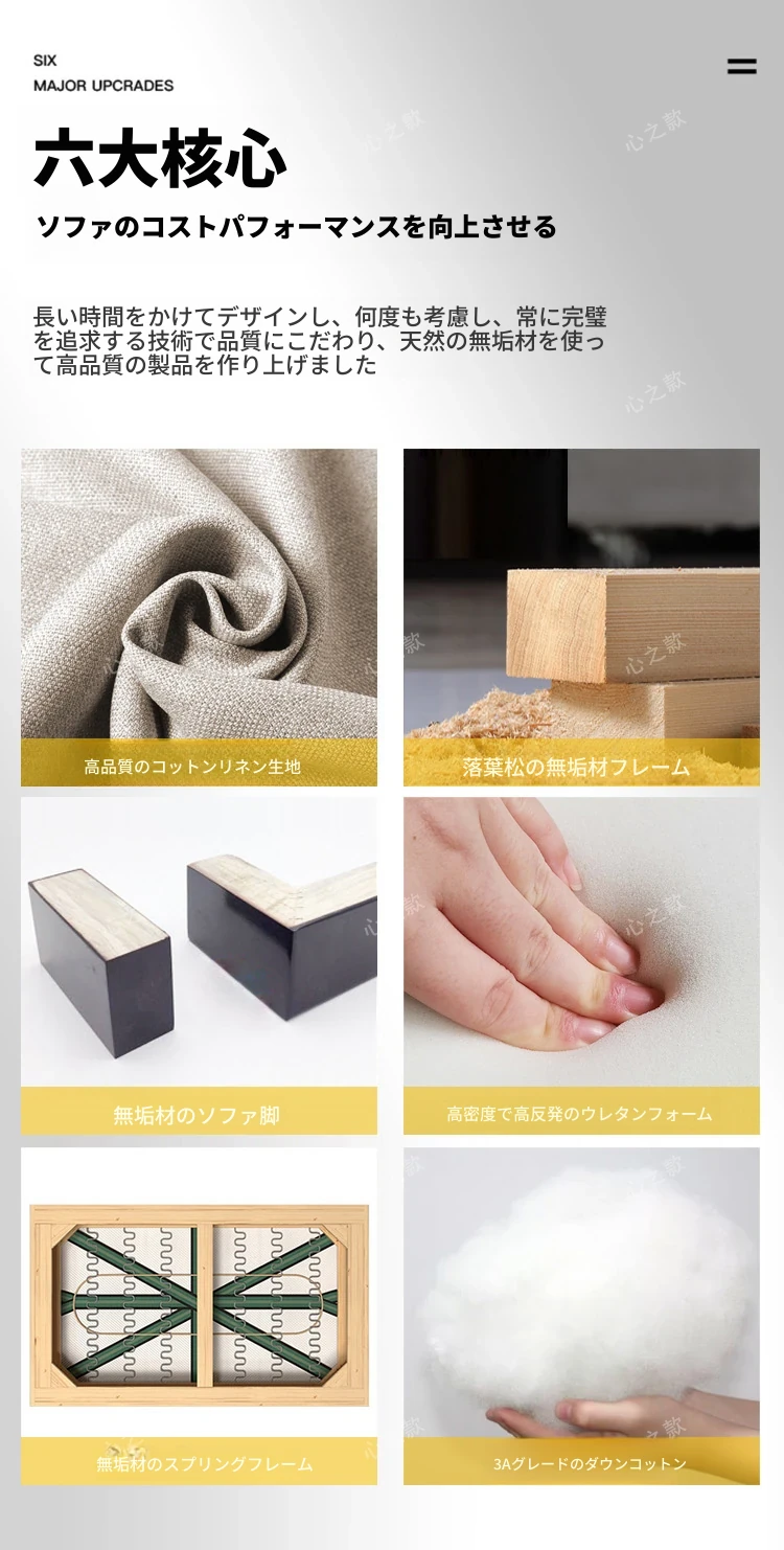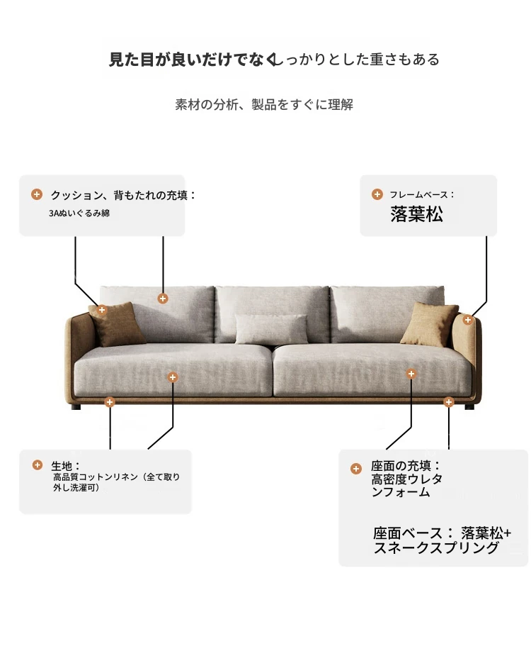 洗えるコットンリネンソファ!3人掛け&1人掛けのコンパクトデザイン、狭いリビングにぴったり。4人用のデイベッドとしても使えるL字型組み合わせ。おしゃれで機能的な空間を演出します!