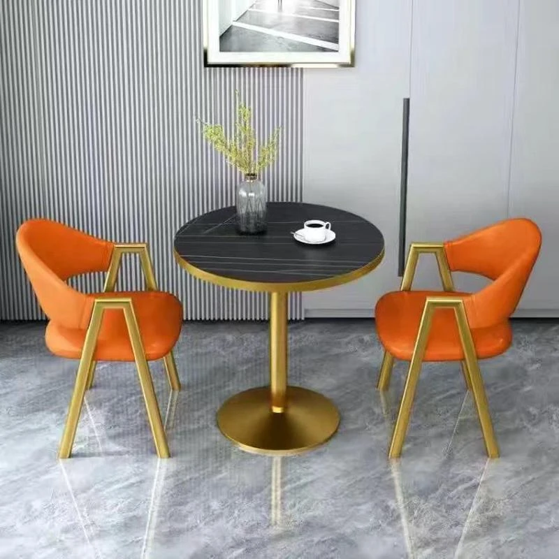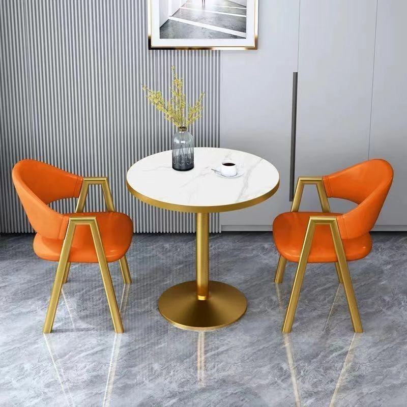 金仿白理石+オレンジレザー椅子